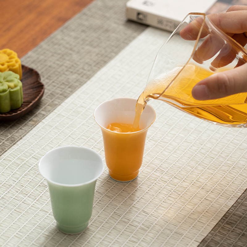 재고정리 특가 컬러 유약 찻잔 가정용 도자기 쿵푸 차 세트 소형 티컵 차그릇 개인용 컵