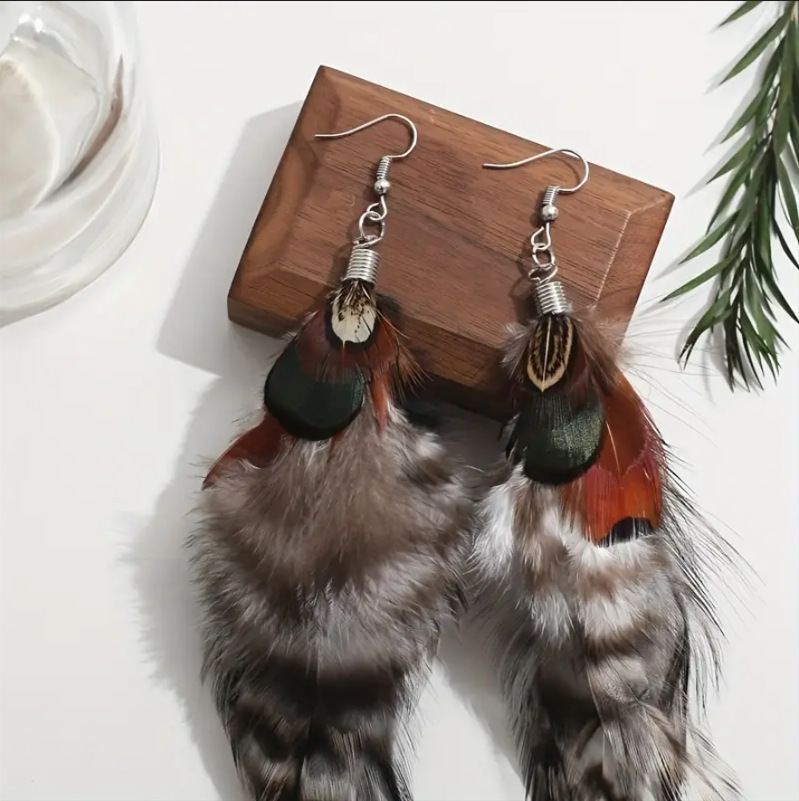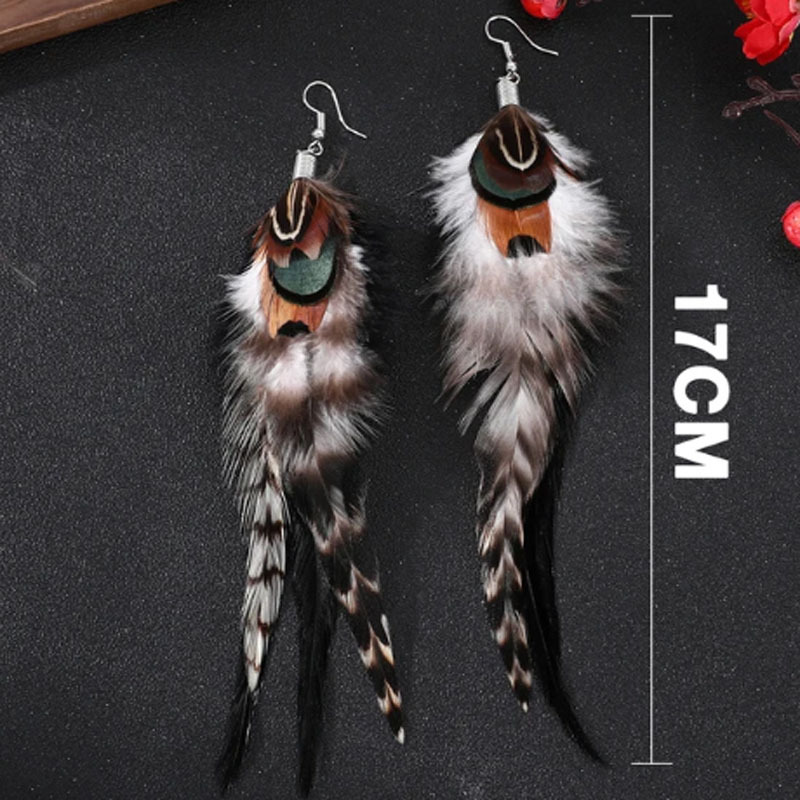 아마존 깃털 귀걸이 국경을 넘나 드는 유럽과 미국의 긴 깃털 귀걸이 보헤미안 빈티지 깃털 귀걸이 귀걸이