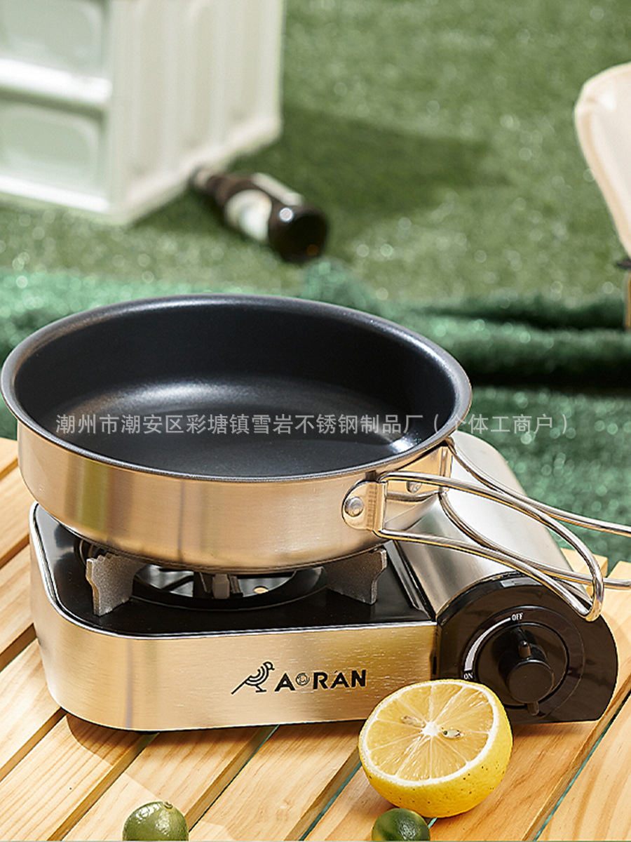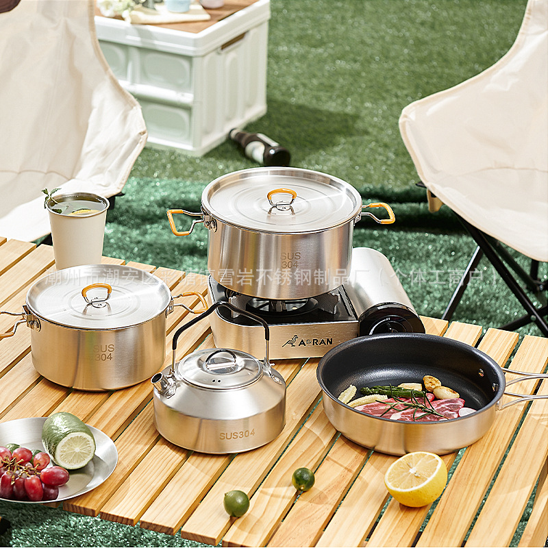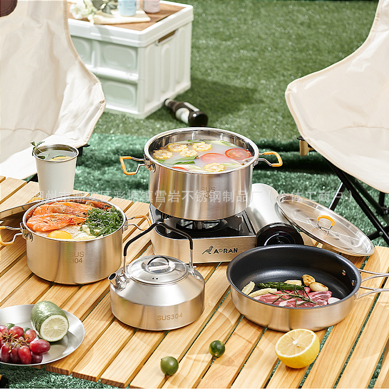 304 스테인레스 스틸 냄비 세트 야외 요리 휴대용 세트 나들이 캠핑 조리기구 접는 손잡이 피크닉 냄비 세트 도매