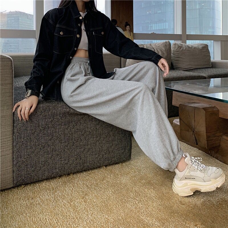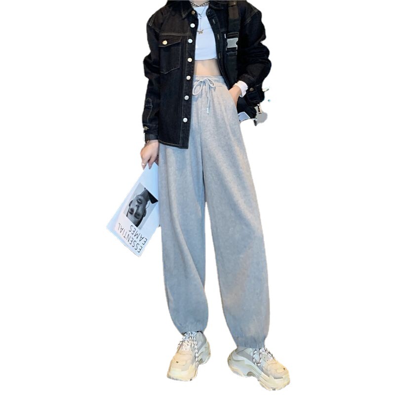 국경 간 발목 묶인 스포츠 바지 여성의 느슨한 봄과 여름 스트레이트, 캐주얼 그레이 스웨트 팬츠 하렘 팬츠 슬리밍 패션 팬츠