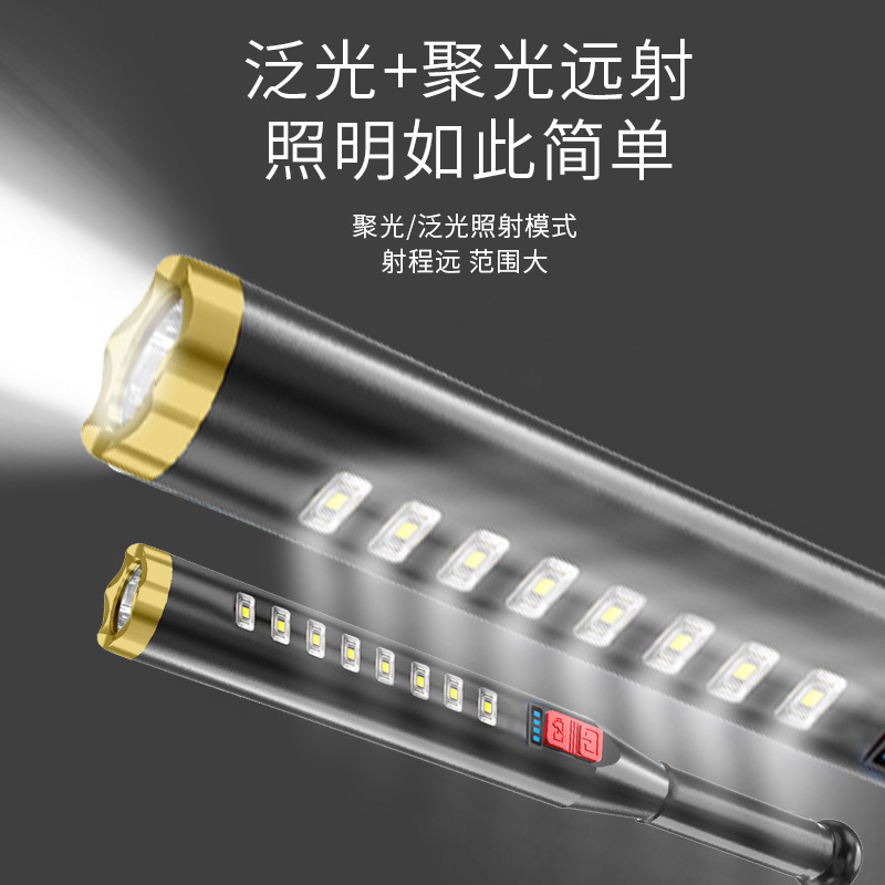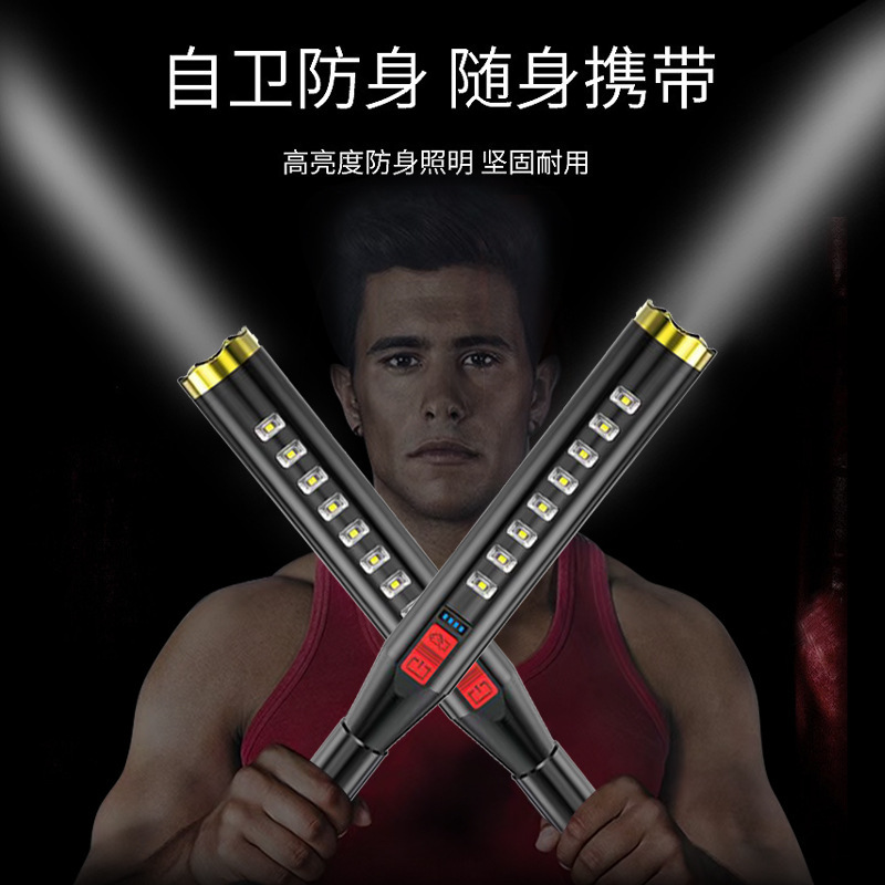 자기 방어 늑대 치아 스틱 강한 빛 손전등 국경 야외 USB 충전 보안 순찰 cob 야구 박쥐 손전등