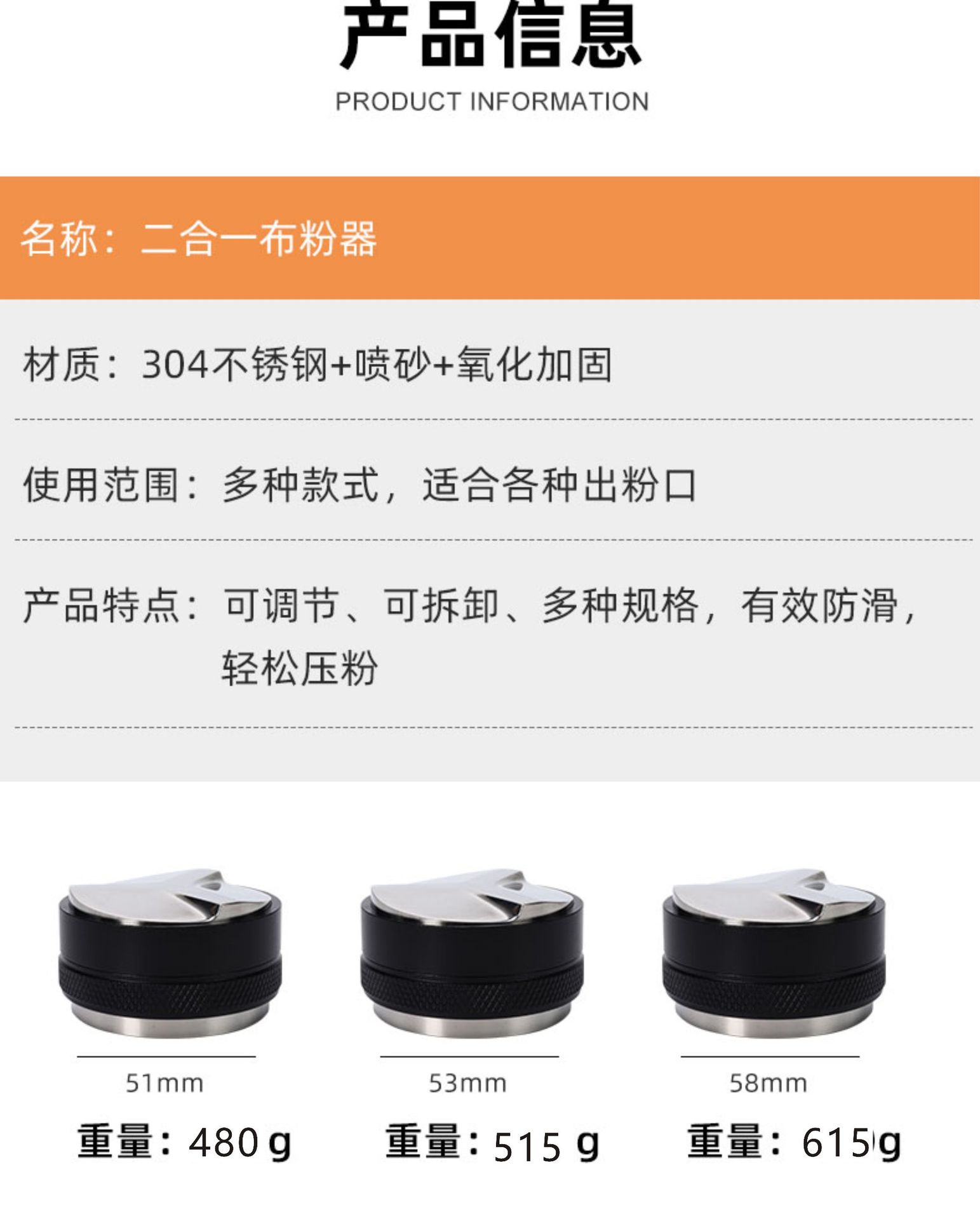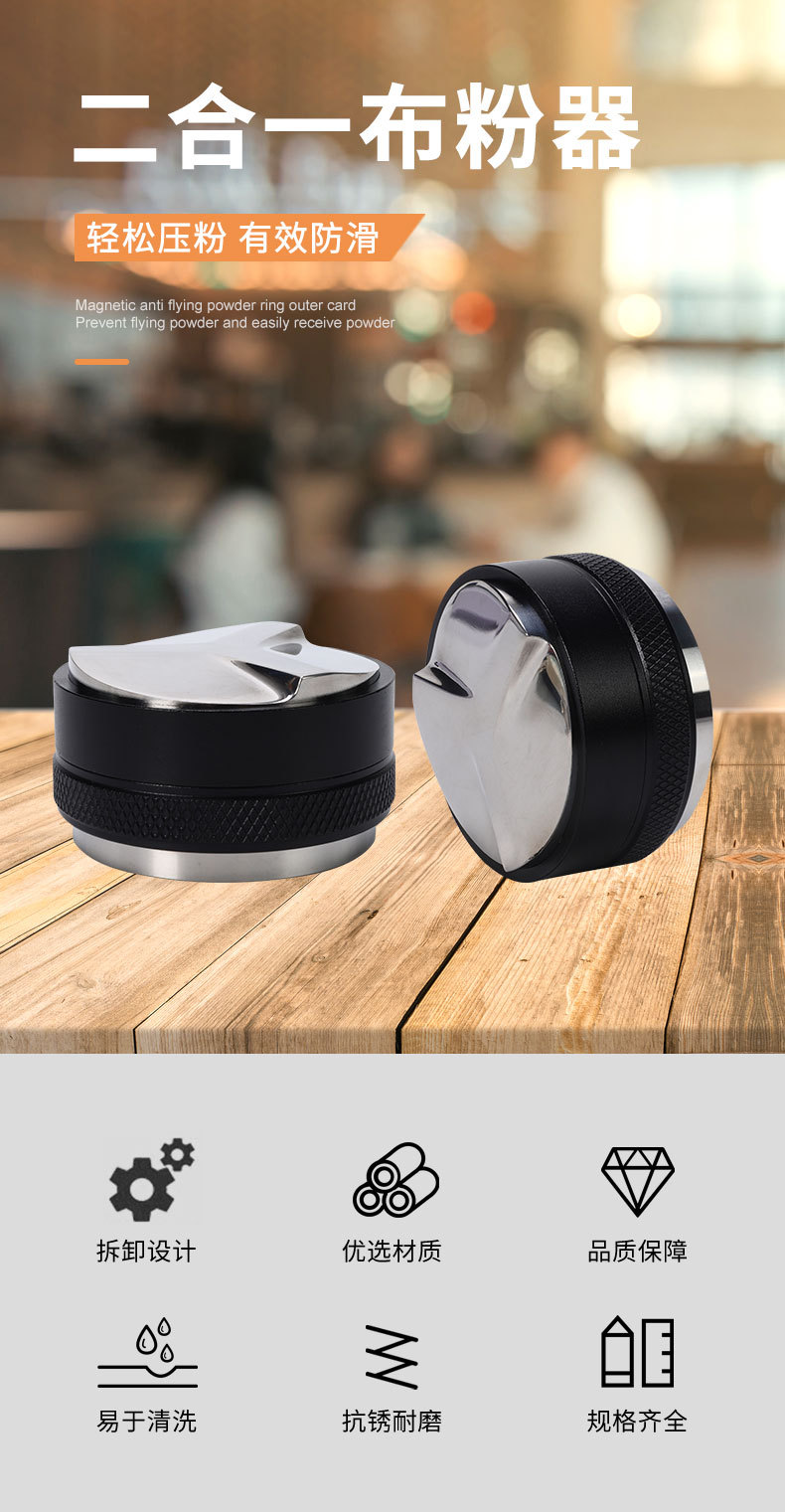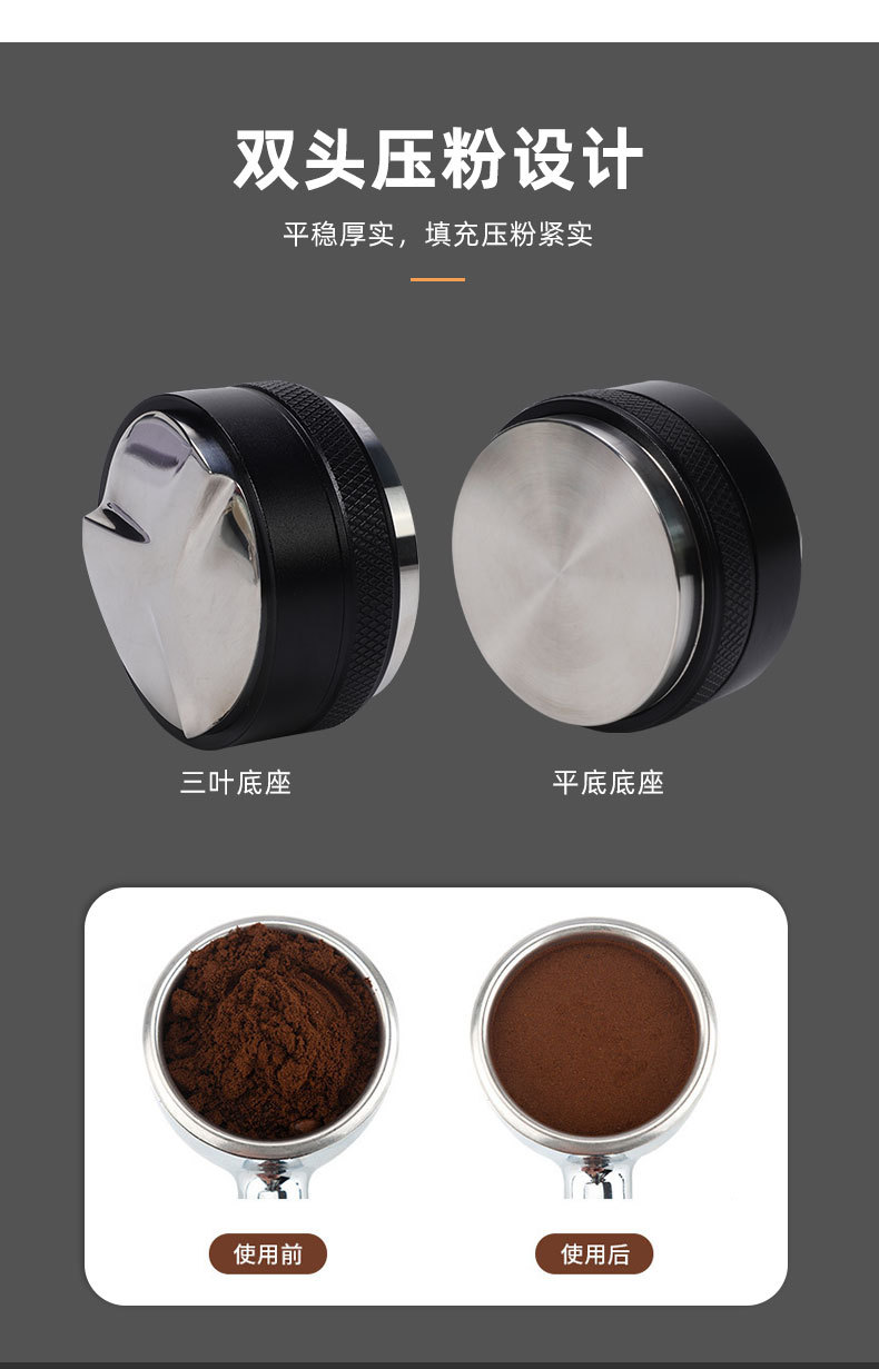 커피 머신 파우더 디스트리뷰터 2-in-1 파우더 프레스 더블 헤드 스테인레스 스틸 파우더 디스트리뷰터 이탈리아식 파우더 프레스 해머 5/5/58mm