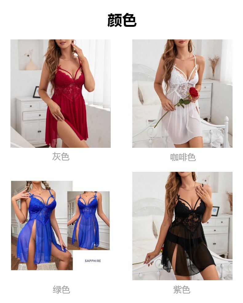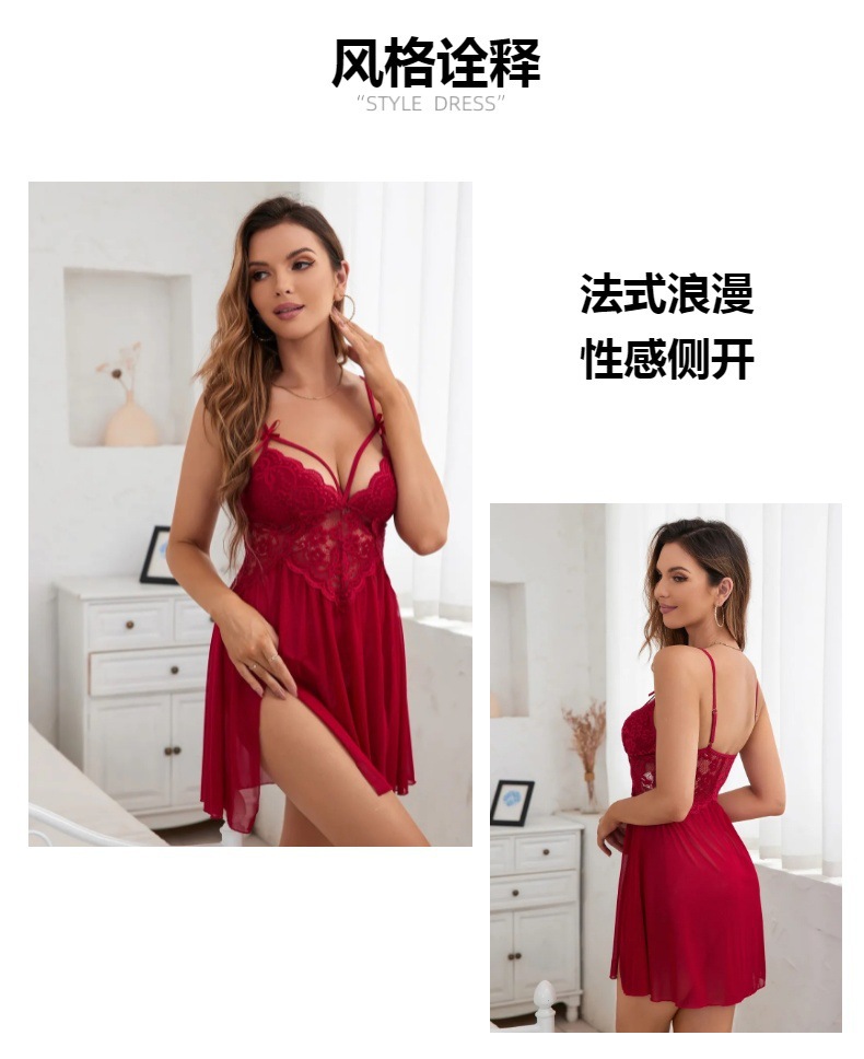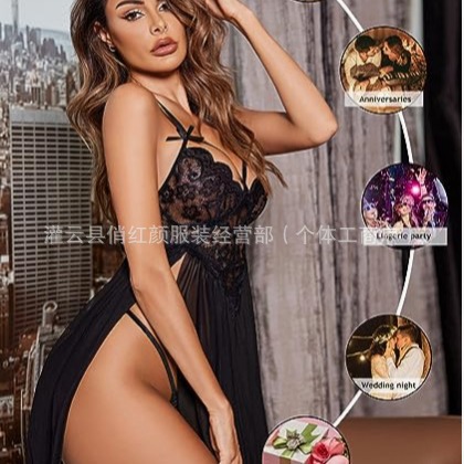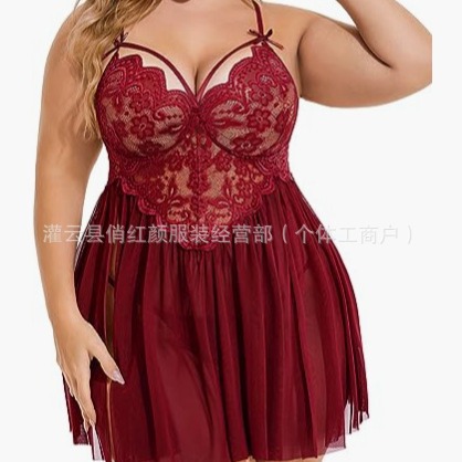 아마존 유럽과 미국의 섹시한 속옷 서스펜더 잠옷 대외 무역 레이스 대형 시스루 잠옷 크로스 보더