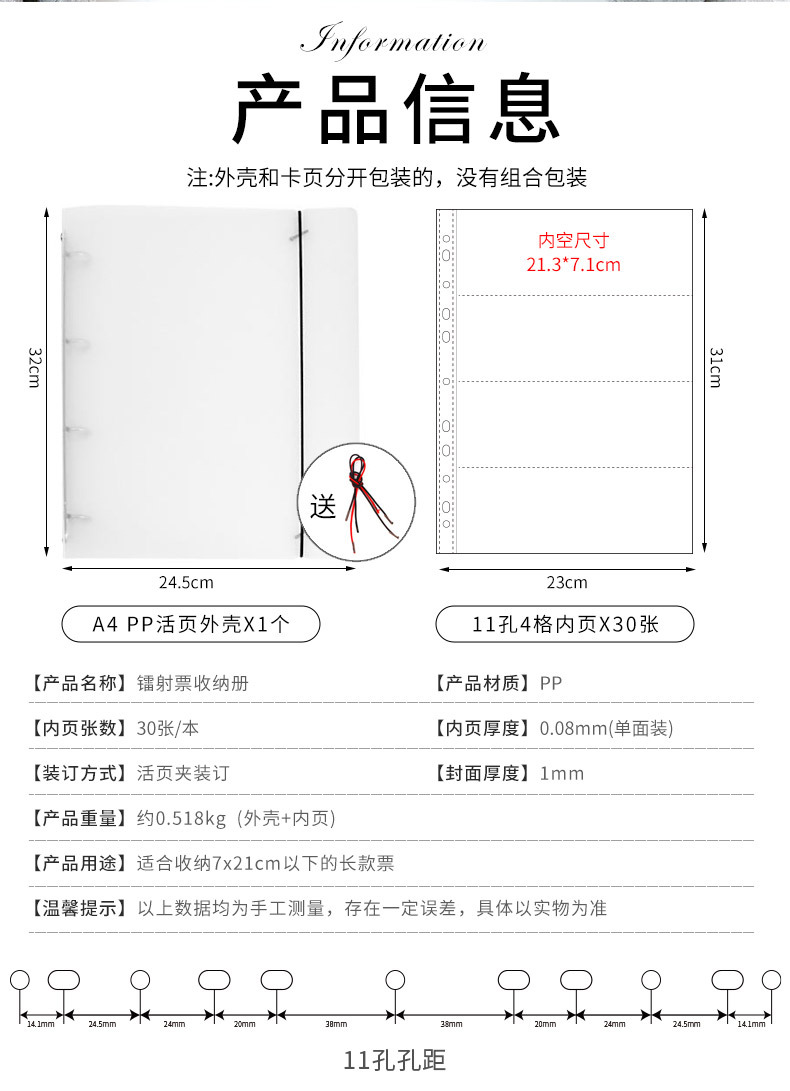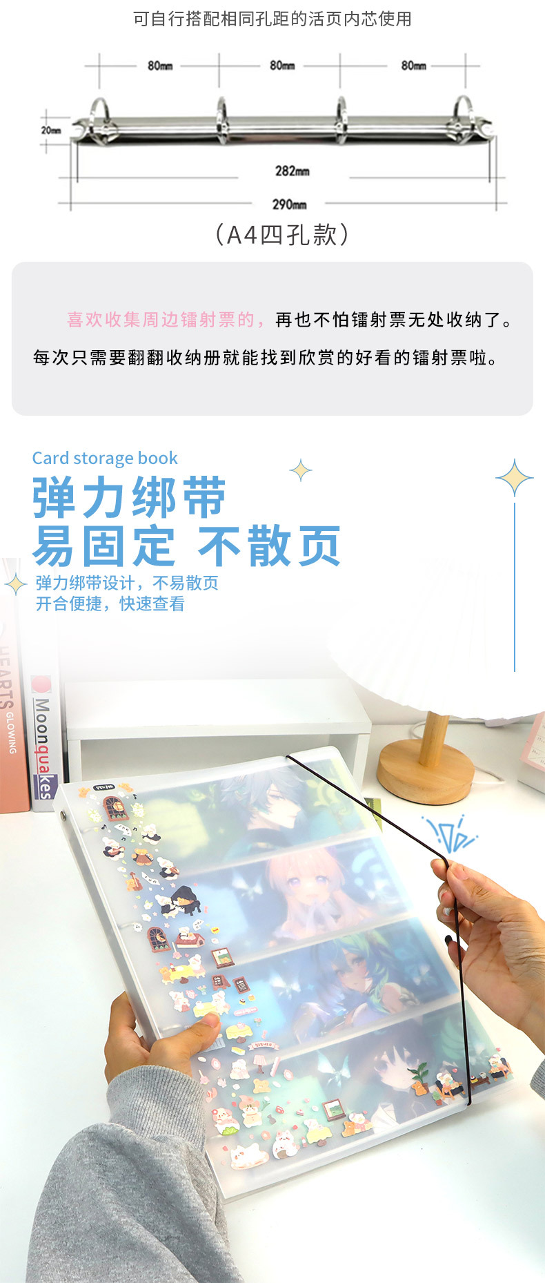 삽입형 A4 레이저 티켓 루스리프 스티커 4칸 수납북 콘서트 티켓 항공권 수납 스티커 수납