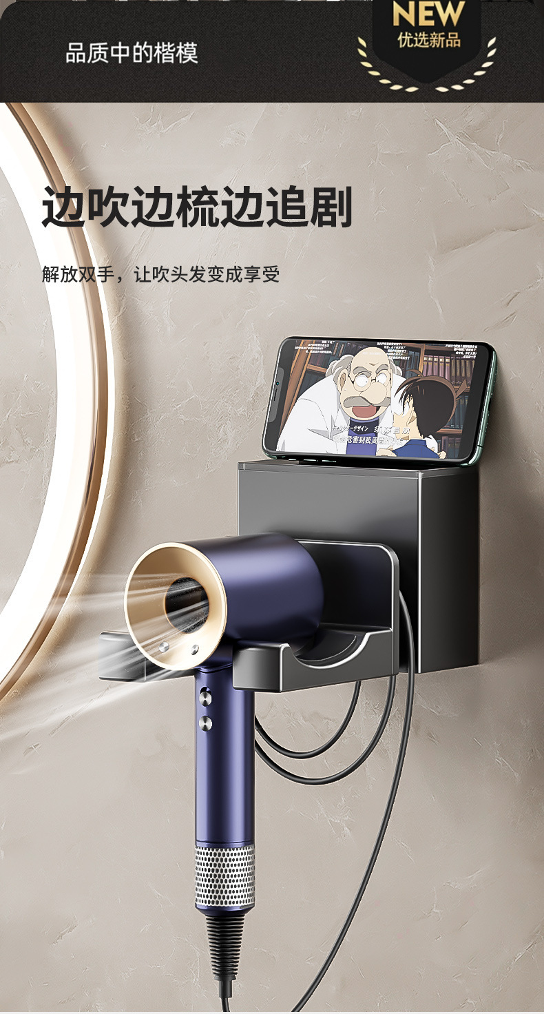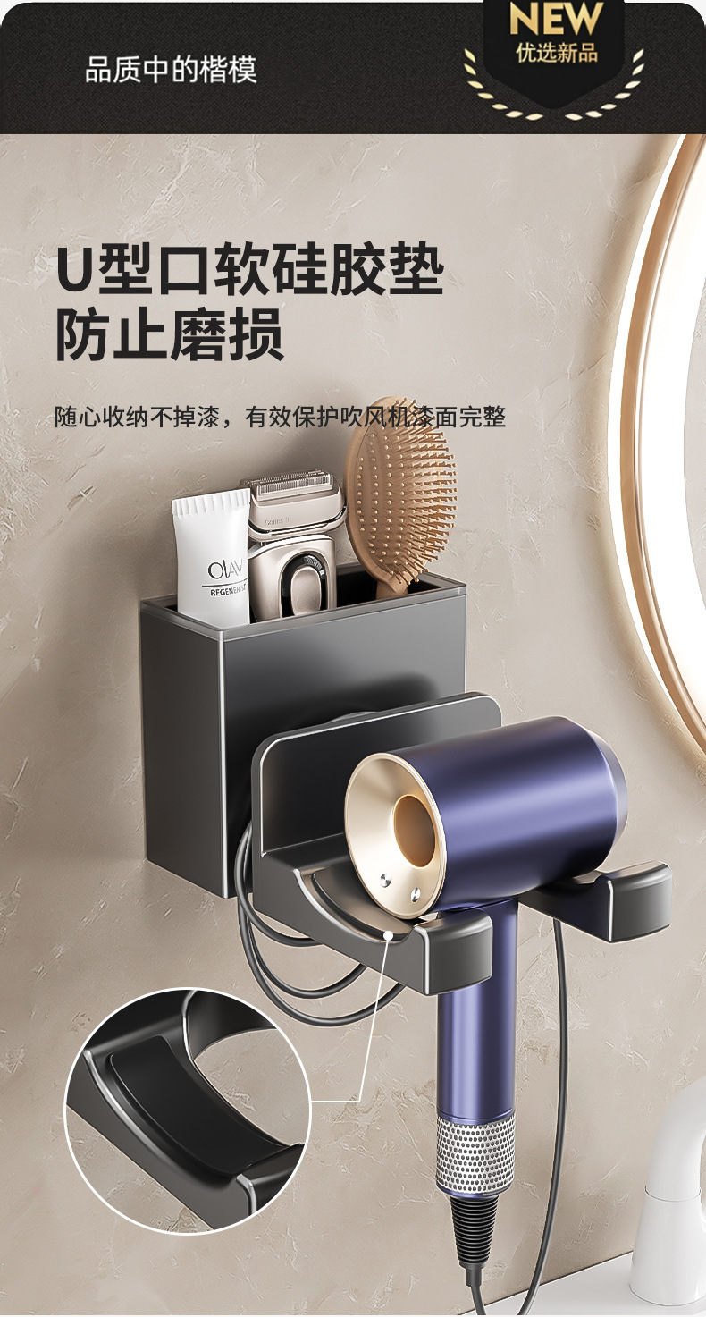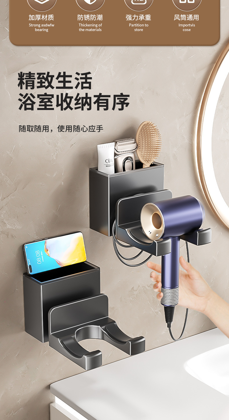 Xinqin 펀치없는 헤어 드라이어 홀더 욕실 벽걸이 형 헤어 드라이어 선반 욕실 헤어 드라이어 보관함