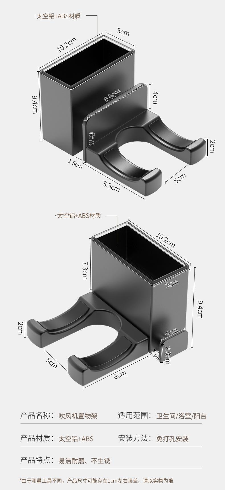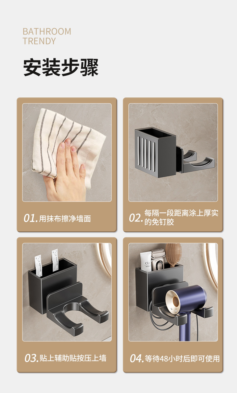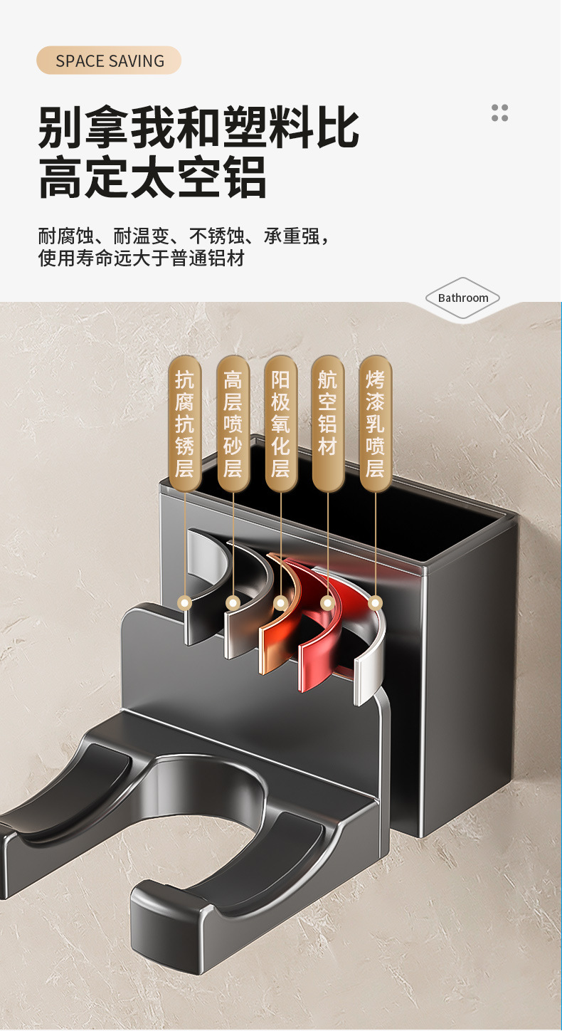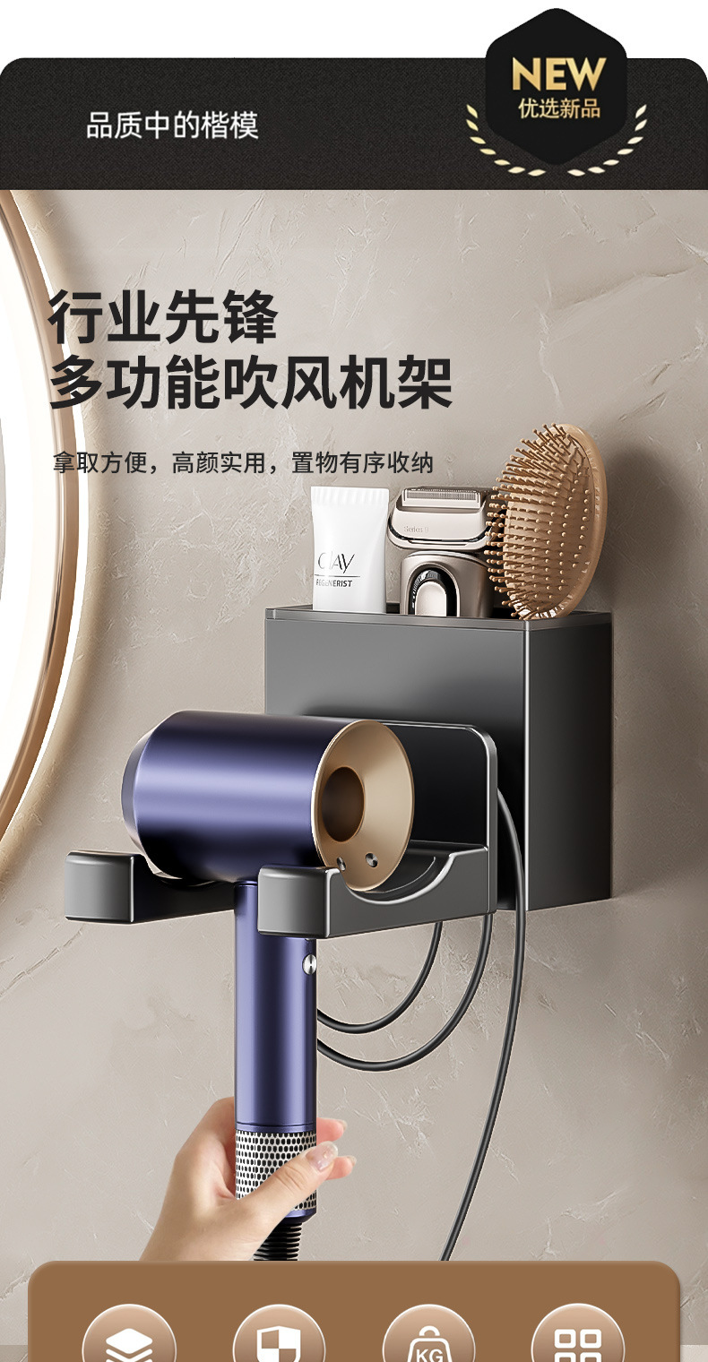 Xinqin 펀치없는 헤어 드라이어 홀더 욕실 벽걸이 형 헤어 드라이어 선반 욕실 헤어 드라이어 보관함
