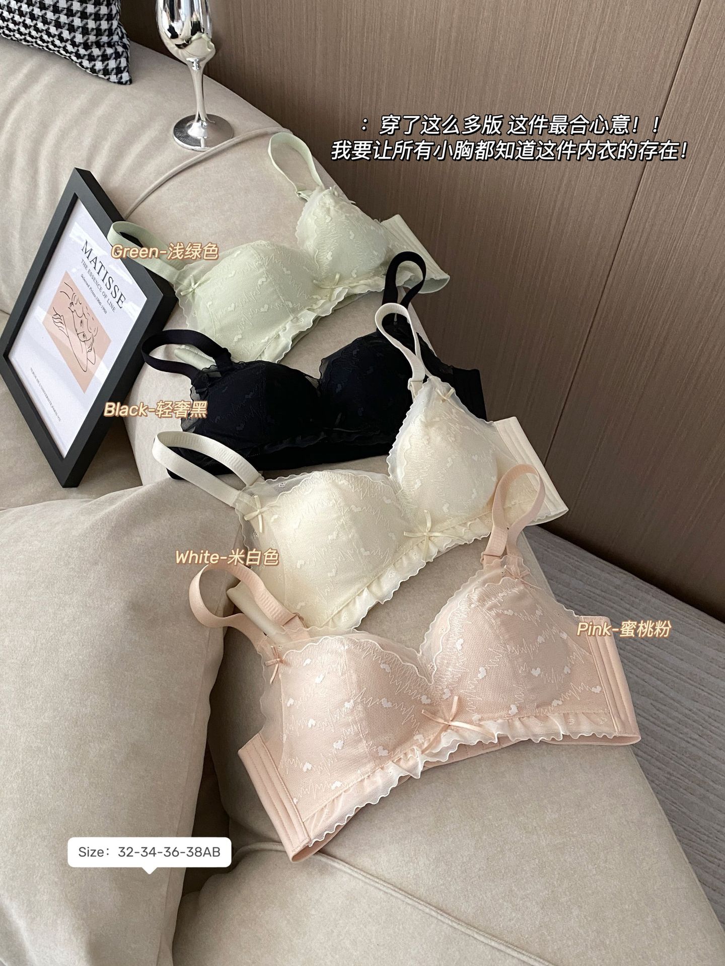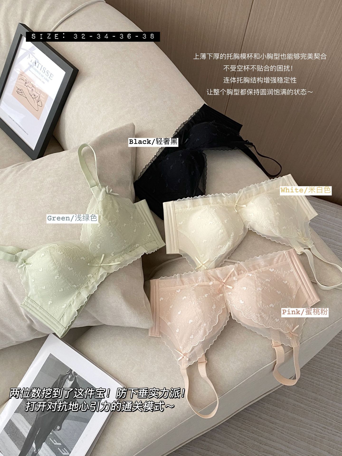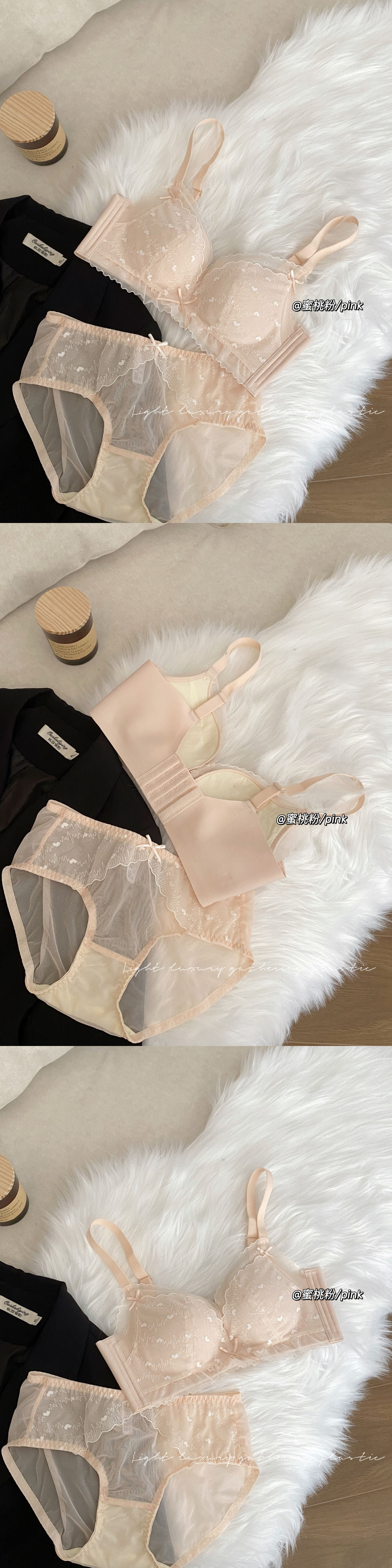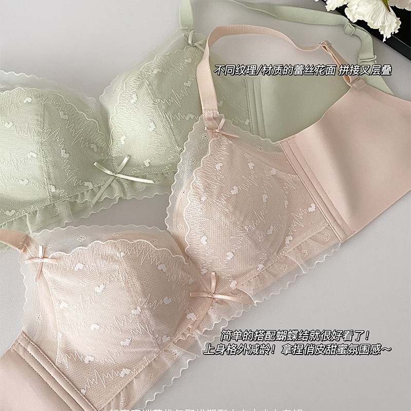 순수한 욕망 스타일 편안한 레이스 속옷 여성의 작은 가슴 모임 빈 컵 없음 스틸 링 얇은 처짐 통기성 브래지어 세트