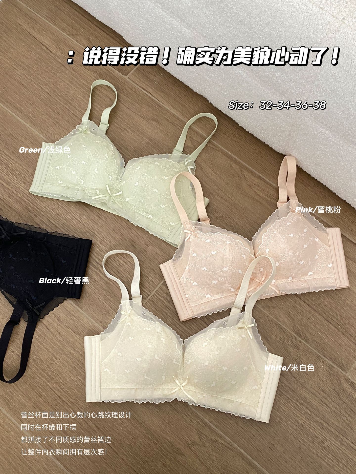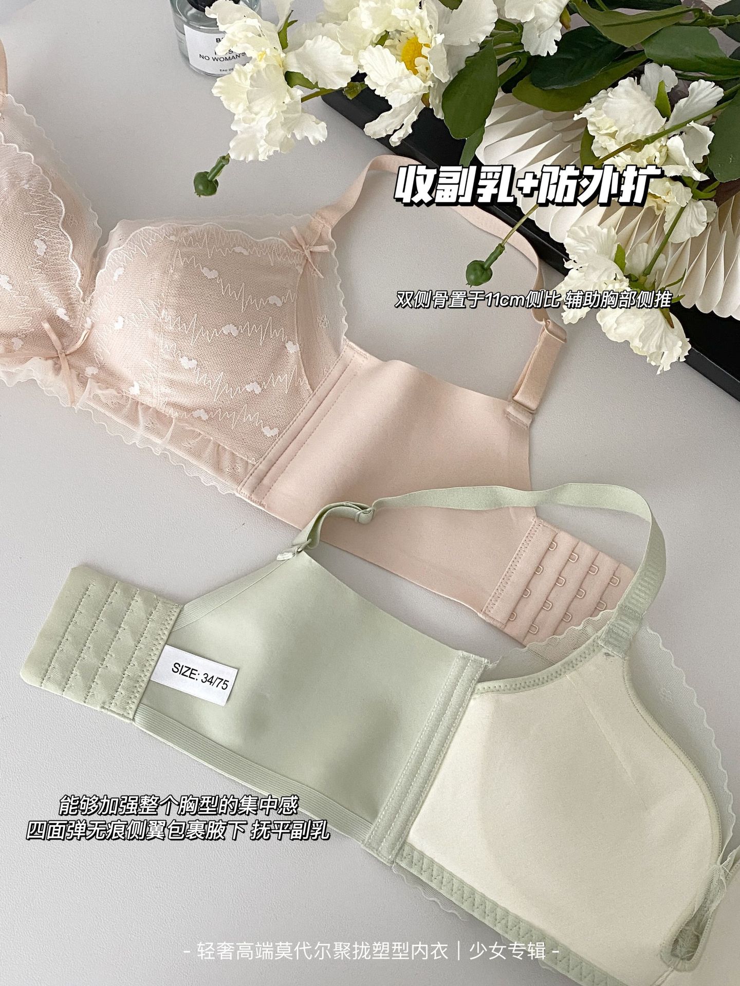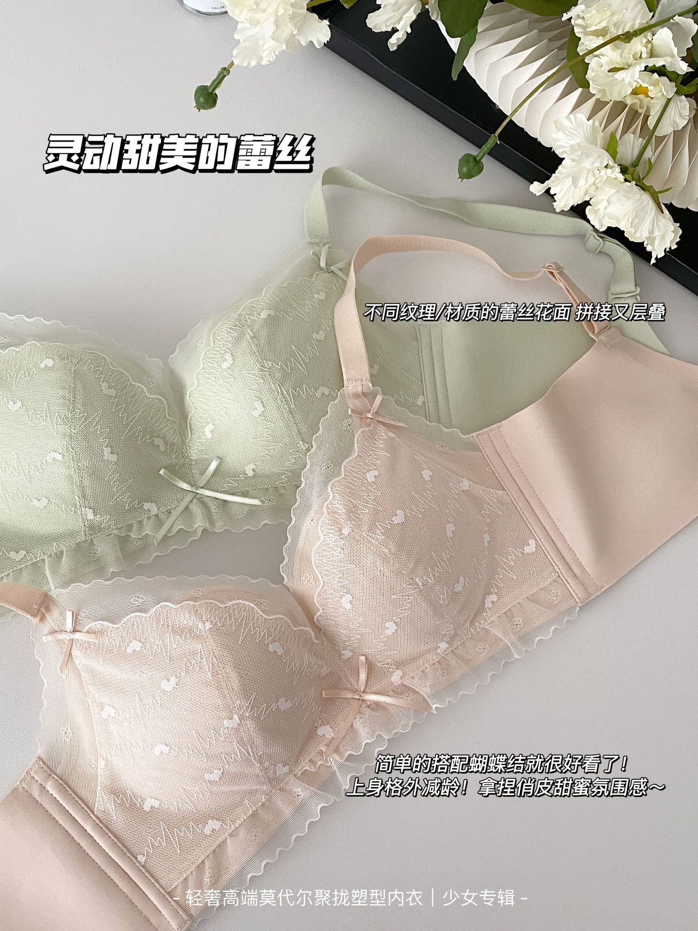 순수한 욕망 스타일 편안한 레이스 속옷 여성의 작은 가슴 모임 빈 컵 없음 스틸 링 얇은 처짐 통기성 브래지어 세트