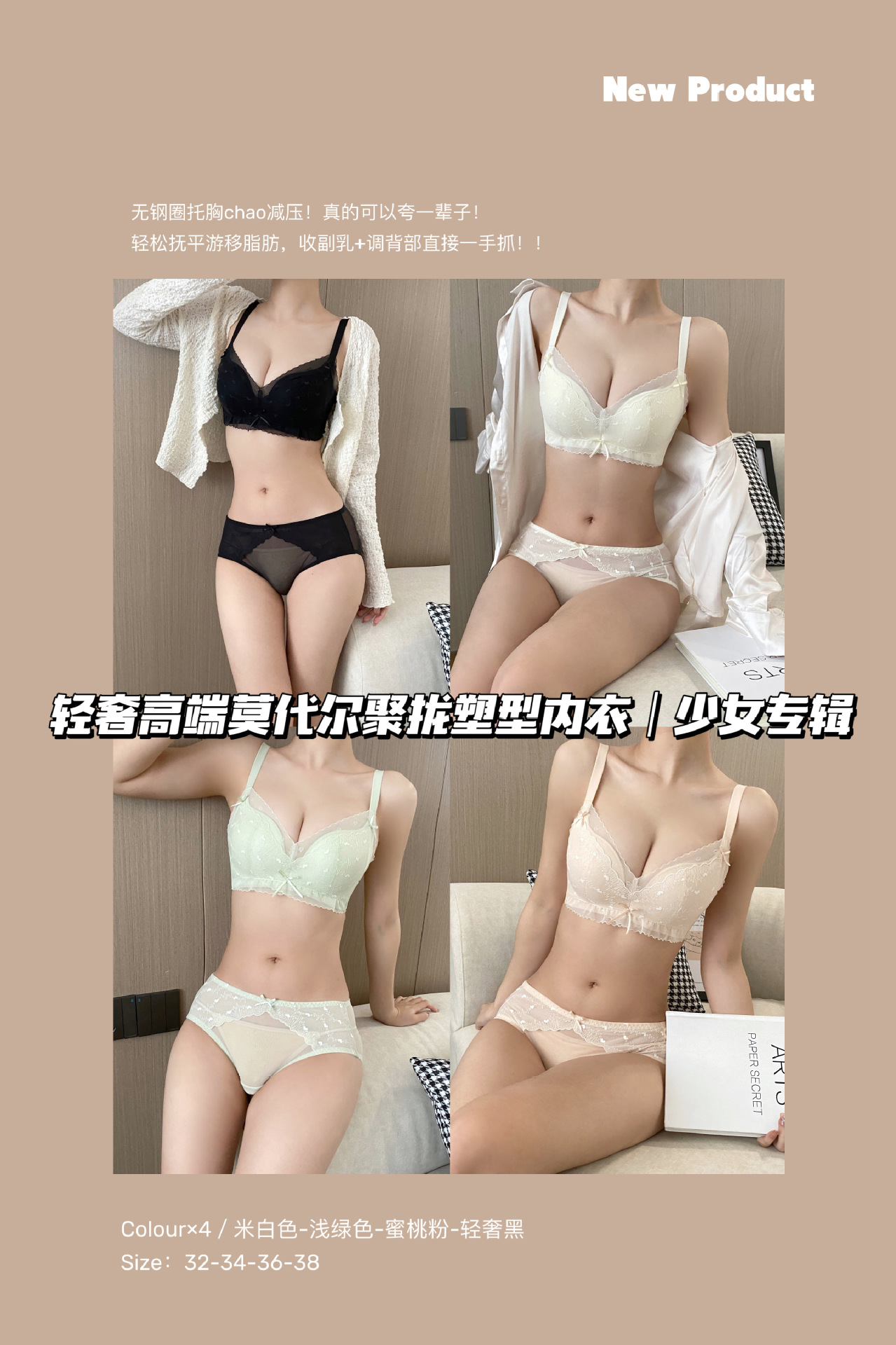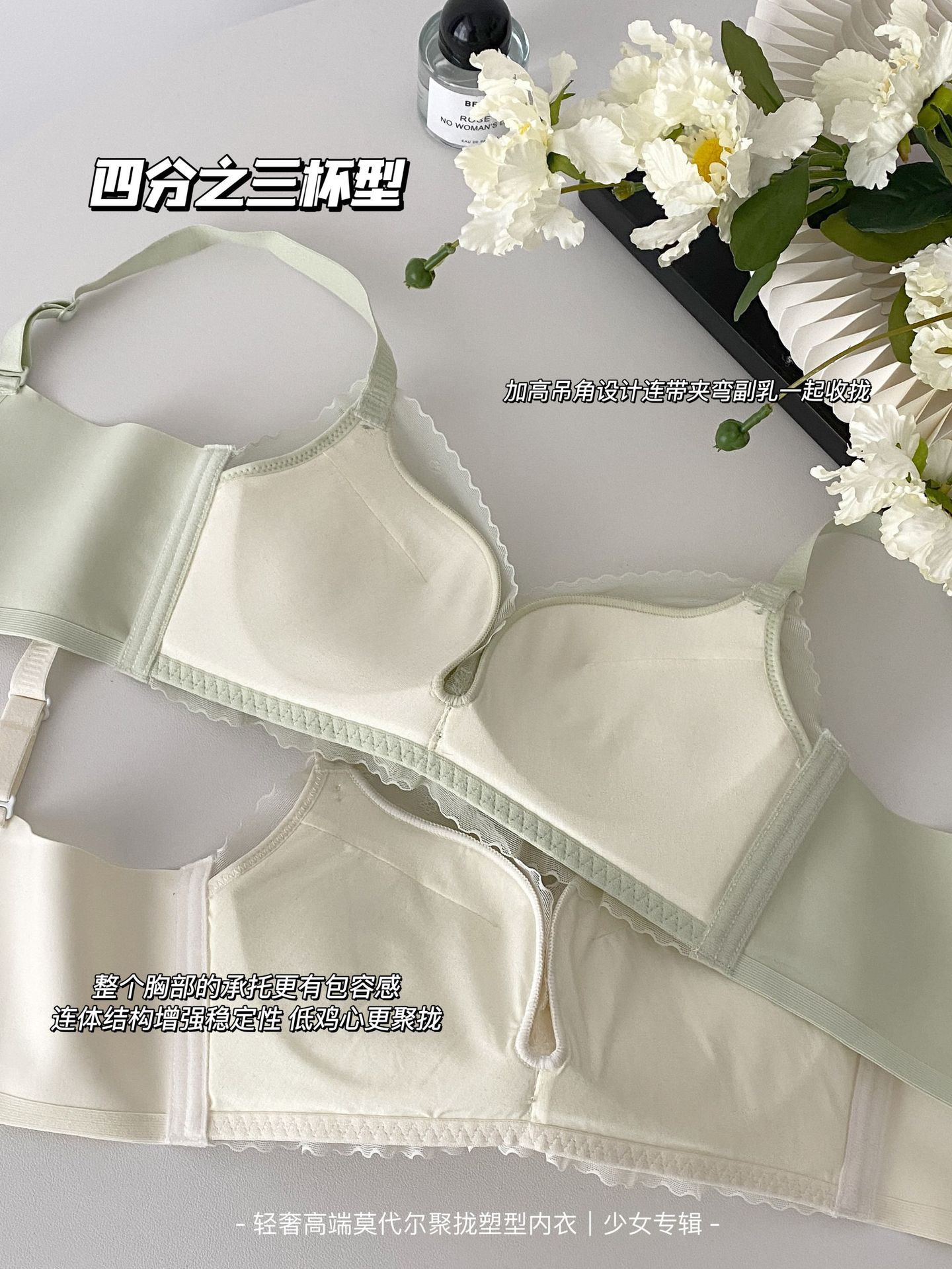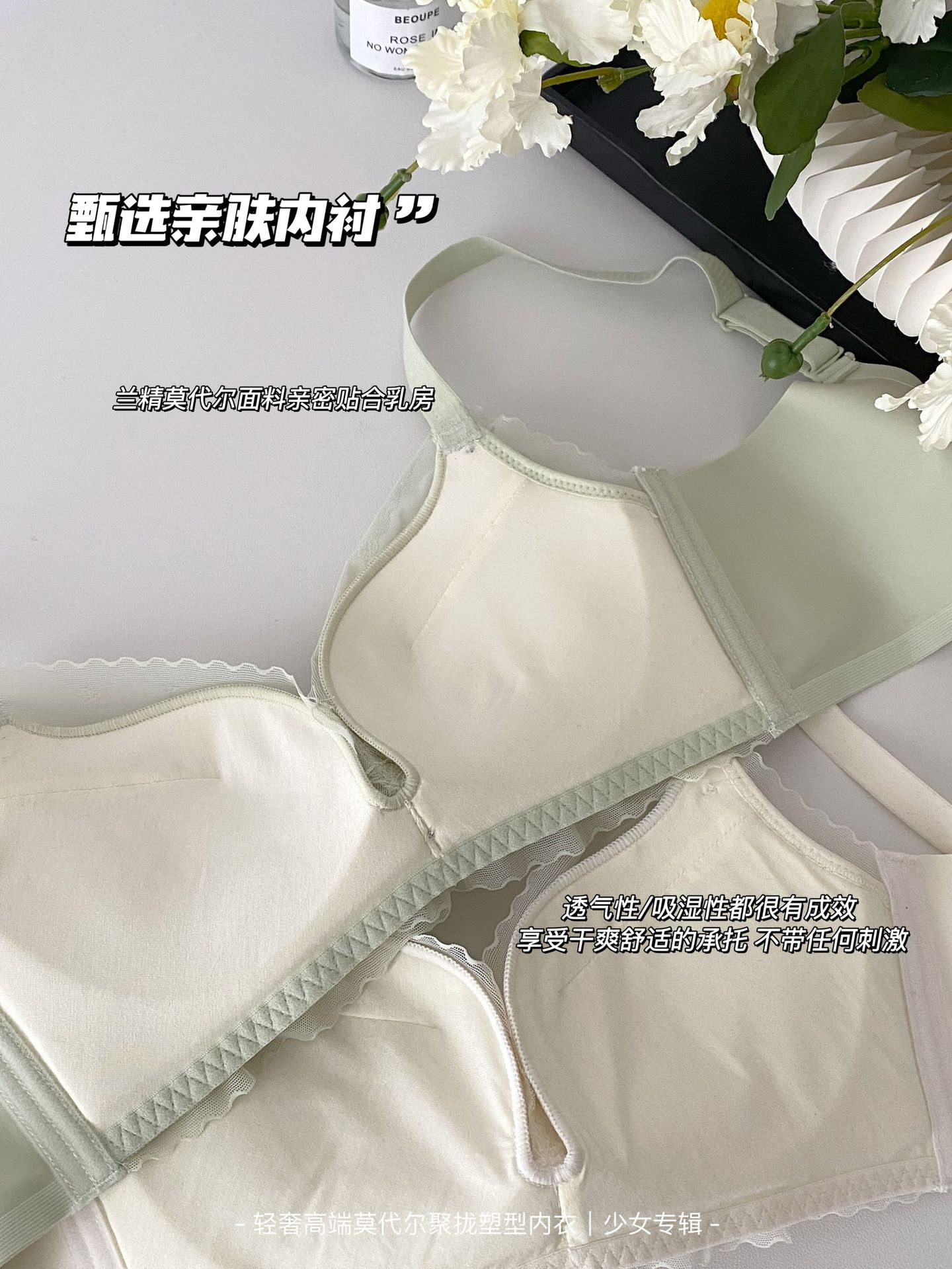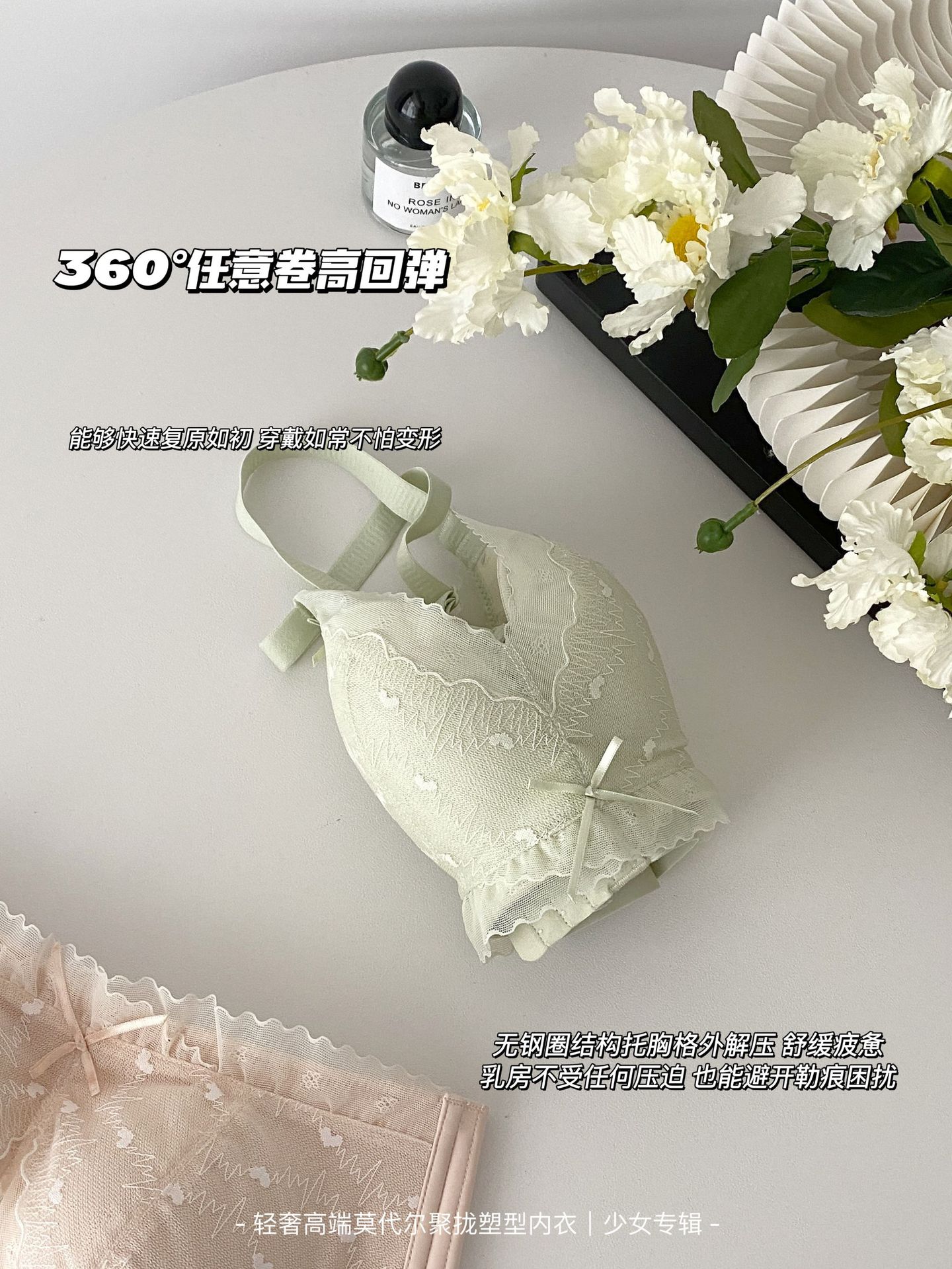 순수한 욕망 스타일 편안한 레이스 속옷 여성의 작은 가슴 모임 빈 컵 없음 스틸 링 얇은 처짐 통기성 브래지어 세트