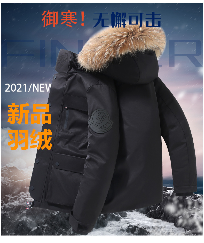 국경을 넘는 신상품 대외 무역 도매 남성용 다운 재킷 스탠드 칼라 후드 아웃도어 다운 재킷 남성용 두꺼운 대형 모피 칼라 작업복 트렌드