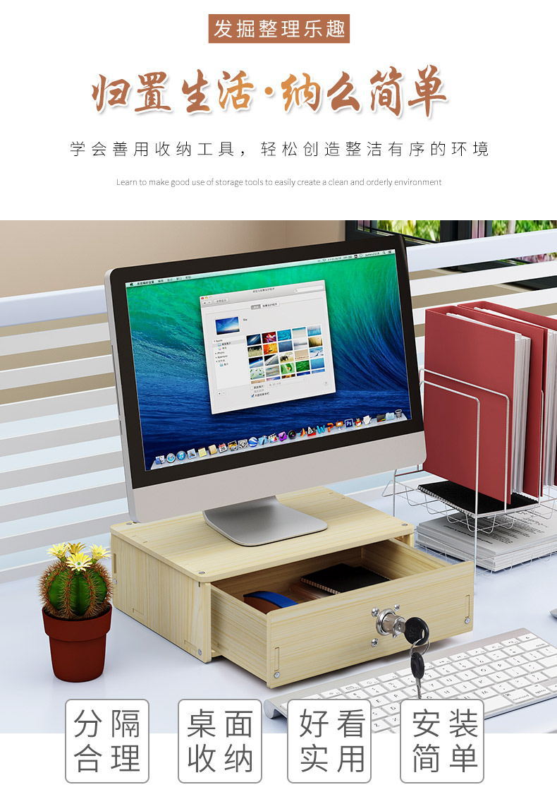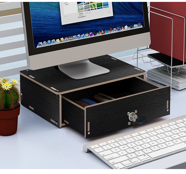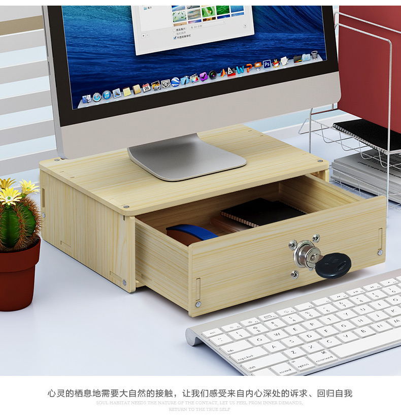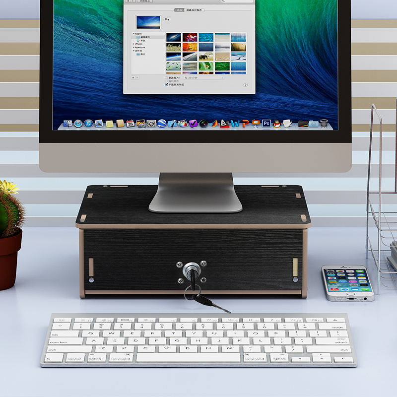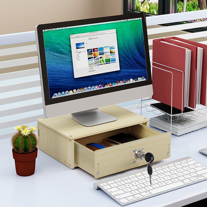 컴퓨터 모니터 높은 랙 지원 기본 목 보호 사무용품 잠금 스토리지 랙이있는 데스크탑 스토리지 박스