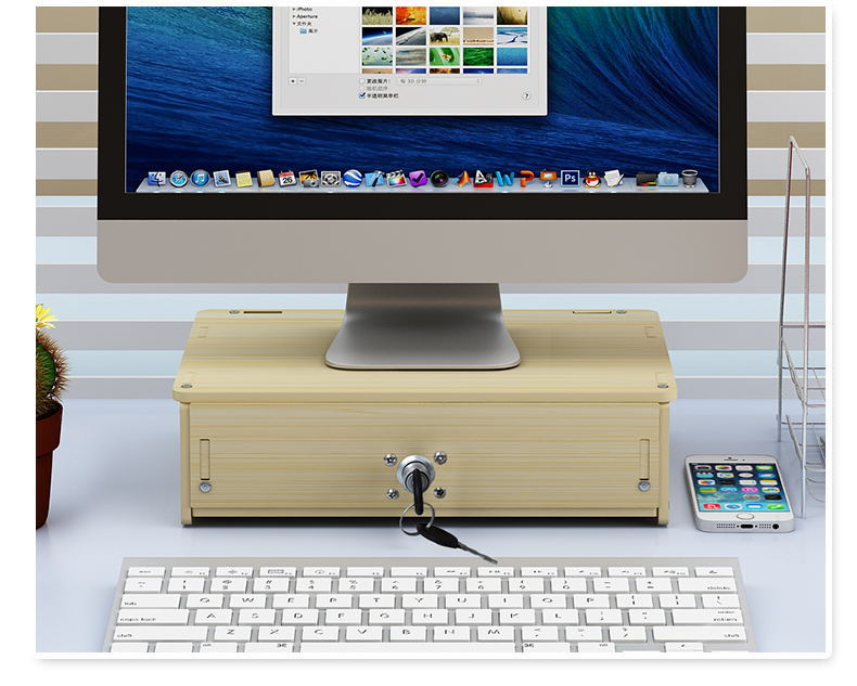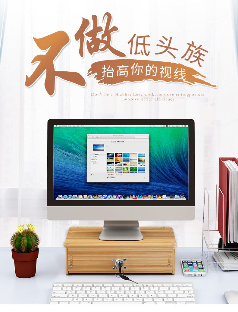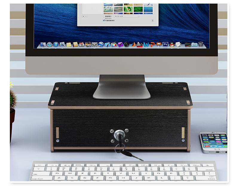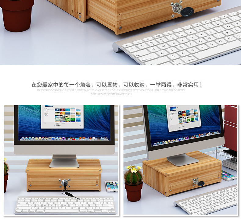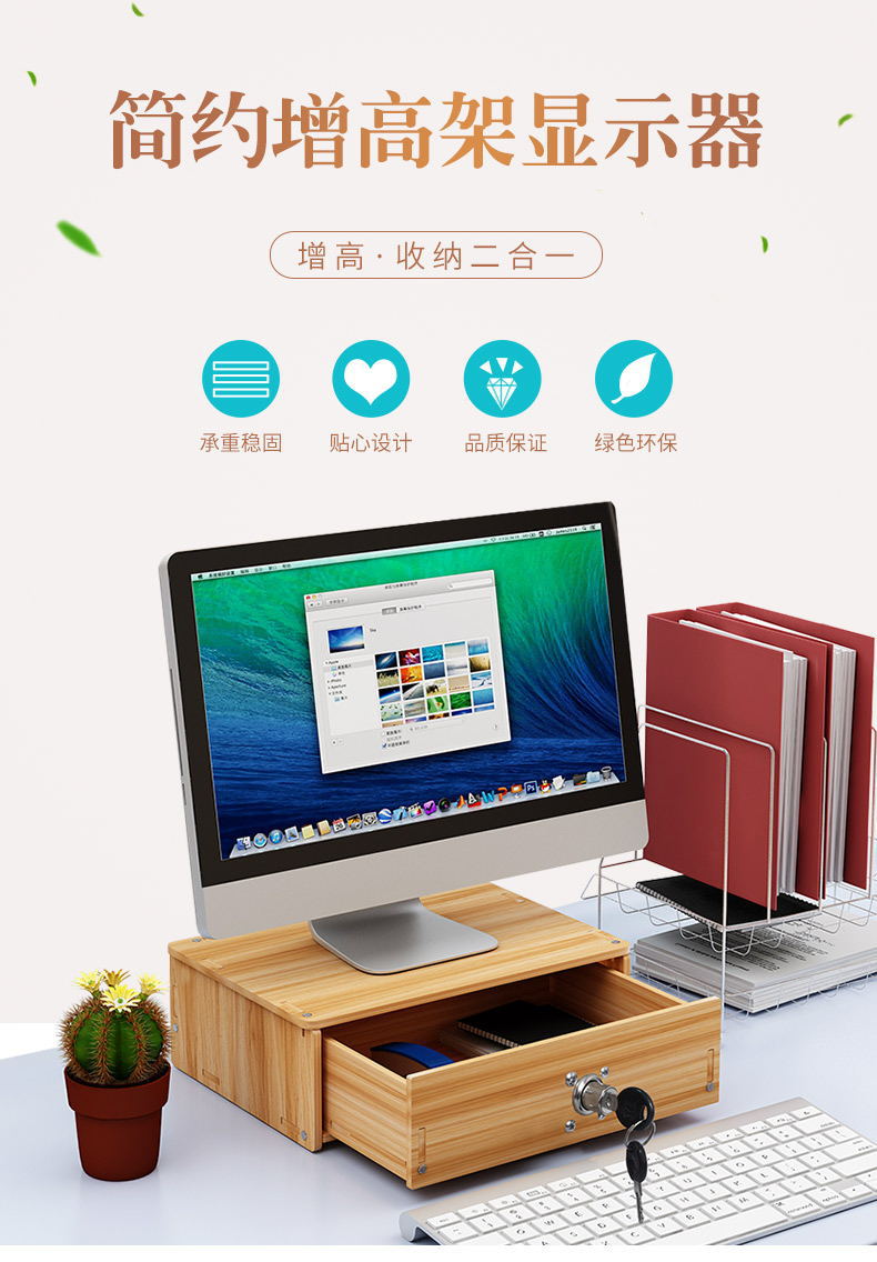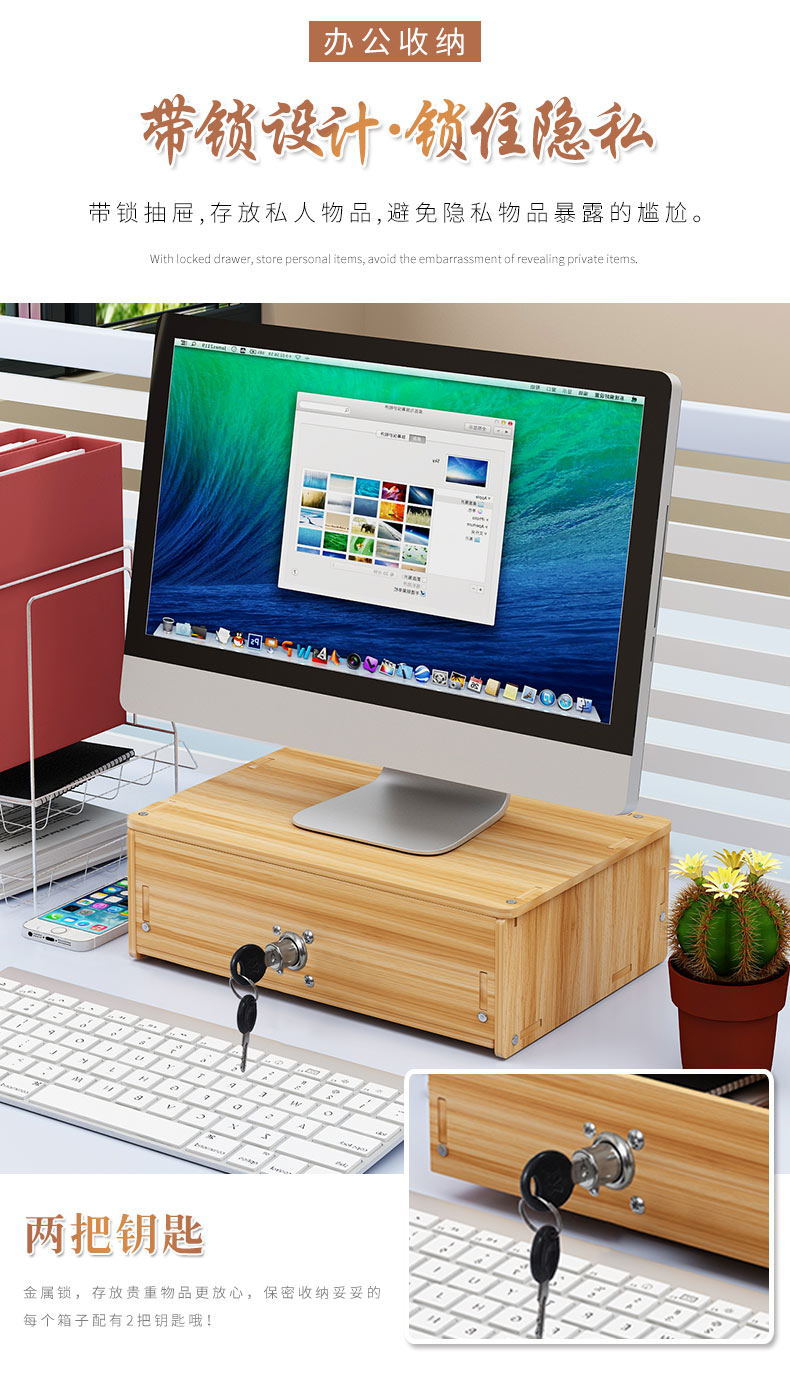 컴퓨터 모니터 높은 랙 지원 기본 목 보호 사무용품 잠금 스토리지 랙이있는 데스크탑 스토리지 박스