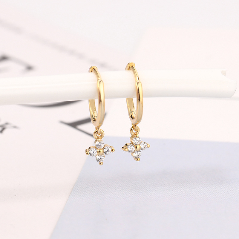 유럽과 미국의 국경 기하학적 꽃 다이아몬드 귀걸이 INS 트렌디 한 기질 귀 버클 프랑스 멀티 컬러 지르콘 귀걸이 여성