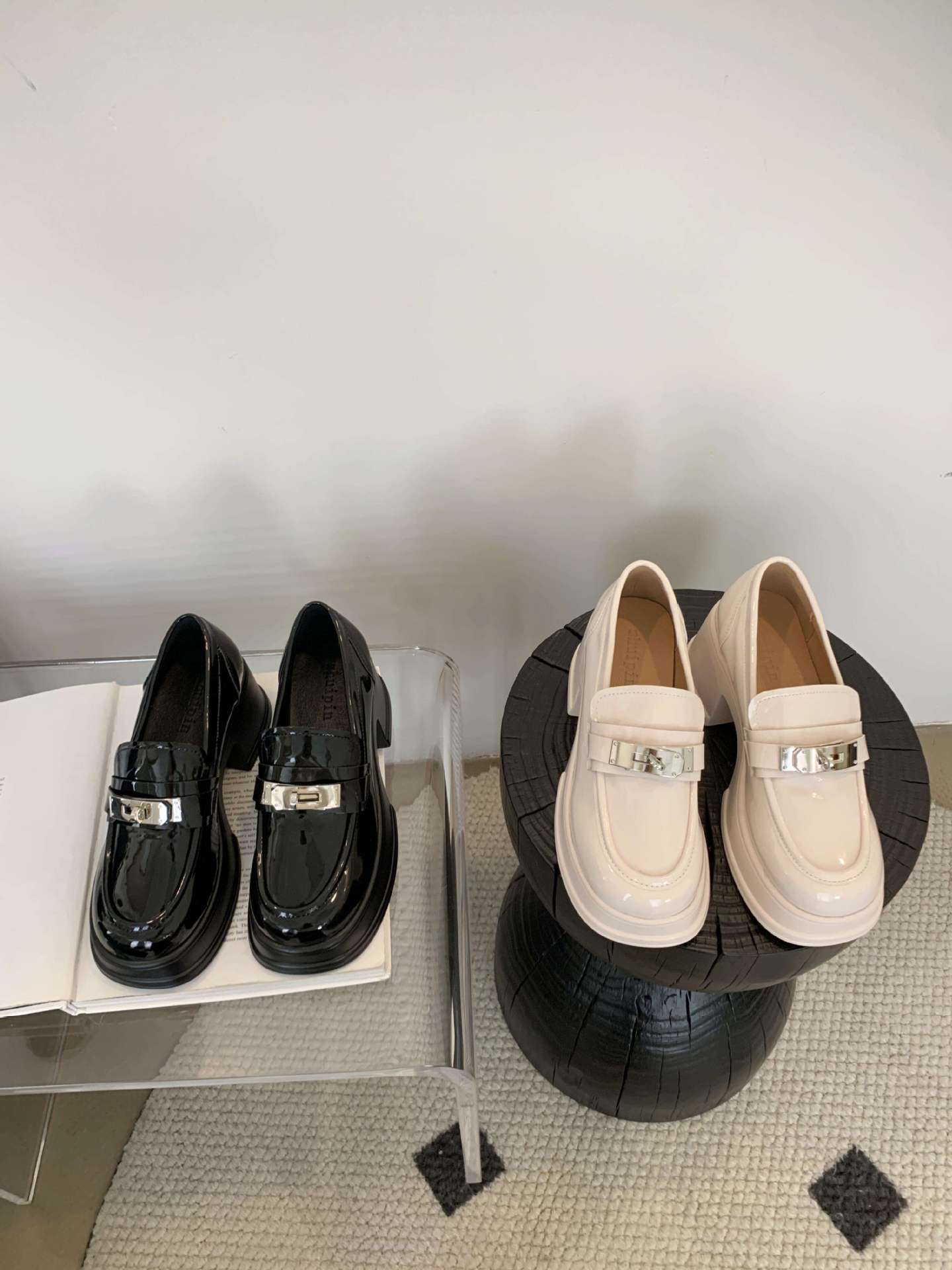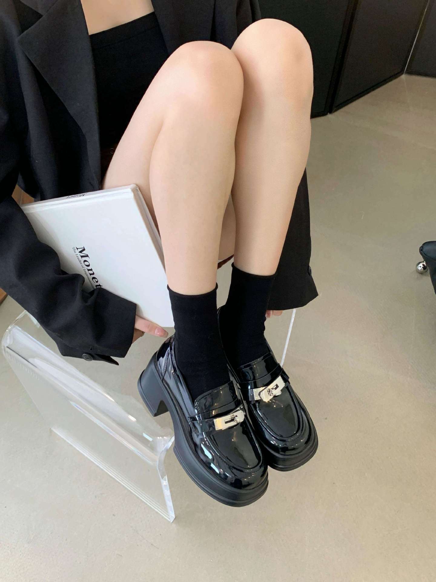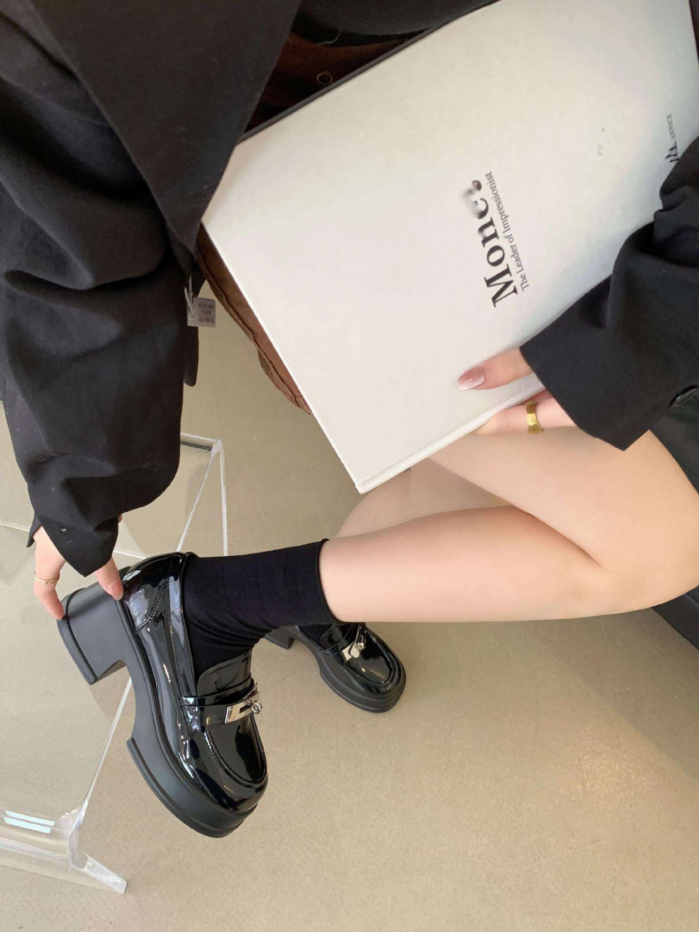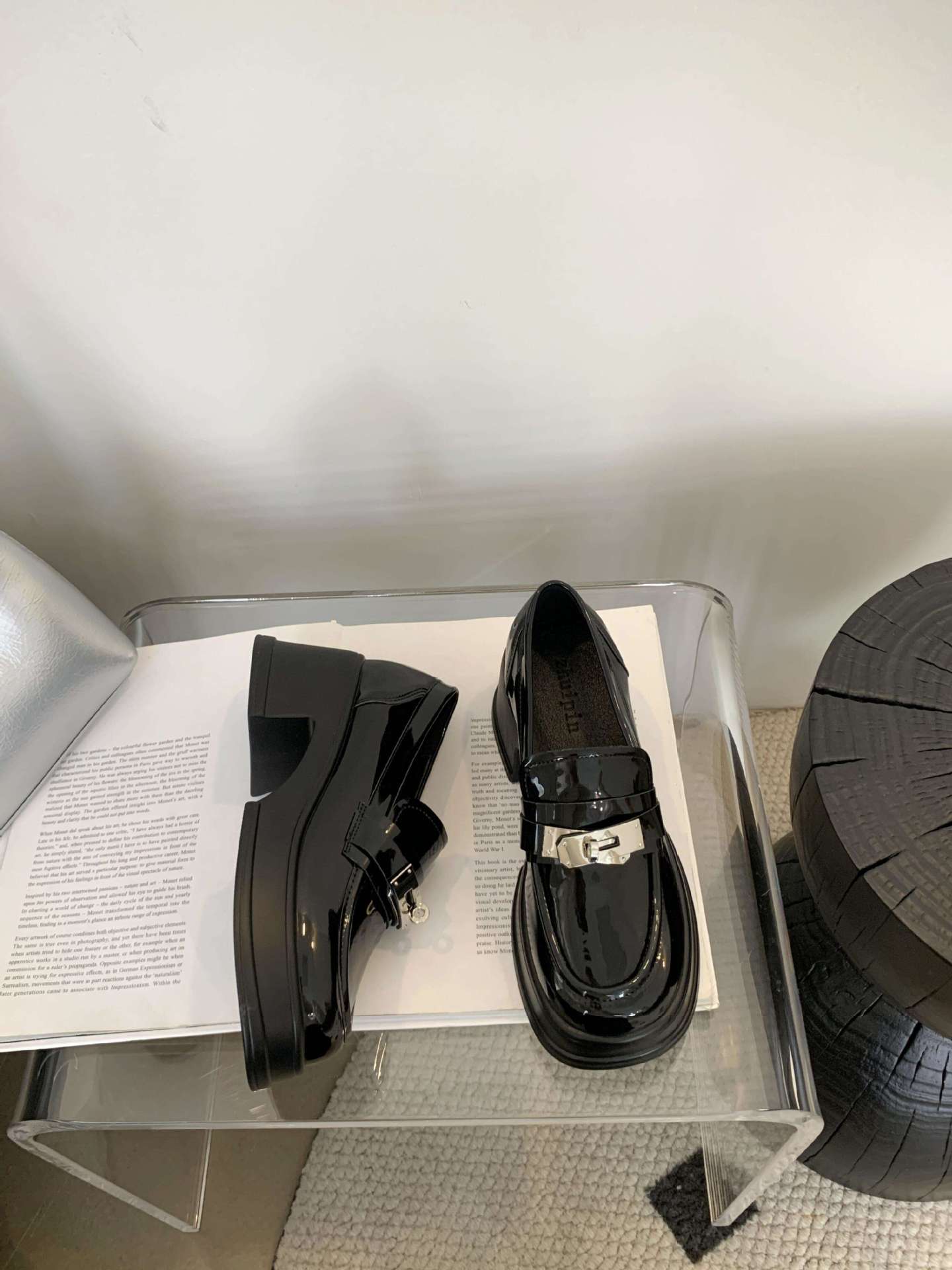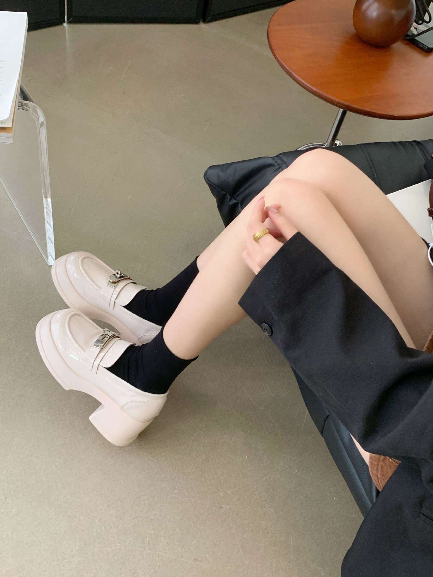 Chupin 머핀 로퍼 여성 2024 뉴 봄 영국 골드 버클 슬립 온 신발 블랙 두꺼운 밑창 가죽 신발