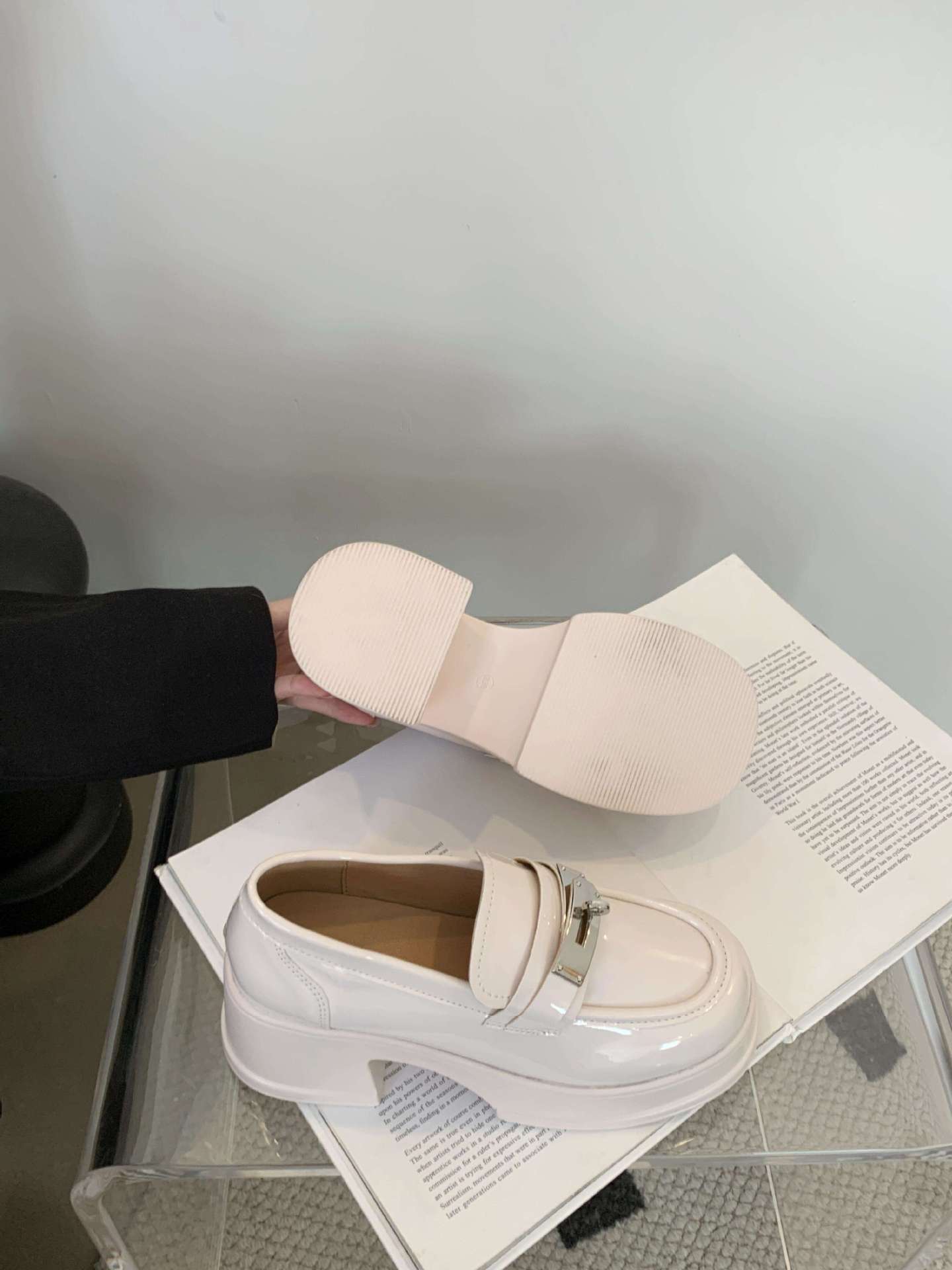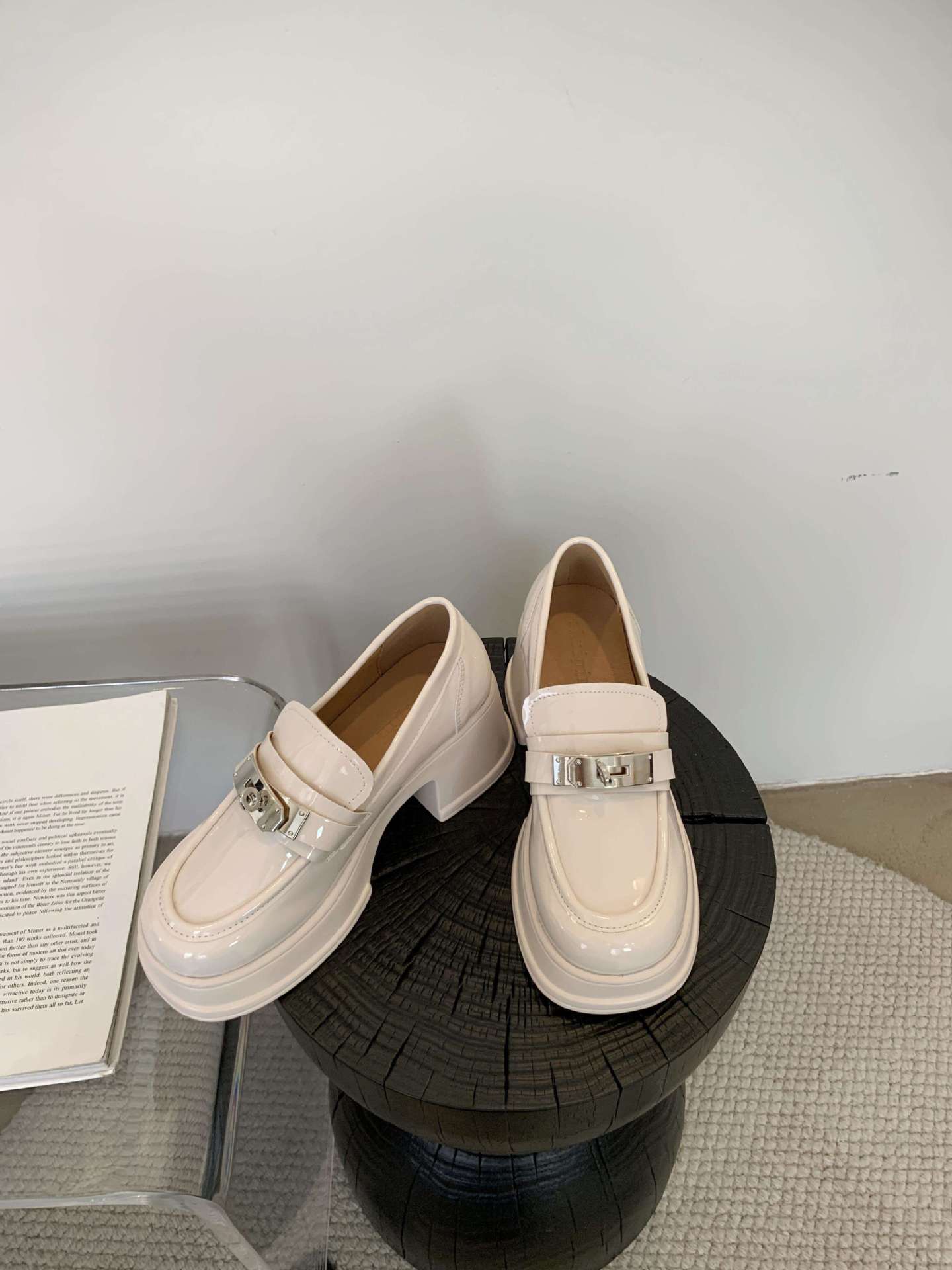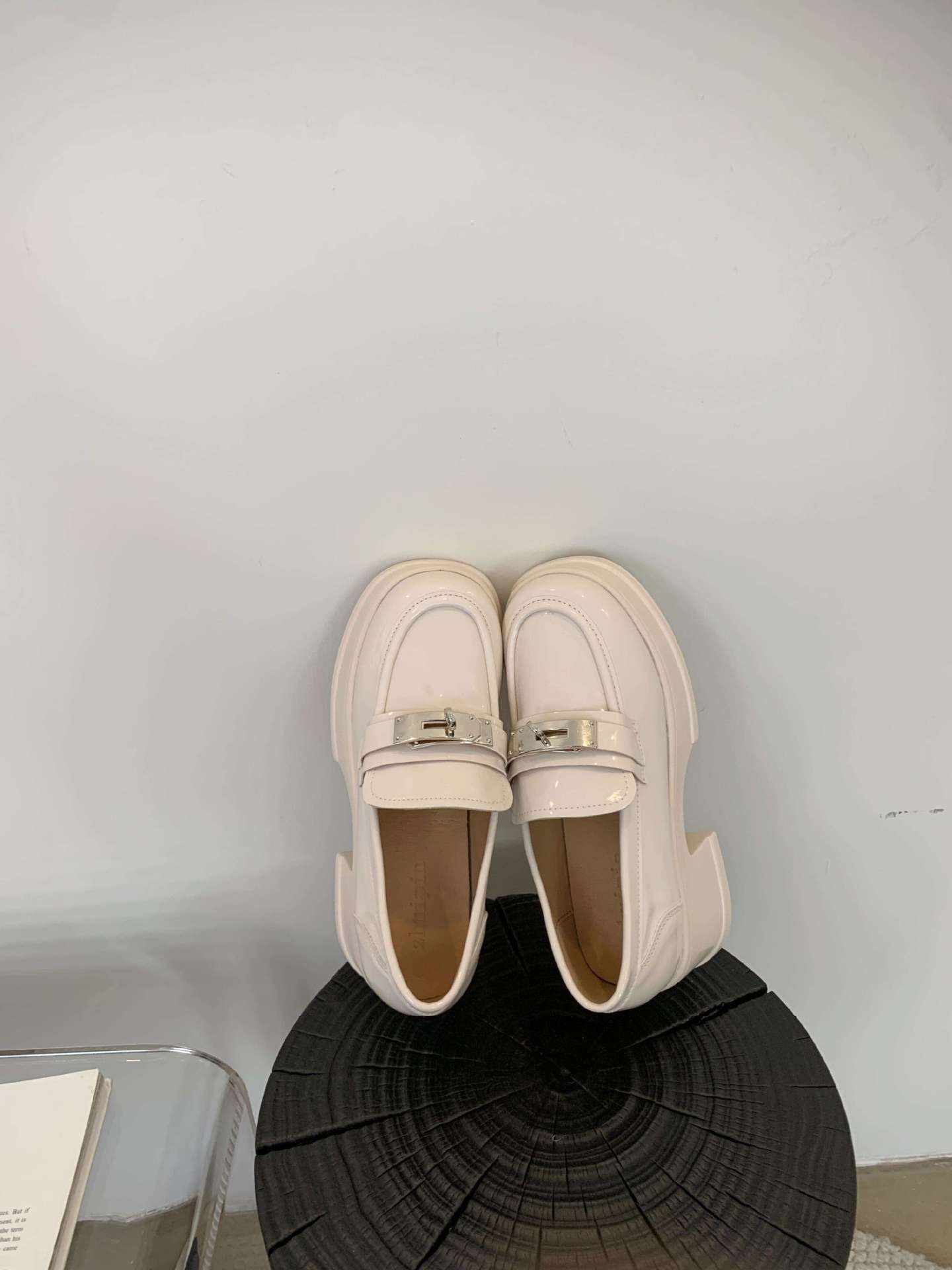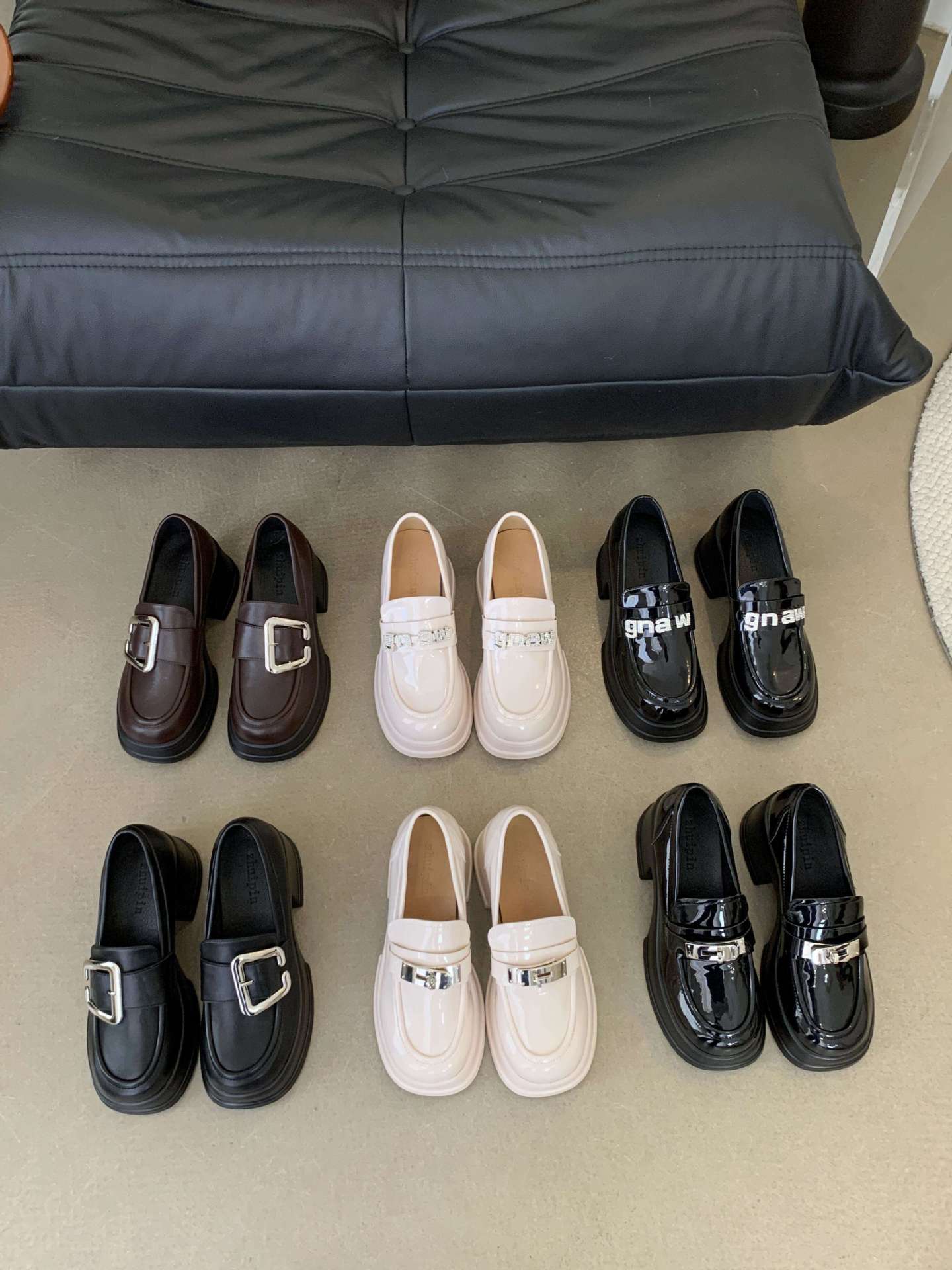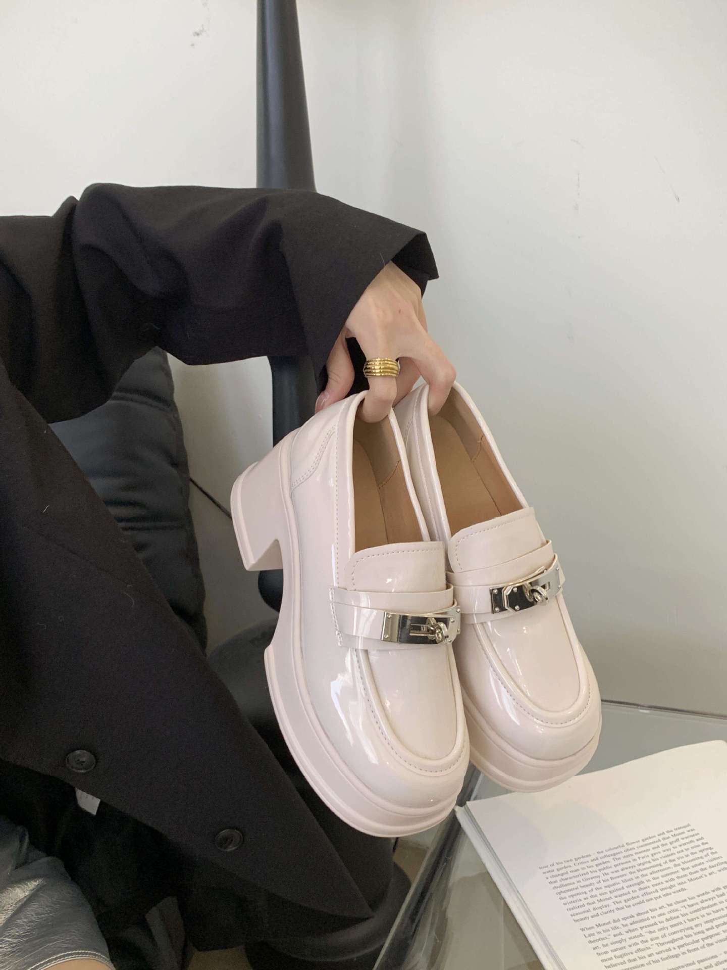 Chupin 머핀 로퍼 여성 2024 뉴 봄 영국 골드 버클 슬립 온 신발 블랙 두꺼운 밑창 가죽 신발