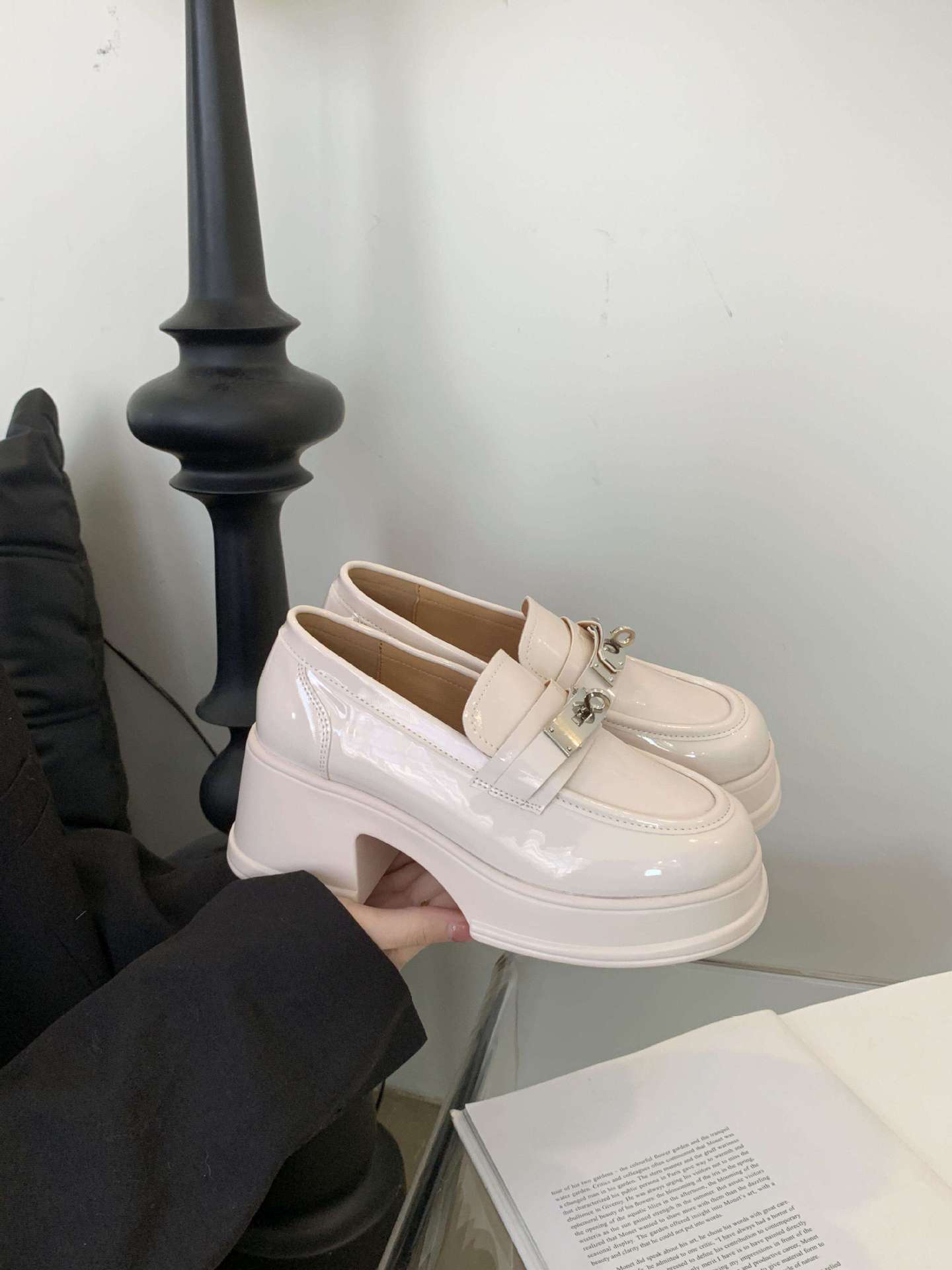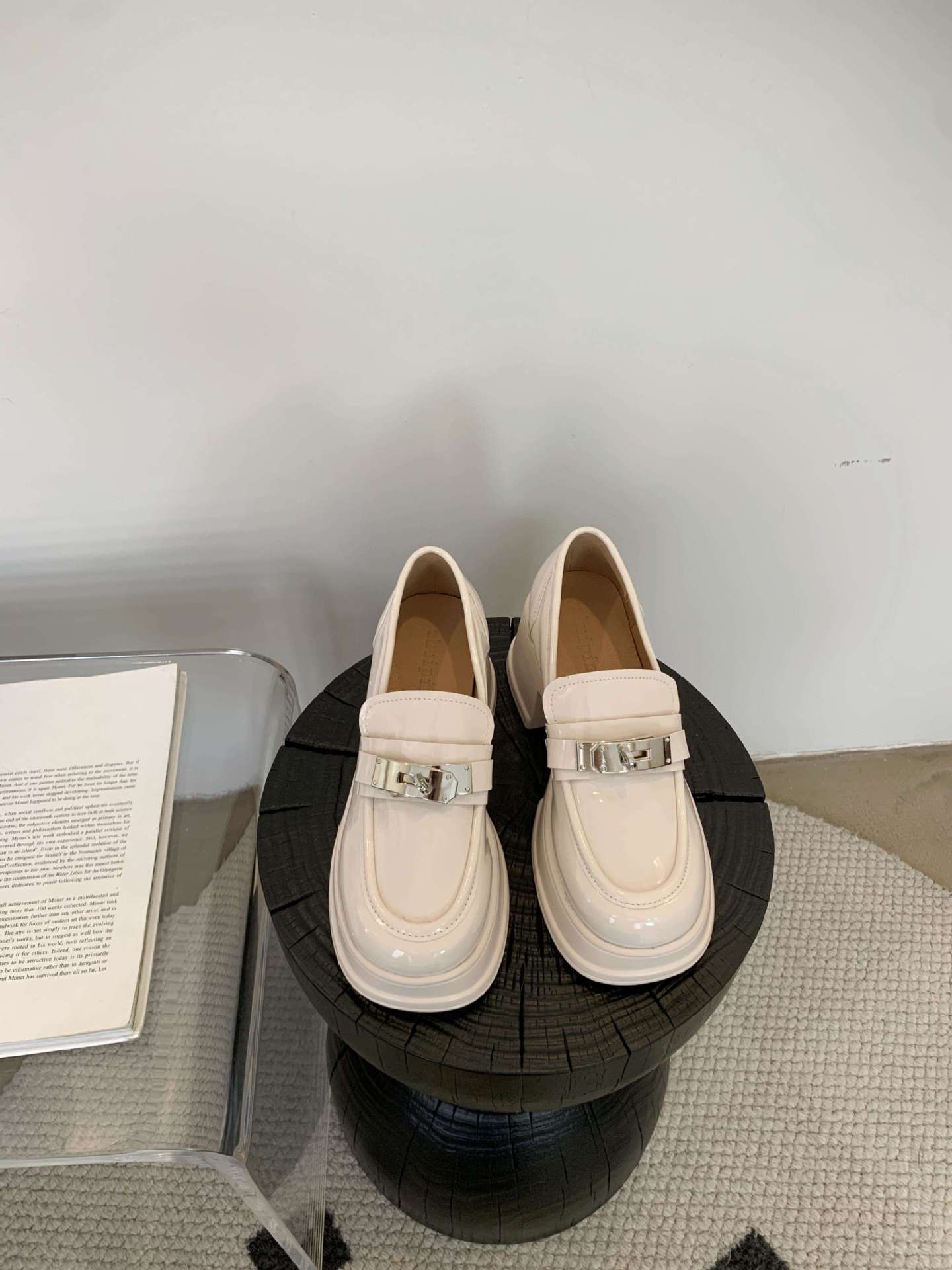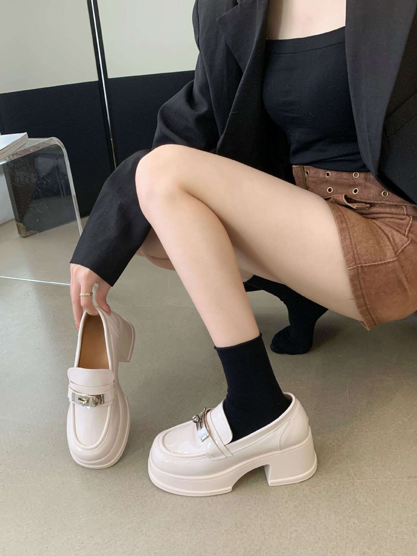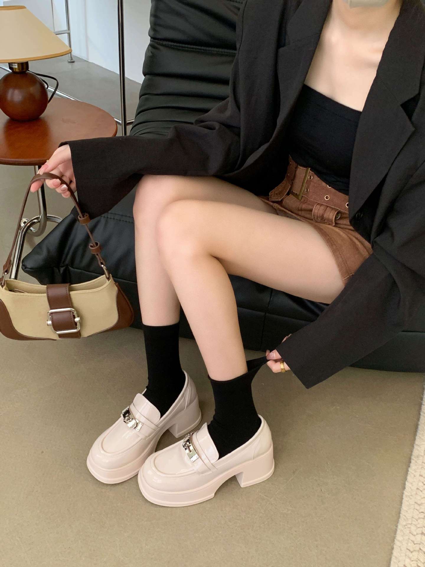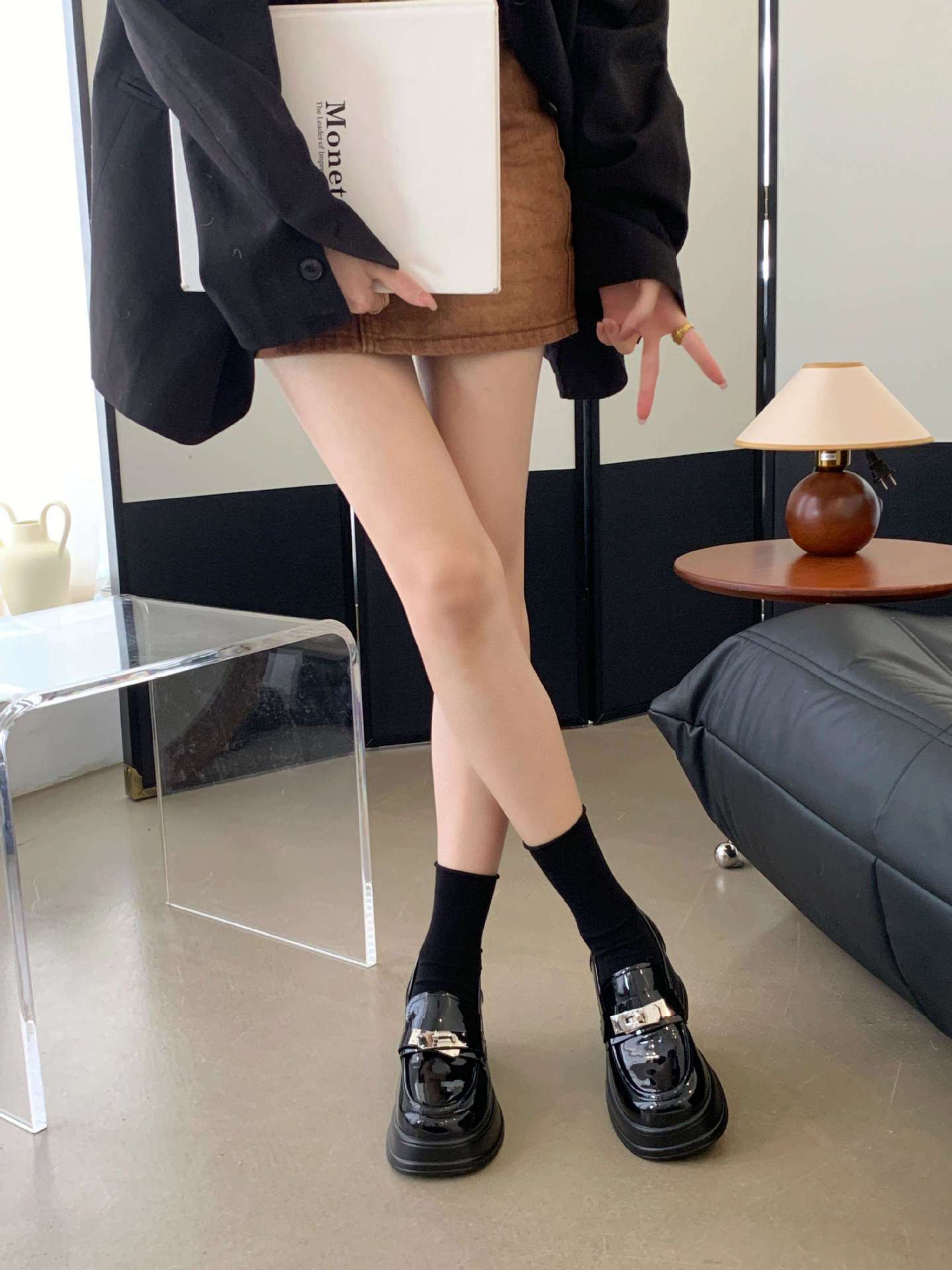 Chupin 머핀 로퍼 여성 2024 뉴 봄 영국 골드 버클 슬립 온 신발 블랙 두꺼운 밑창 가죽 신발