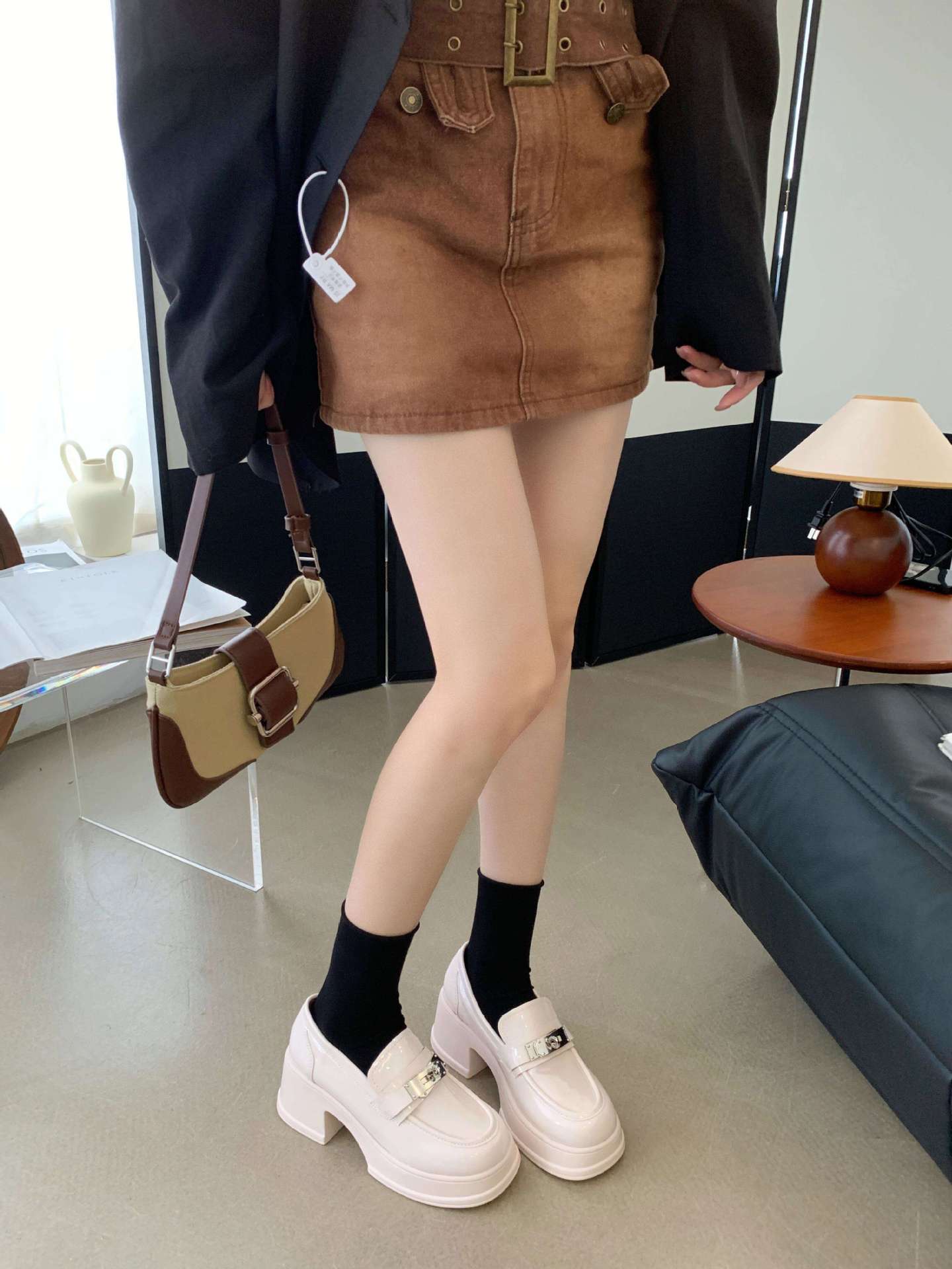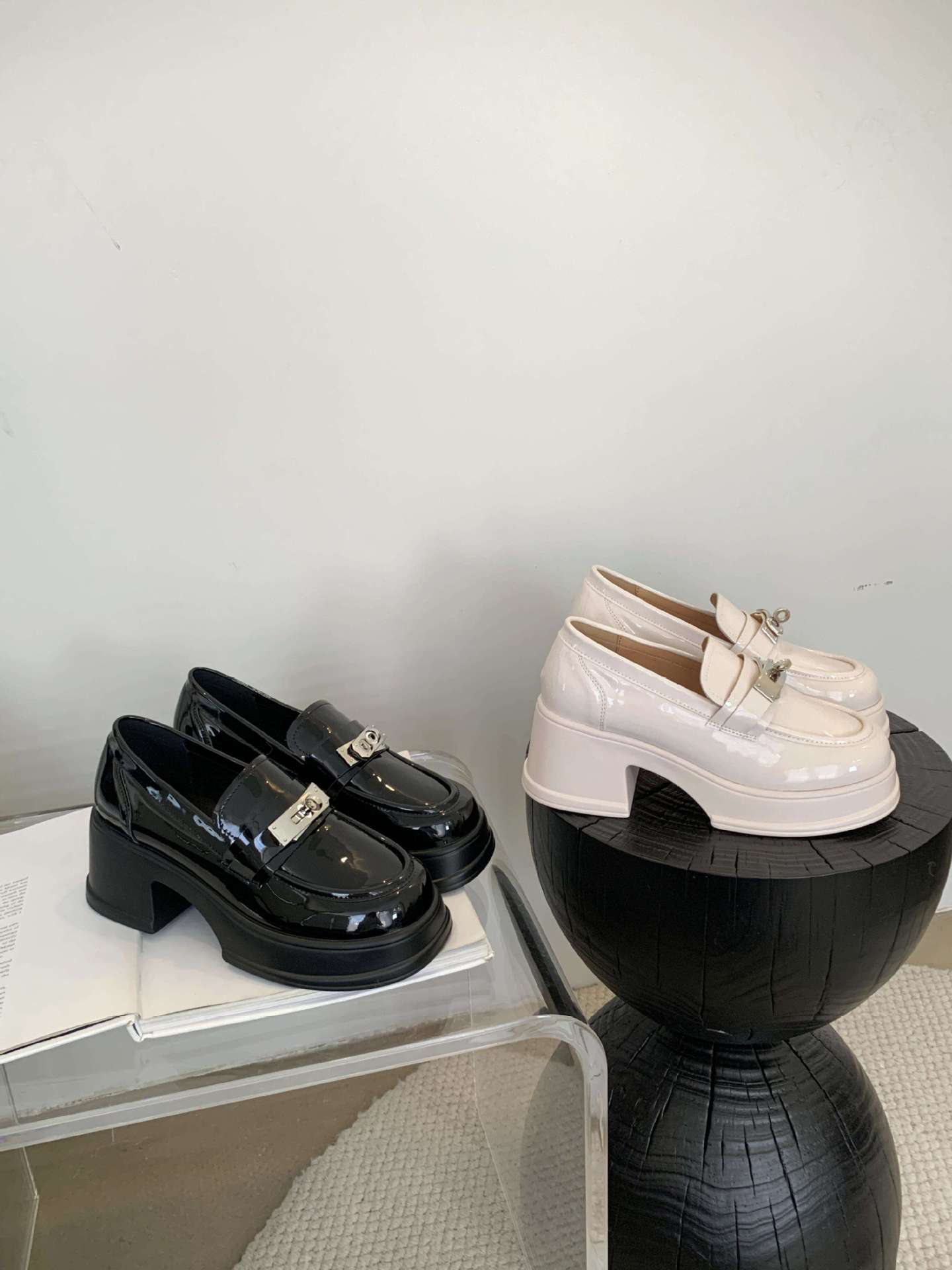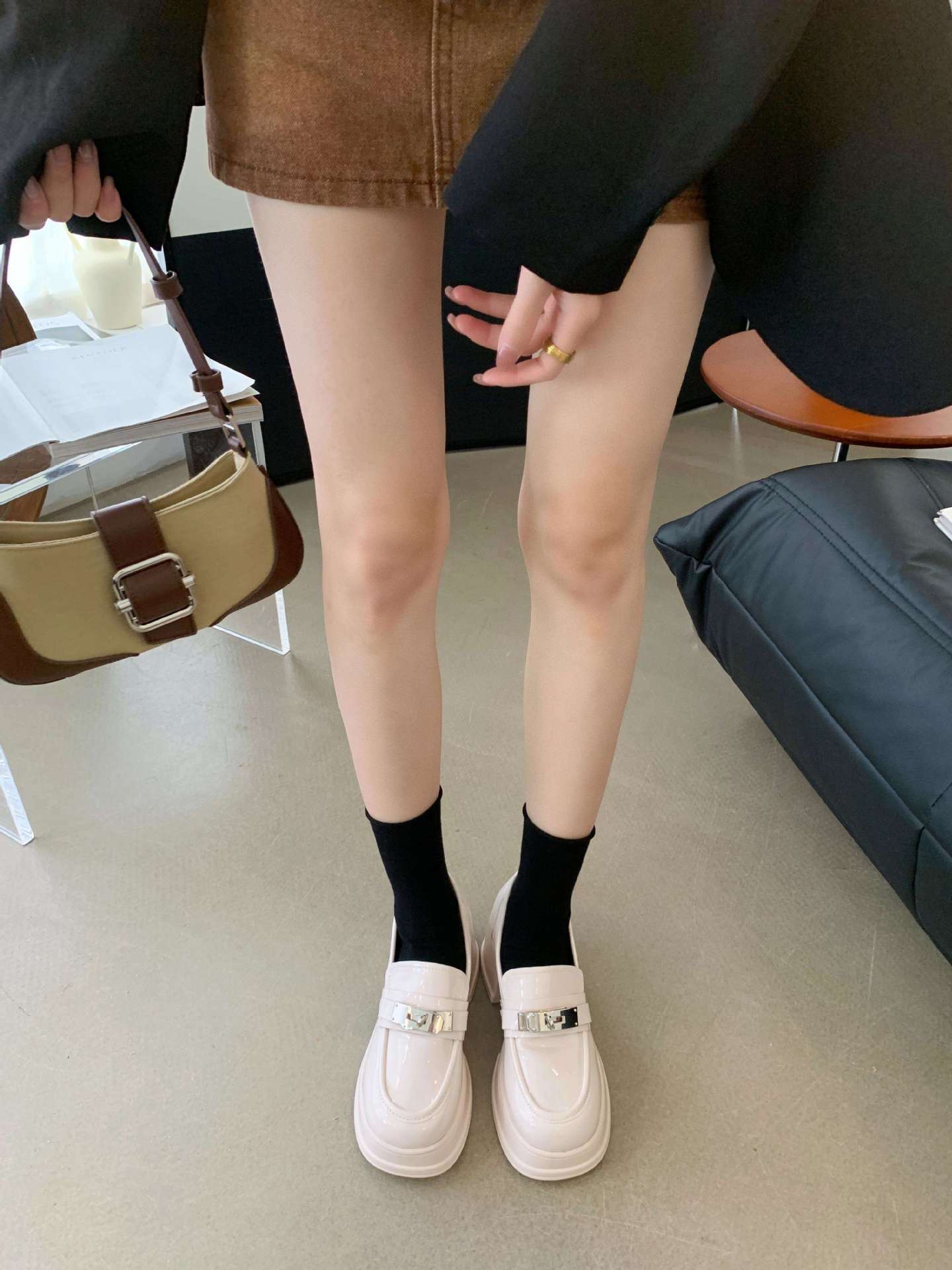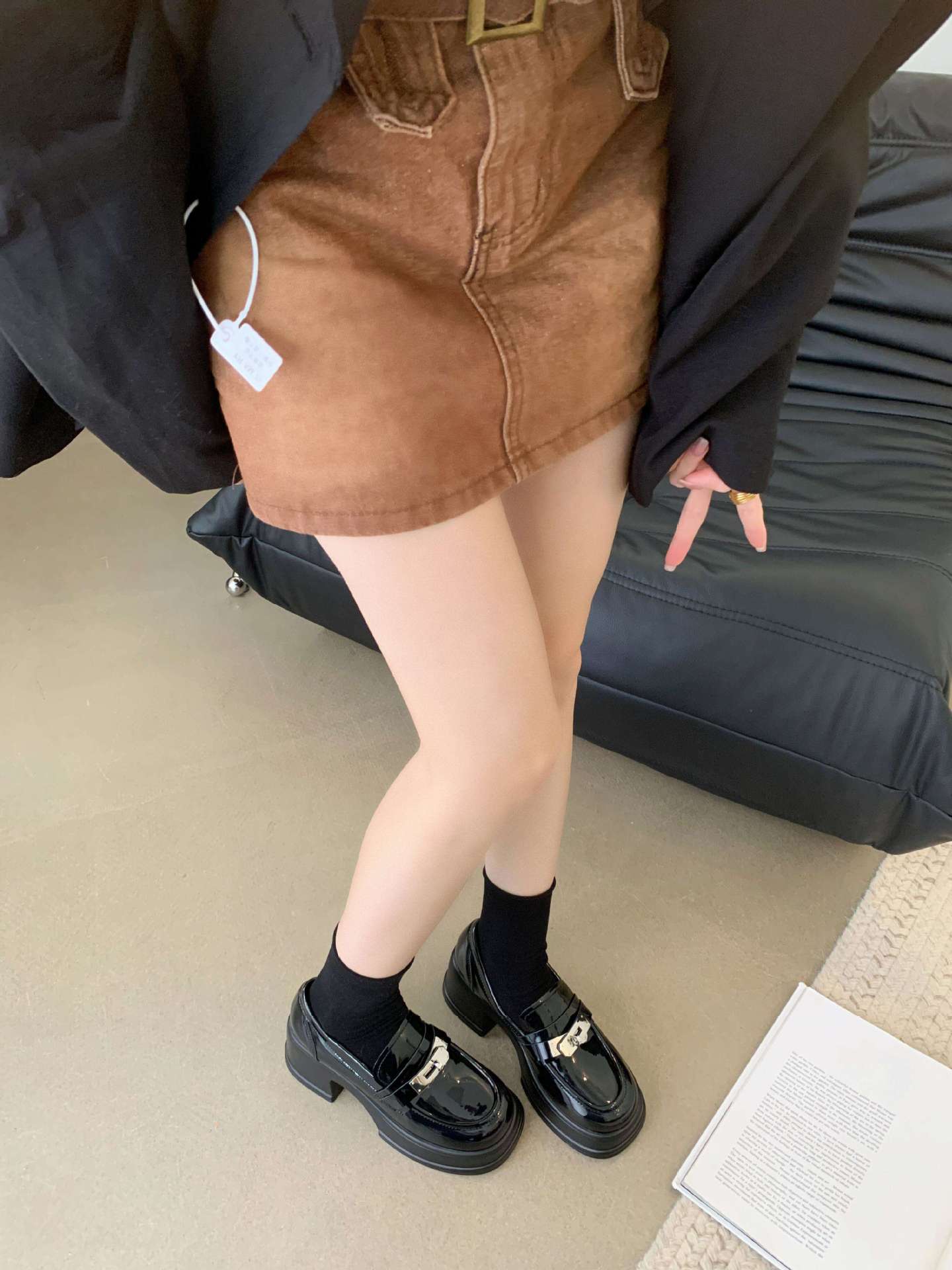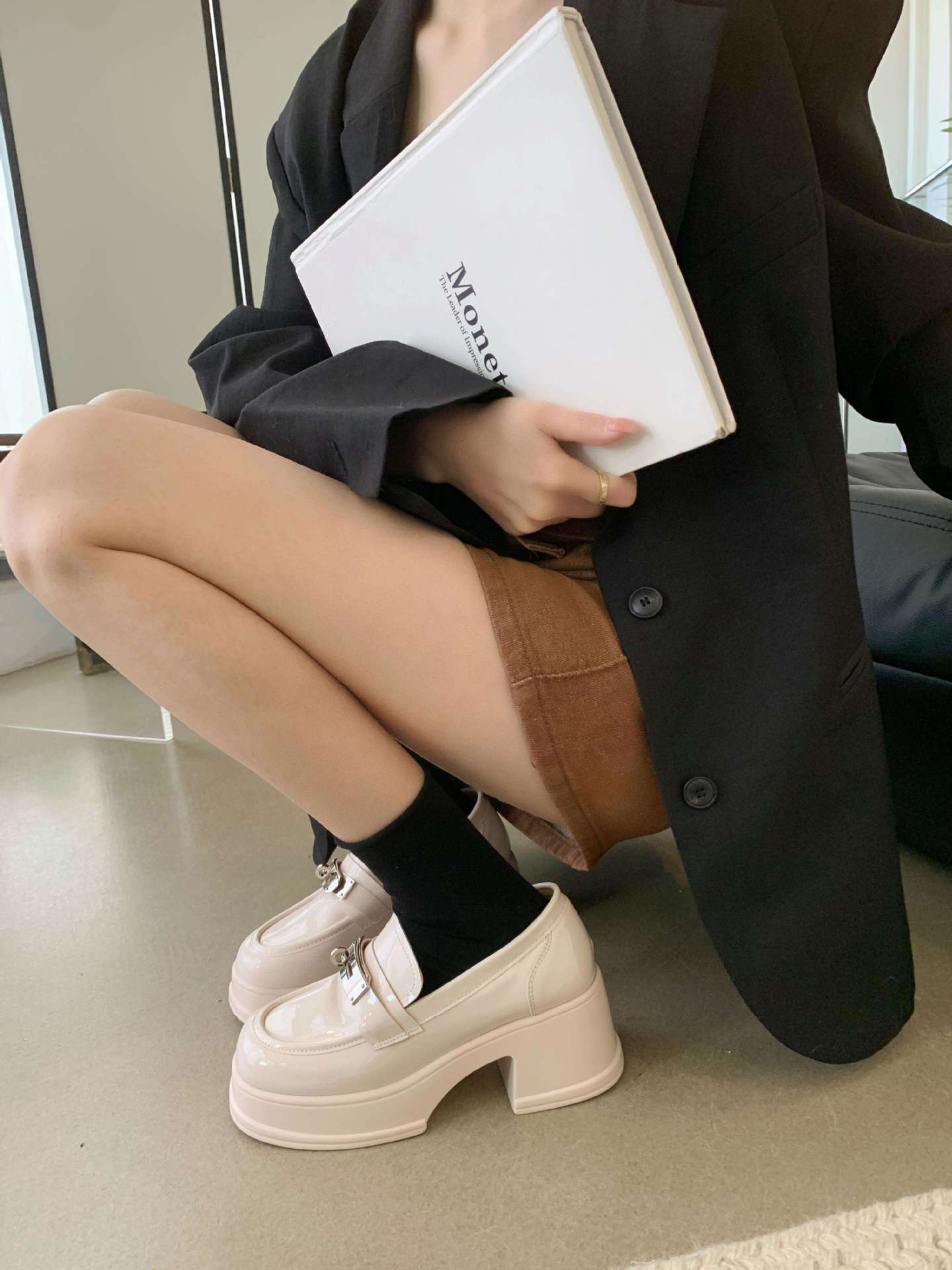 Chupin 머핀 로퍼 여성 2024 뉴 봄 영국 골드 버클 슬립 온 신발 블랙 두꺼운 밑창 가죽 신발
