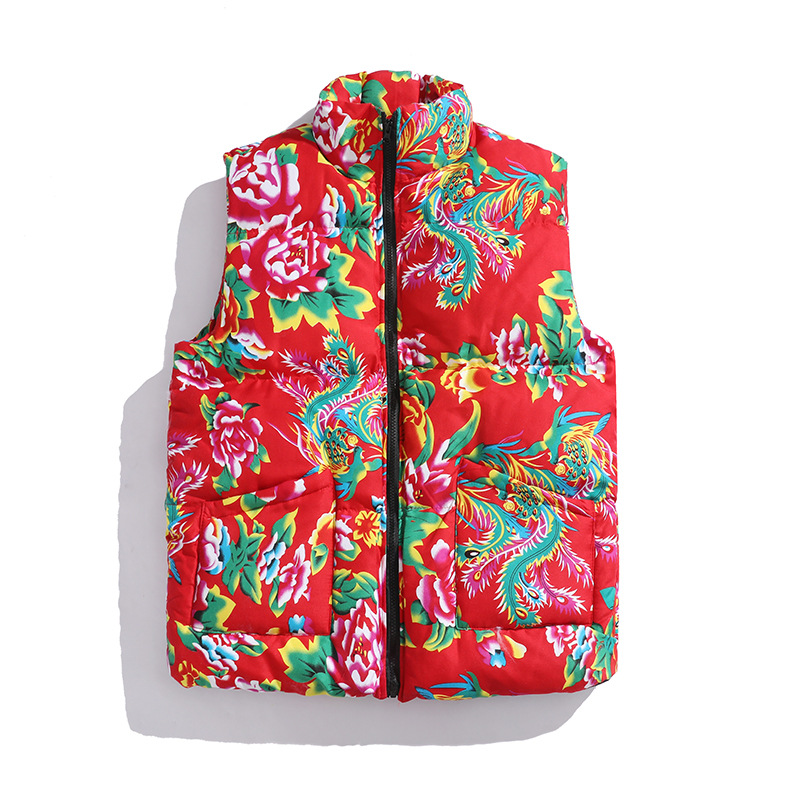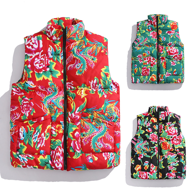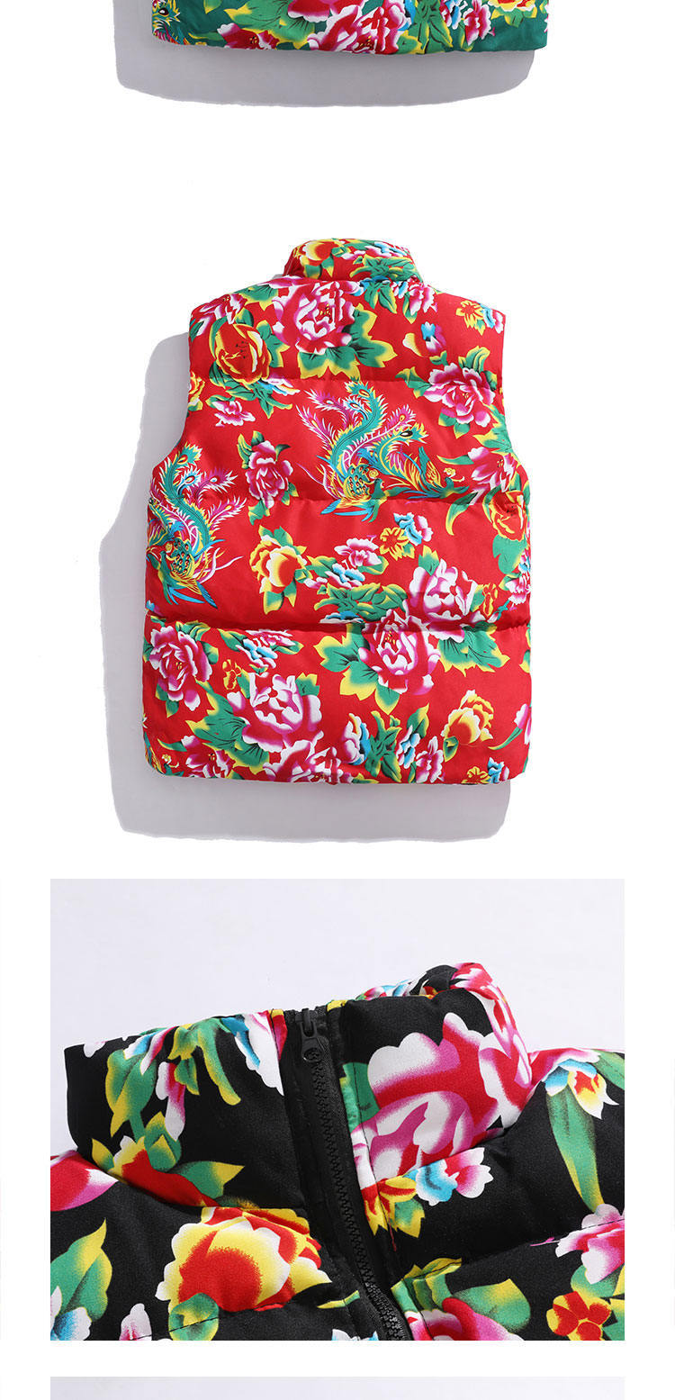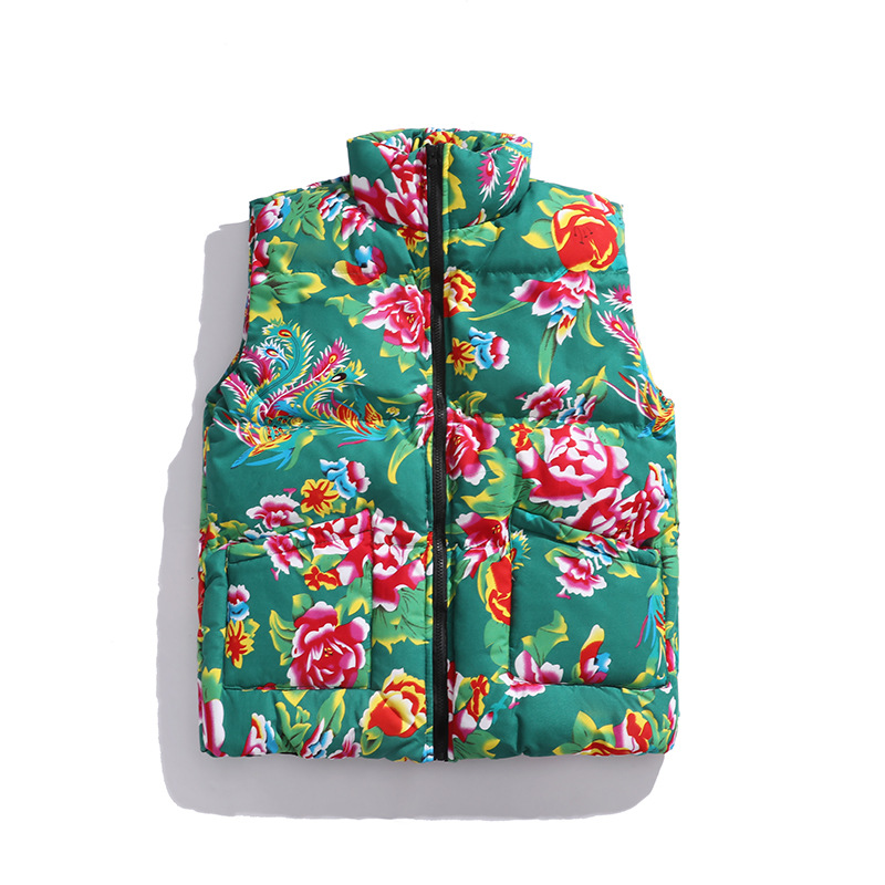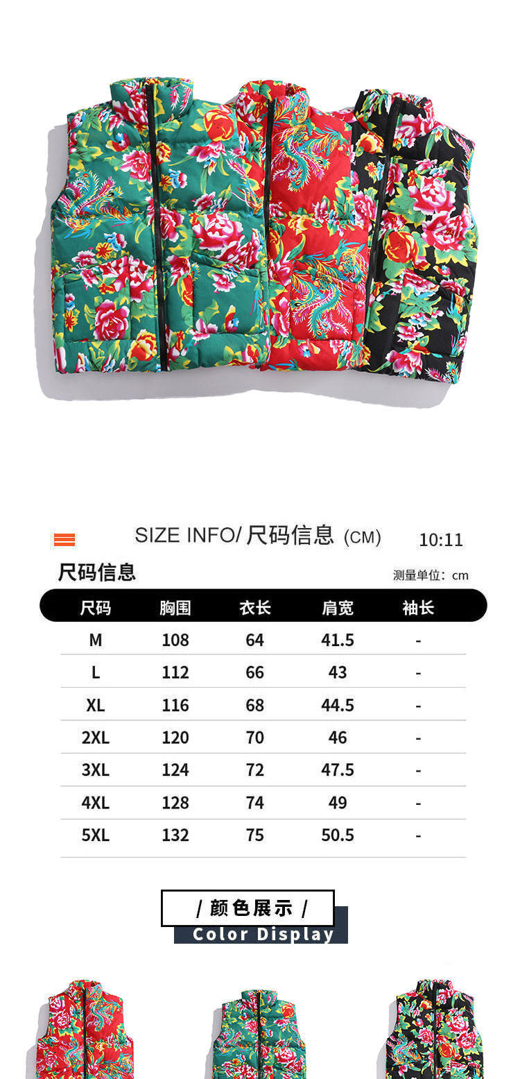 M3 중국 스타일 북동쪽 큰 꽃면 조끼 코트 플러스 사이즈 느슨한 겨울 한푸 코트 Waistcoat Vest 공연 의류