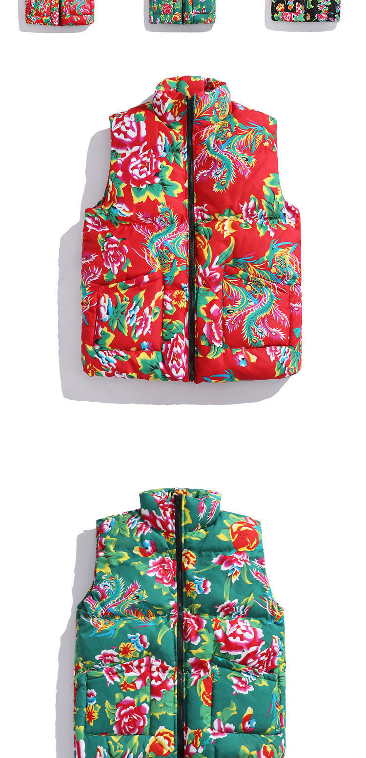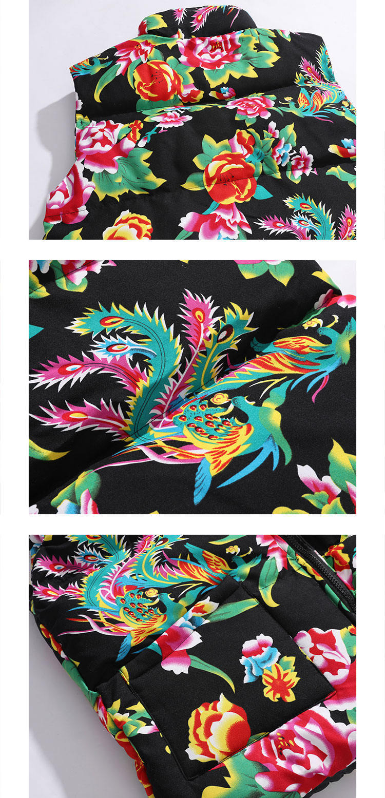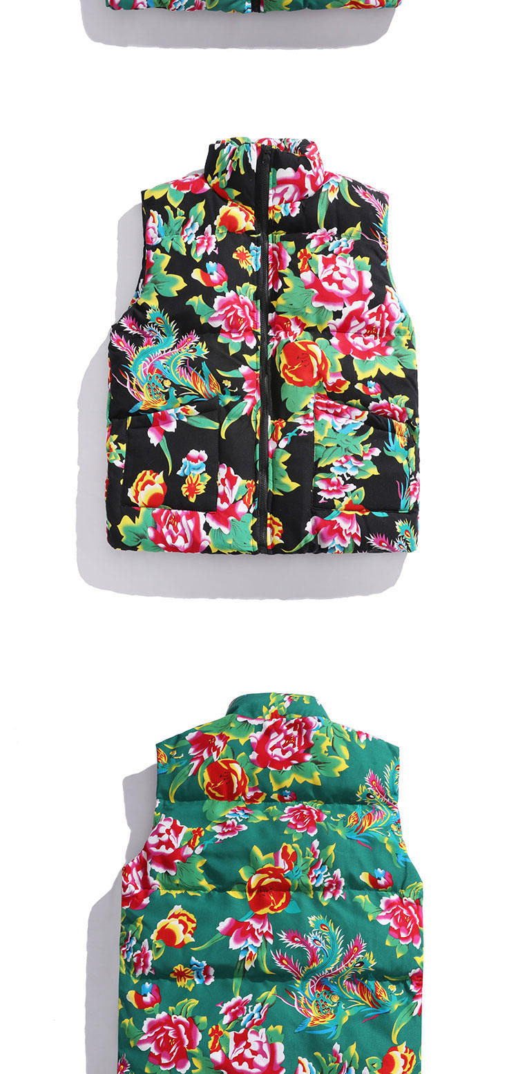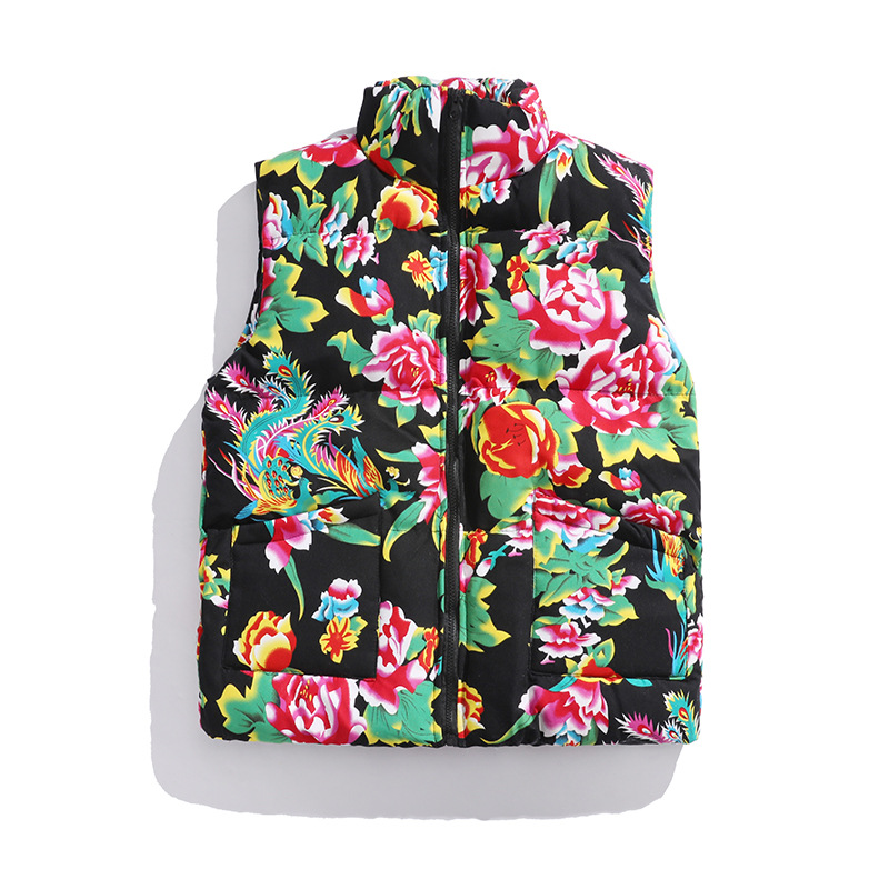 M3 중국 스타일 북동쪽 큰 꽃면 조끼 코트 플러스 사이즈 느슨한 겨울 한푸 코트 Waistcoat Vest 공연 의류