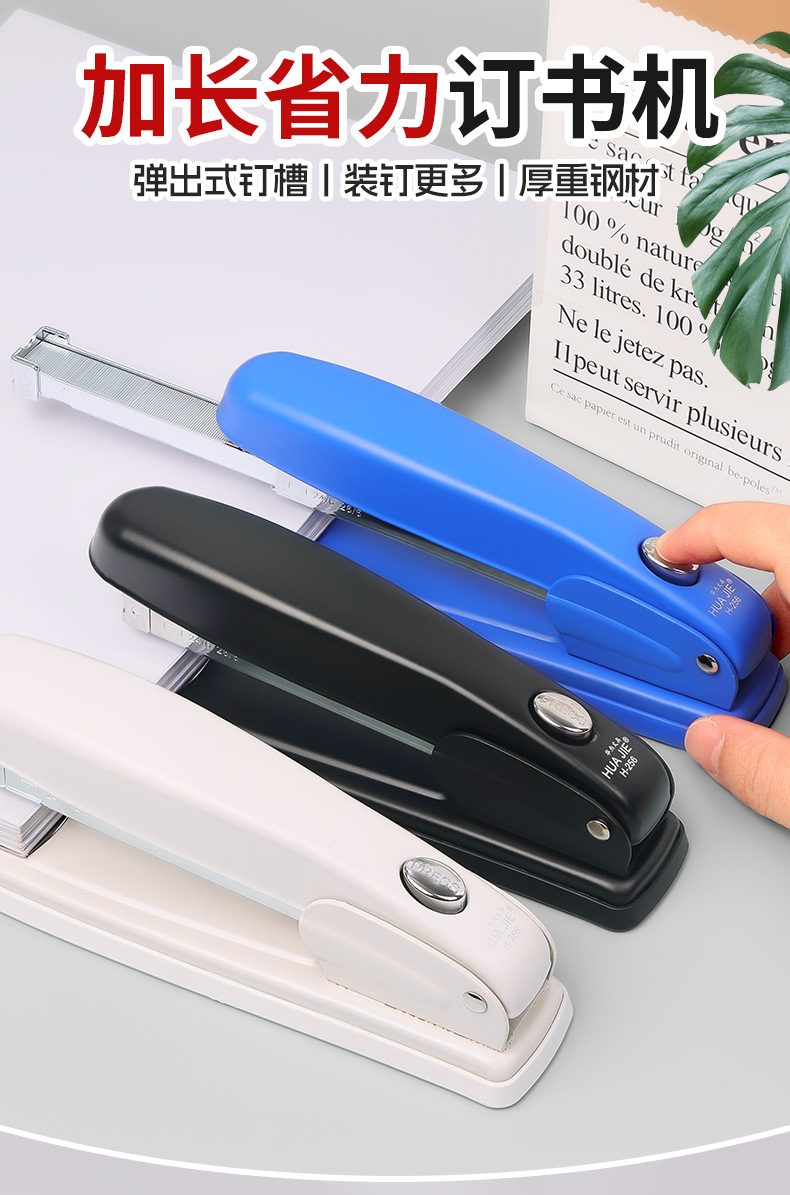 Huajie 공장 도매 금속 노동 절약 스테이플러 팝업 네일 슬롯 스테이플러 확장 도서 기계 사무 용품