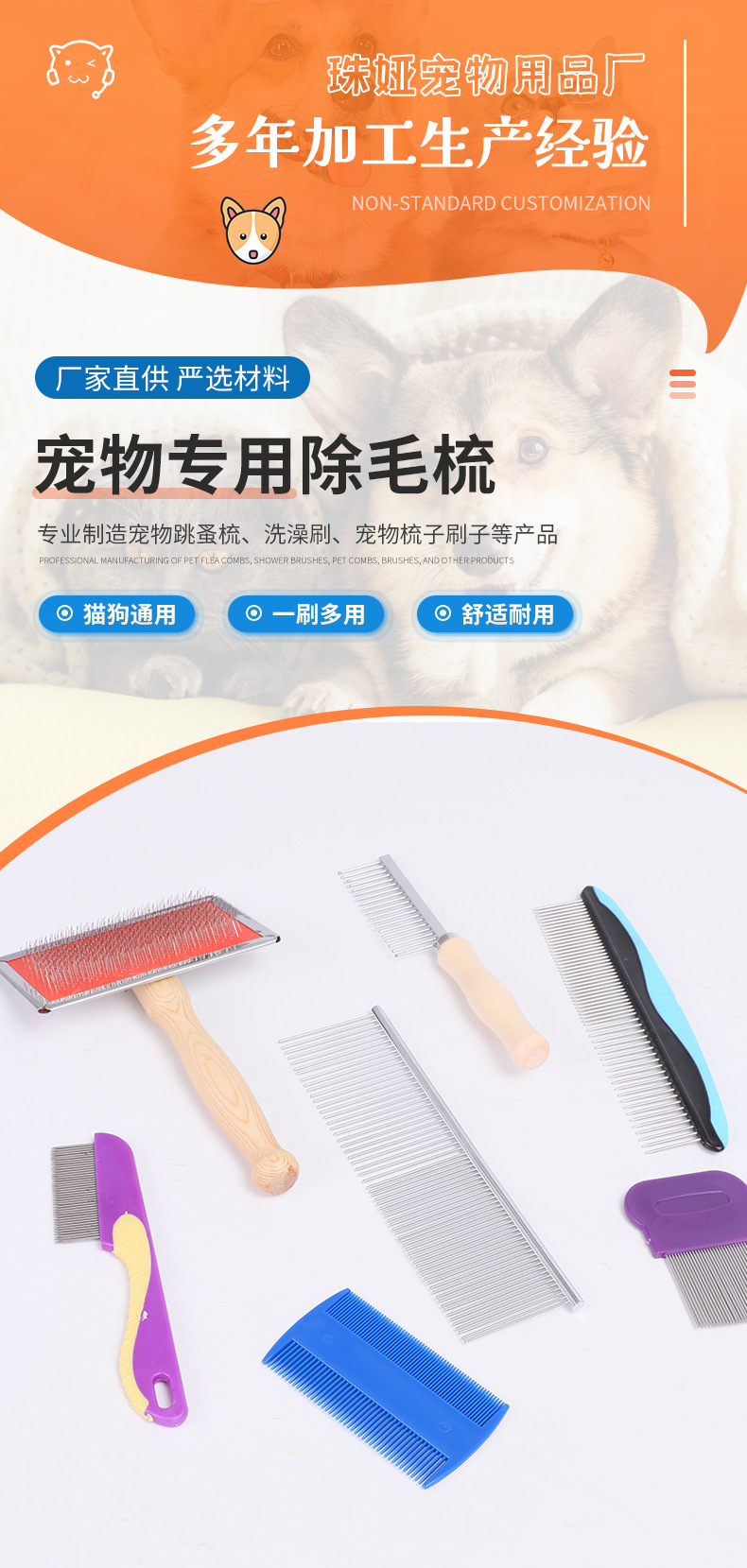 애완 동물 제품 제조 업체 벼룩 빗 세트 스테인레스 스틸 이가 빗 조밀 한 이빨 빗 개 고양이 청소 아름다움 머리 빗