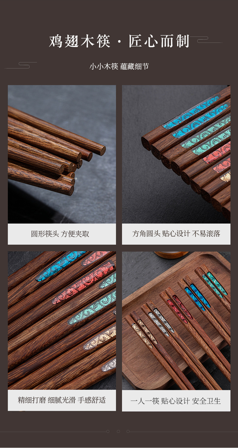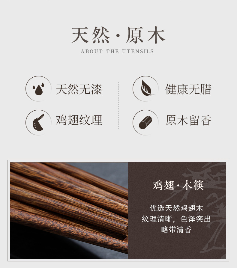 레트로 스타일 치킨윙우드 젓가락, 1인당 1개씩, 원목젓가락 도매, 건강한 가정용 나무젓가락, 싱글/더블 젓가락 선물세트, 식기류