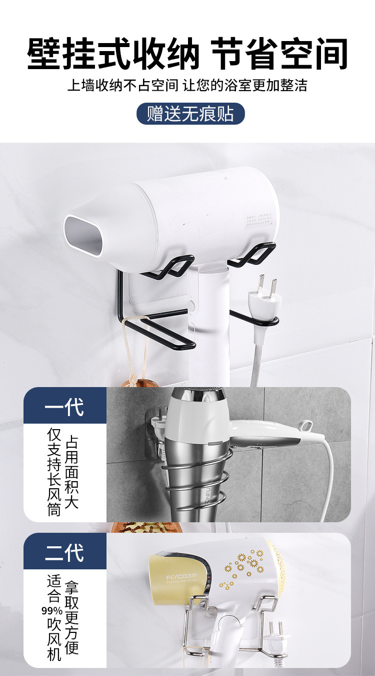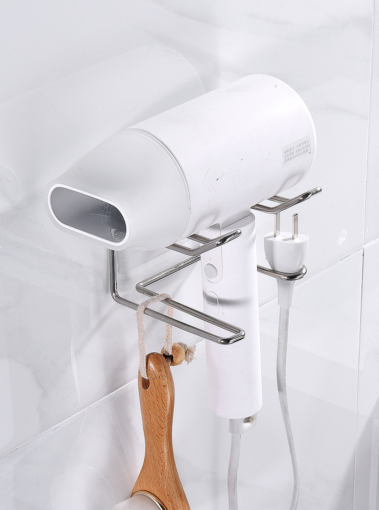 벽걸이 스테인레스 스틸 헤어 드라이어 랙 욕실 다기능 교수형 플러그 헤어 드라이어 헤어 드라이어 랙 스토리지 랙