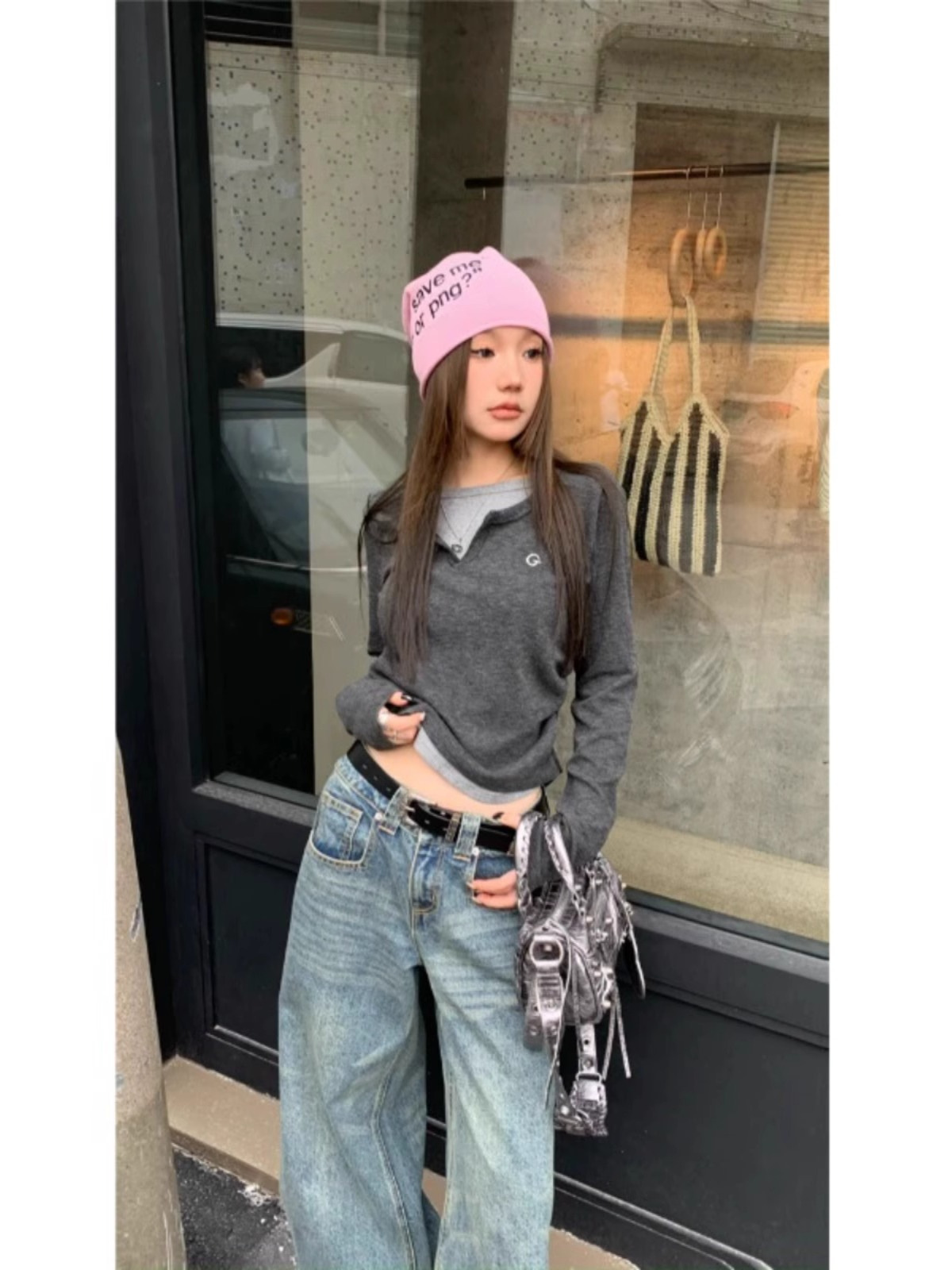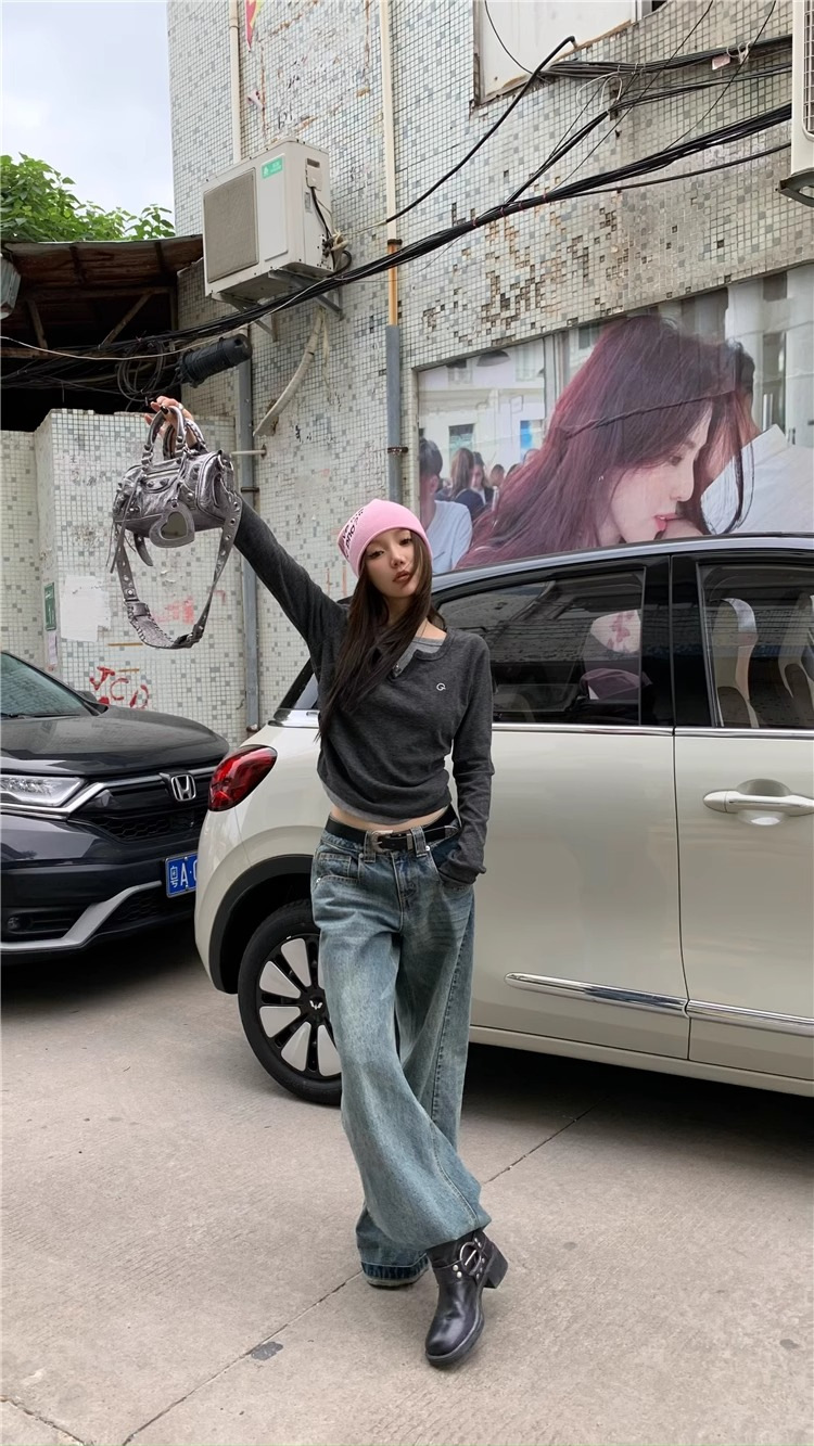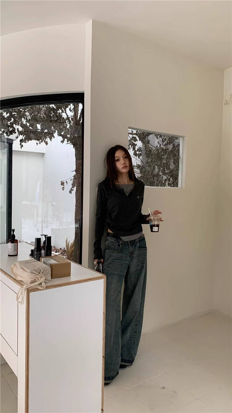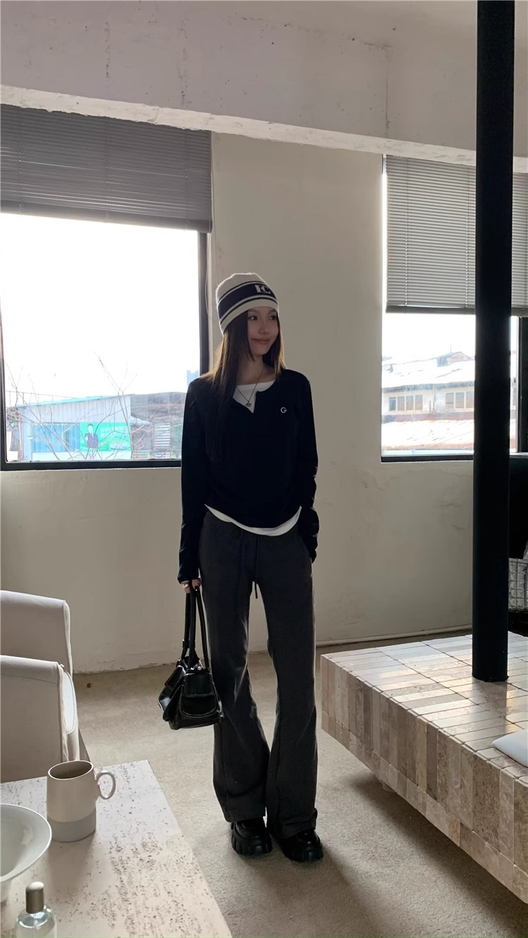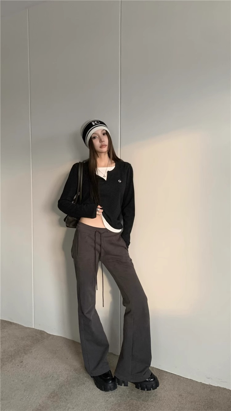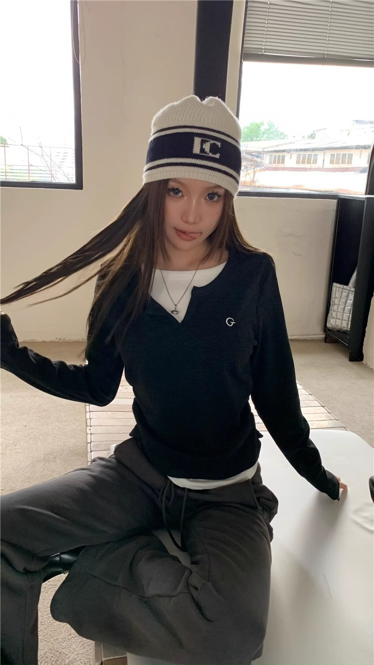 여성 티셔츠 가짜 투피스 긴팔 티셔츠 가을과 겨울 내복 슬림 슬리밍 최상 미국 복고풍 바지 셔츠