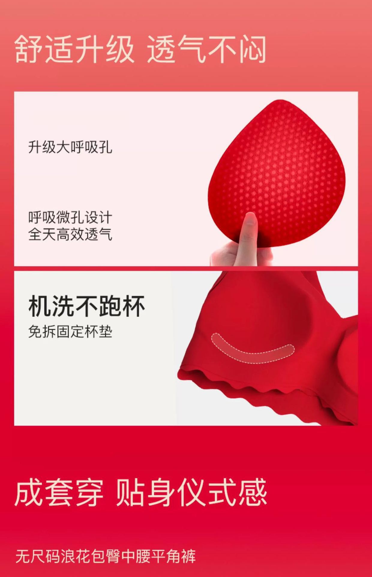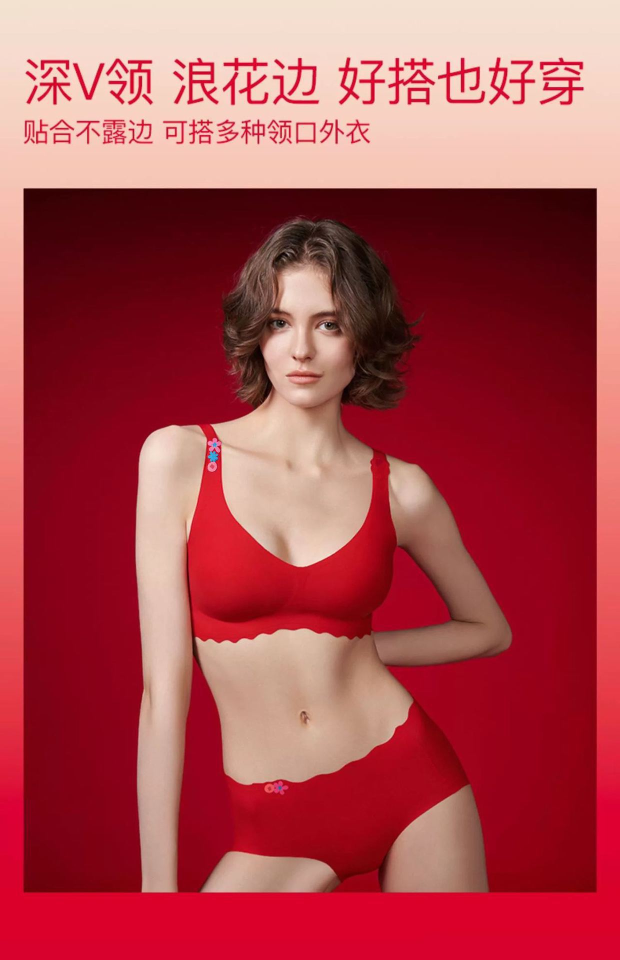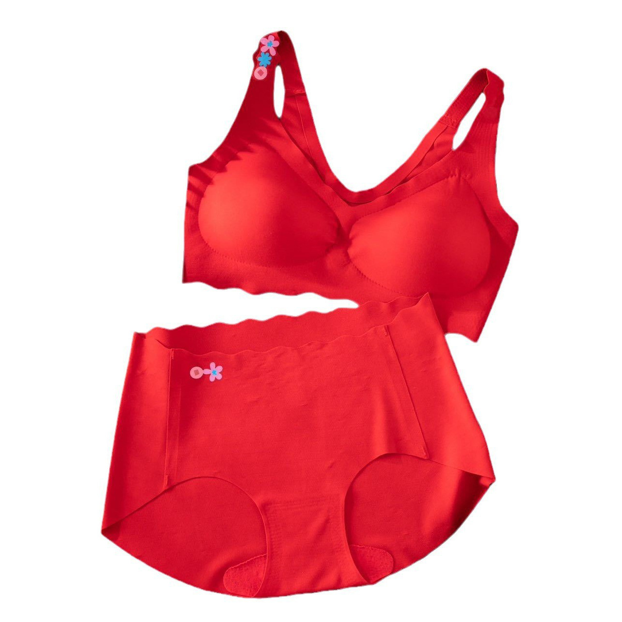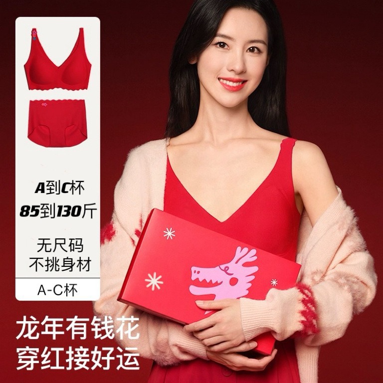 출생 년 큰 빨간 브래지어 세트 피부 친화적 인 원활한 무선 결혼식 새해 구름 감각 속옷 속옷 박스 여성