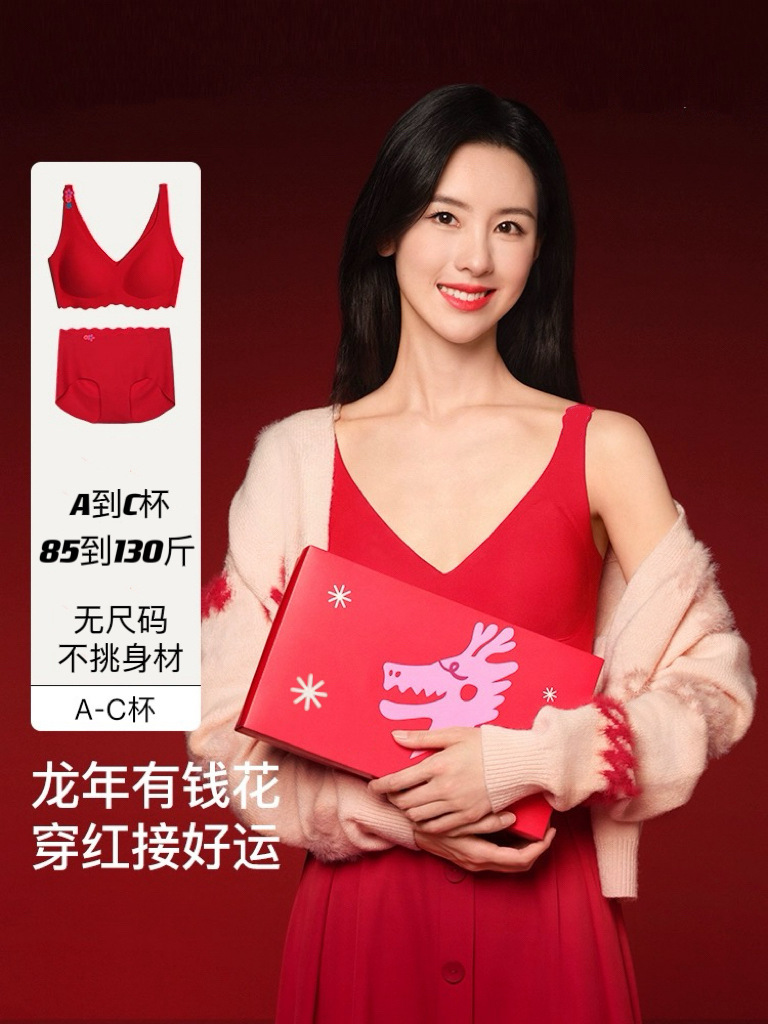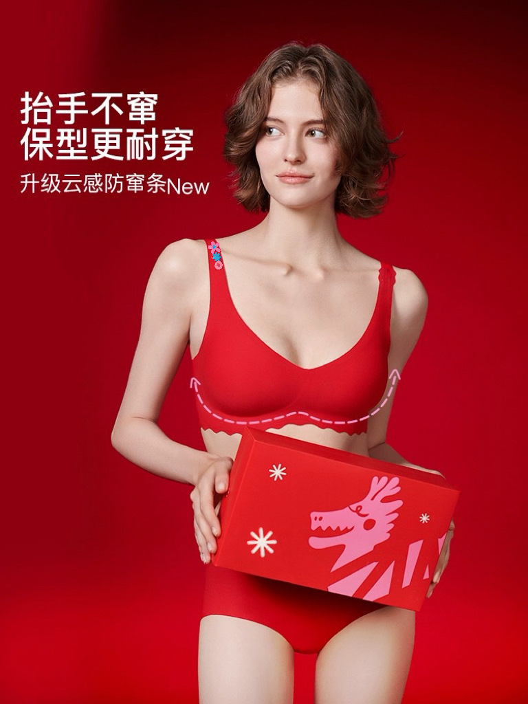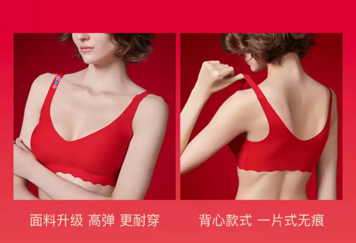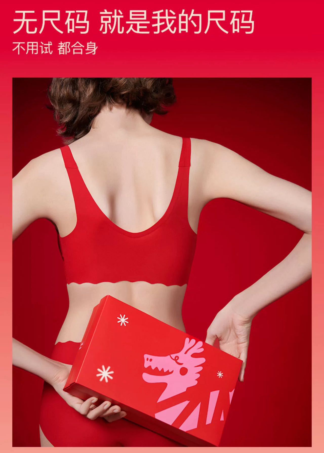 출생 년 큰 빨간 브래지어 세트 피부 친화적 인 원활한 무선 결혼식 새해 구름 감각 속옷 속옷 박스 여성