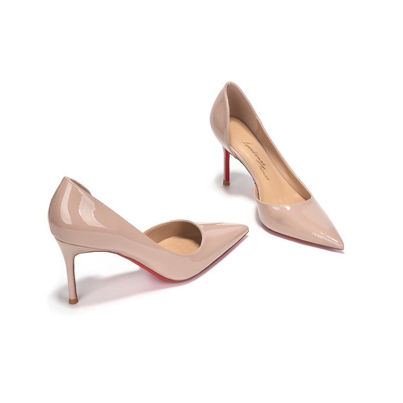 측면이 빈 페이턴트 가죽 빨간색 바닥 뾰족한 강철 와인 잔 굽이 떨어지지 않는 극세사 하이힐, 유럽과 미국의 여성을 위한 다용도 스타일