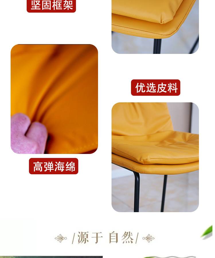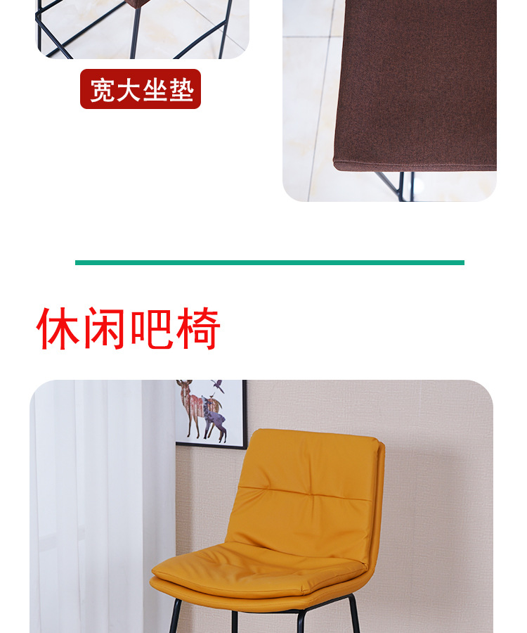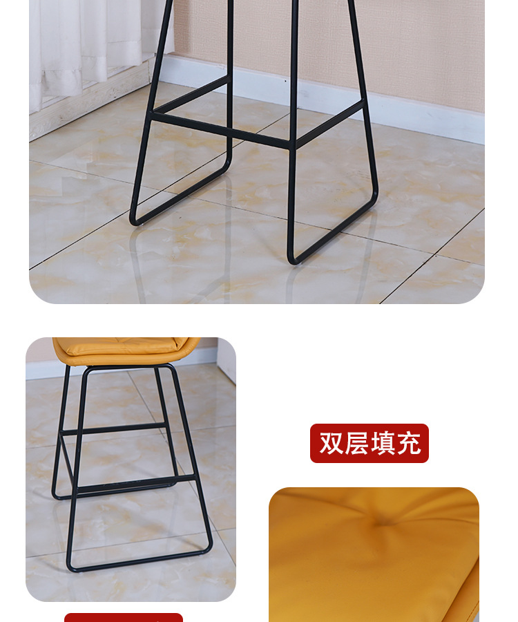 노란색 캐주얼 바 의자-PU 표면-75CM