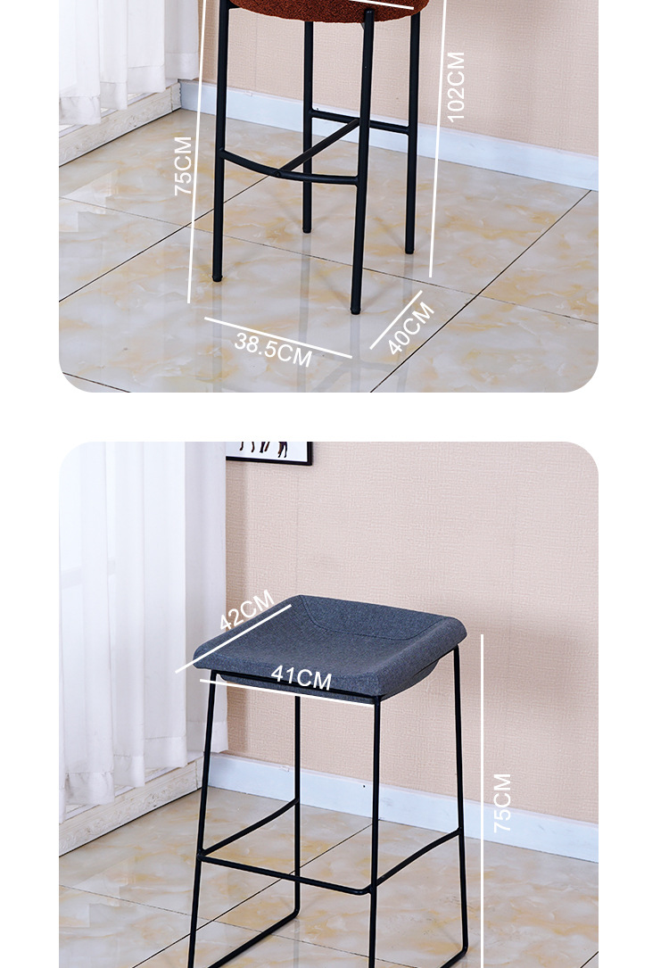오렌지 스틸 바 의자-린넨 표면-75CM