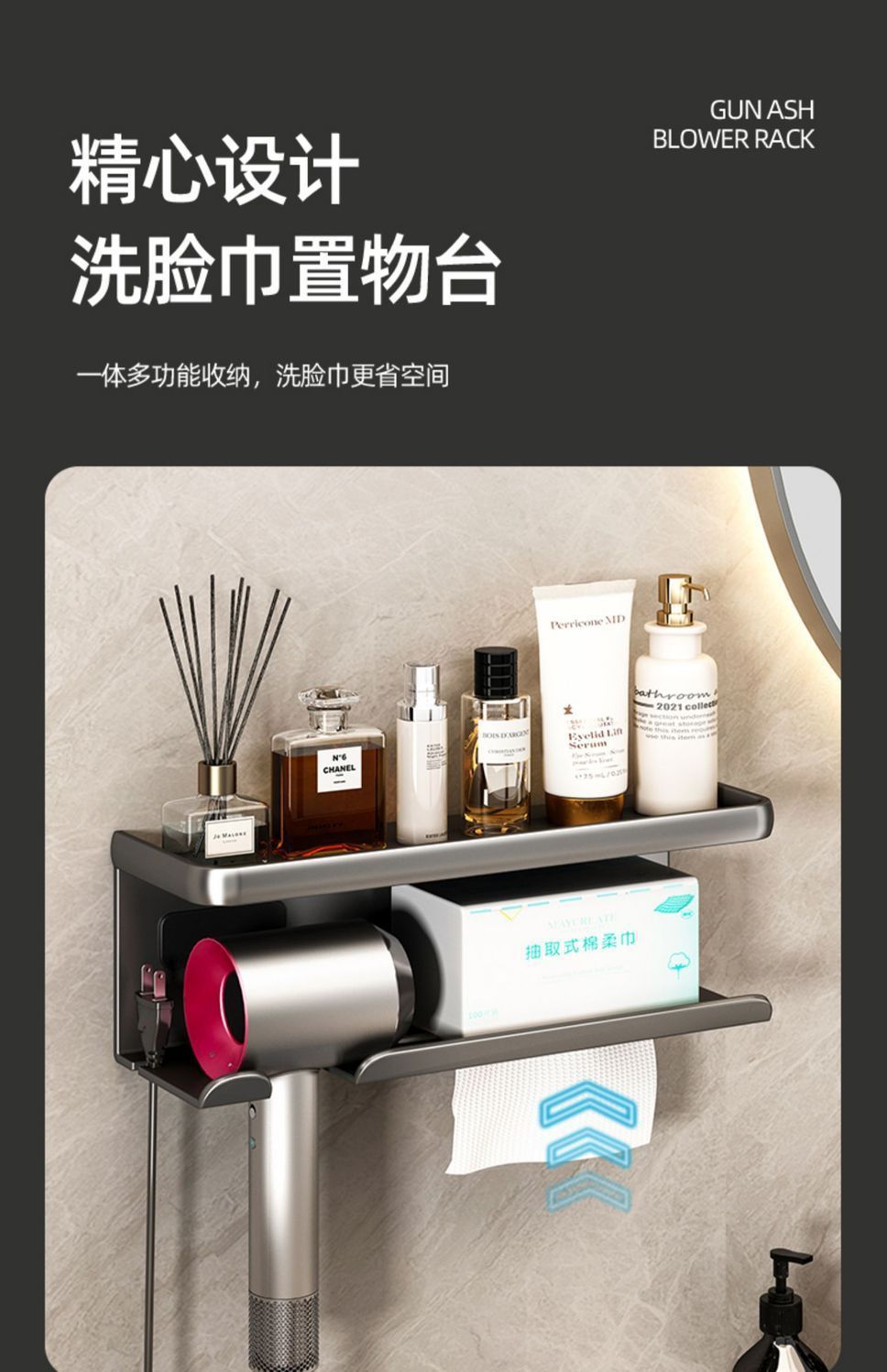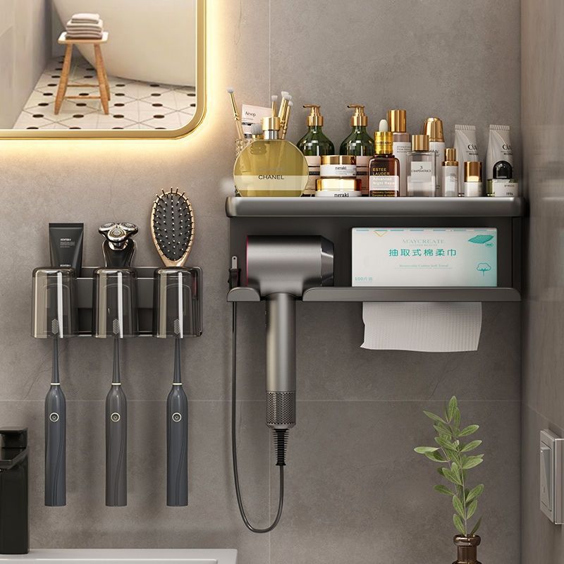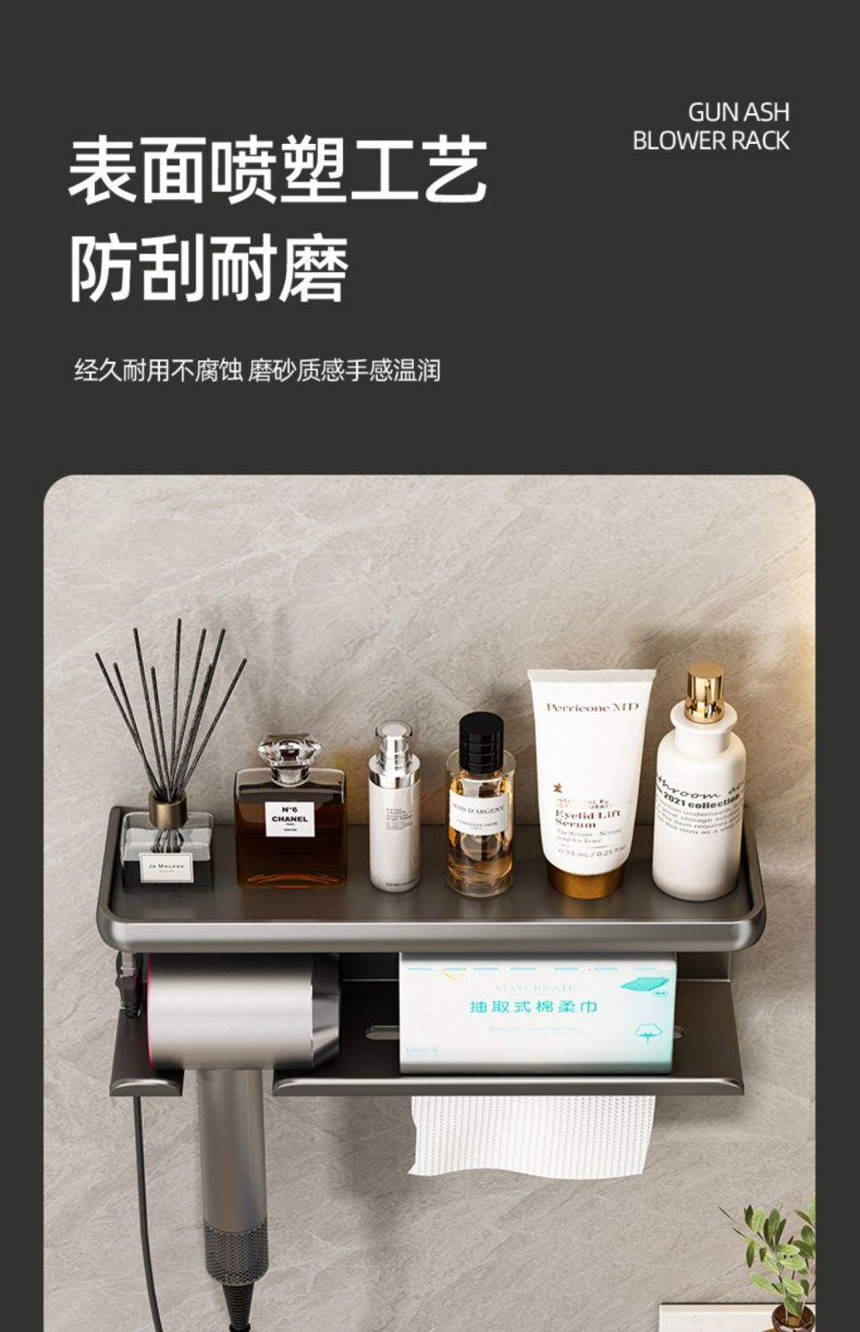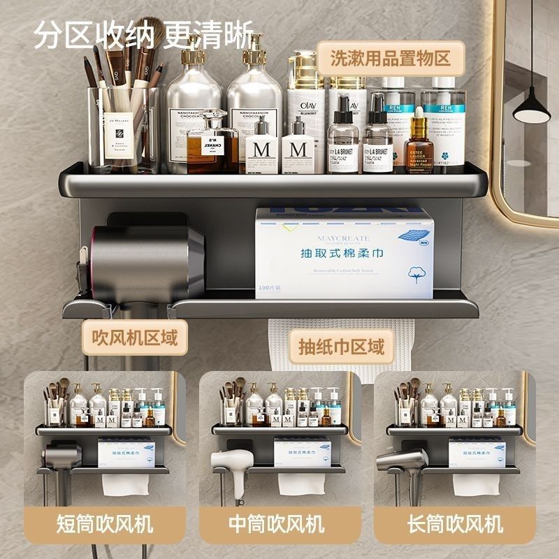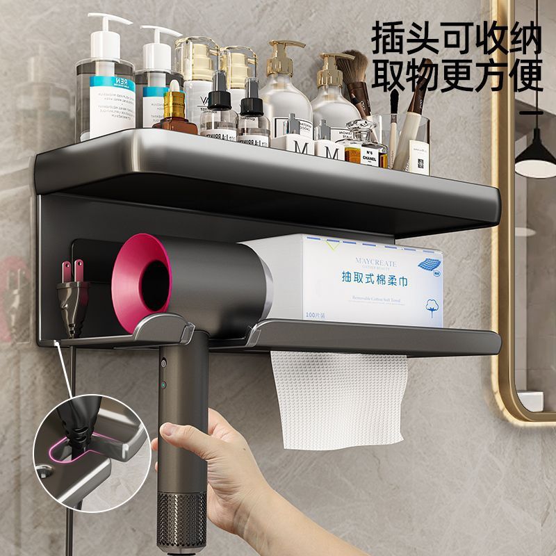 욕실 화장품 랙 헤어 드라이어 브래킷 욕실 총 애쉬 벽걸이 조직 보관 선반 헤어 드라이어