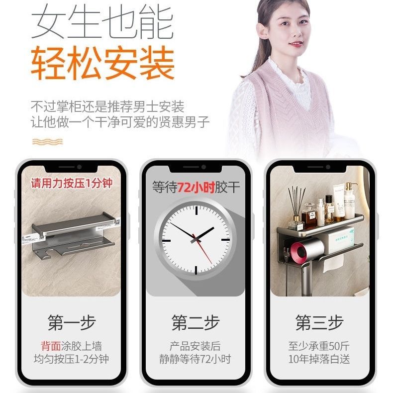 더블 레이어 짧은 헤어드라이어 랙 건 그레이_나사 가방과 못이 없는 접착제를 무료로 주문하세요