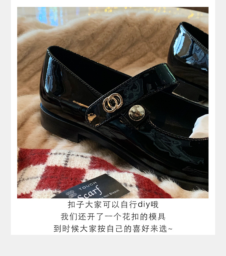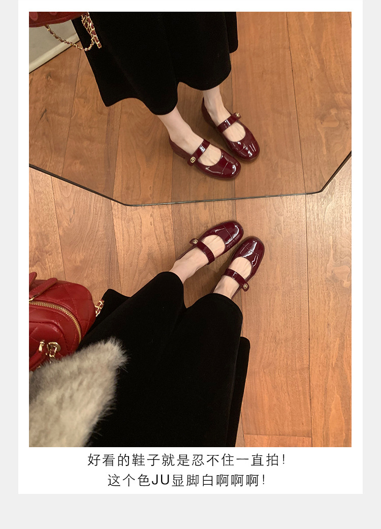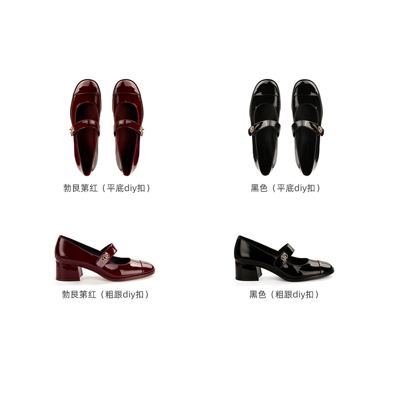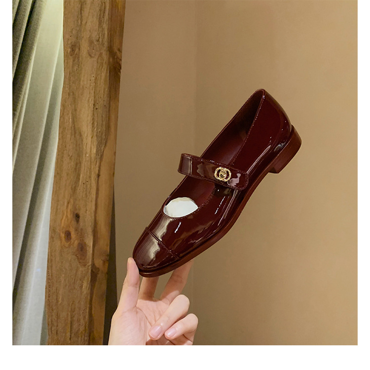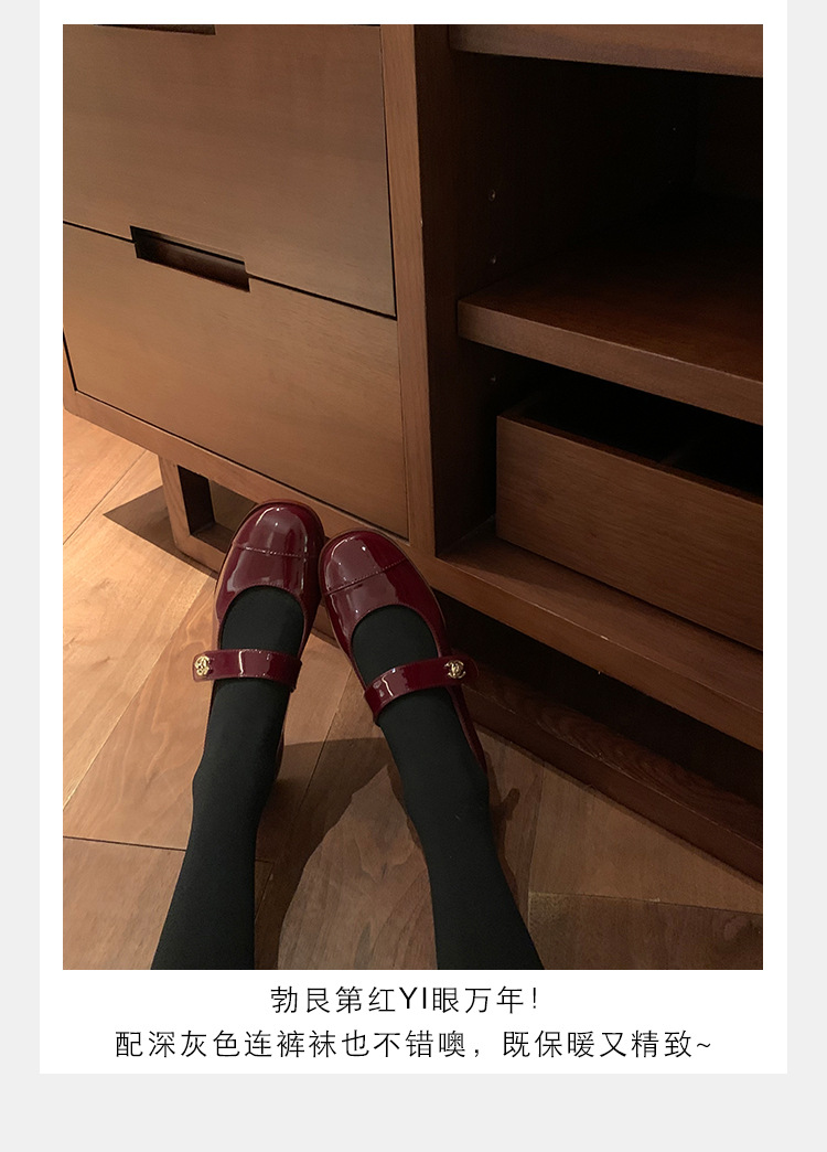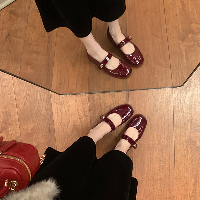 포도 엄마 봄 새로운 둥근 머리 금속 버클 두꺼운 발 뒤꿈치 메리 제인 신발 빨간색 작은 가죽 신발 여성용