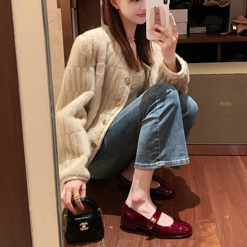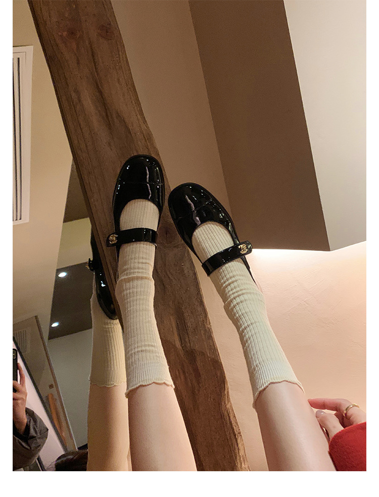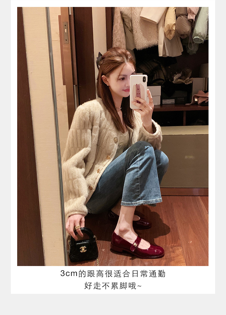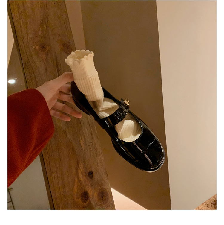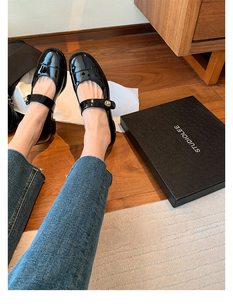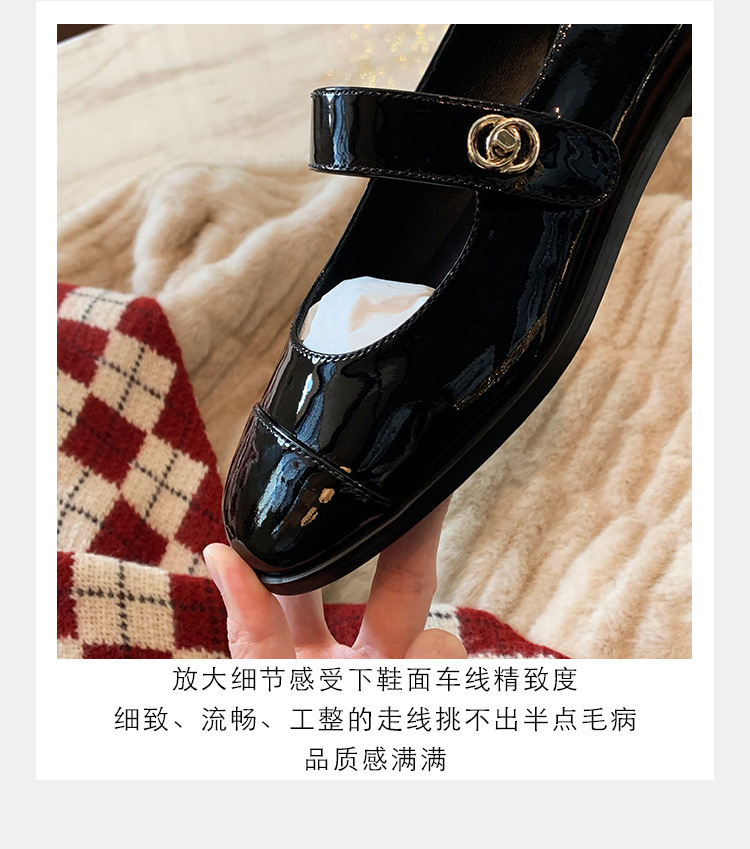 포도 엄마 봄 새로운 둥근 머리 금속 버클 두꺼운 발 뒤꿈치 메리 제인 신발 빨간색 작은 가죽 신발 여성용
