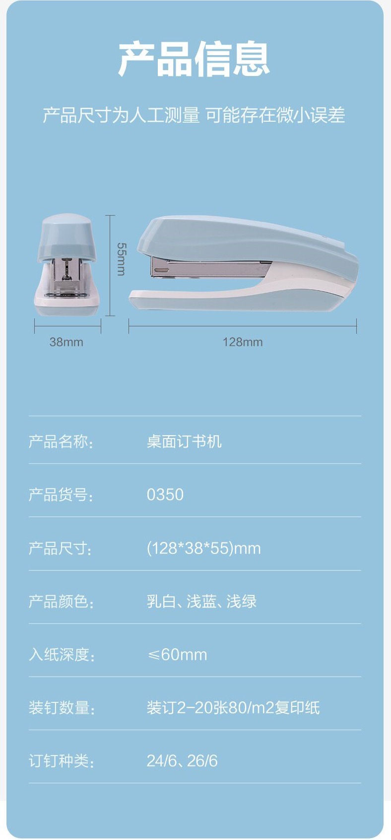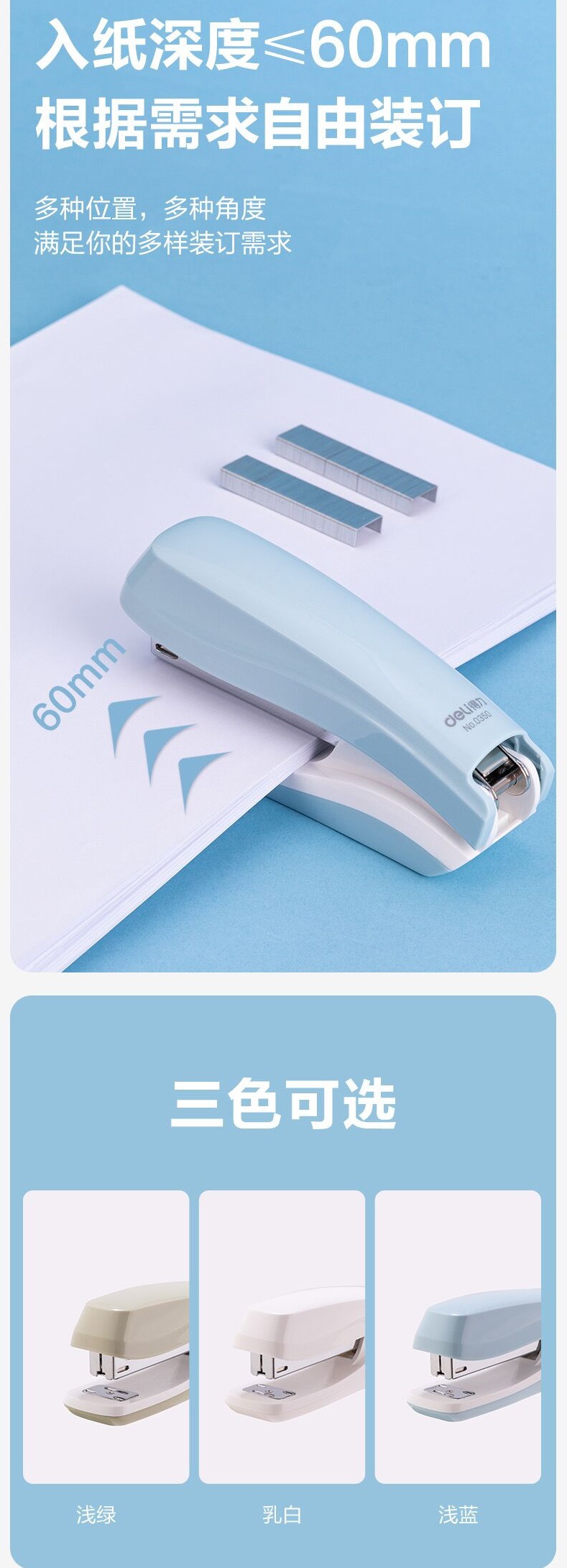 델리 0350 스테이플러 Morandi 컬러 스몰 사이즈 휴대용 스테이플러 사무실 학습 다기능 회전 문구