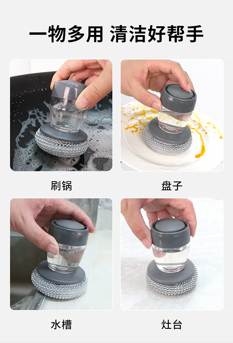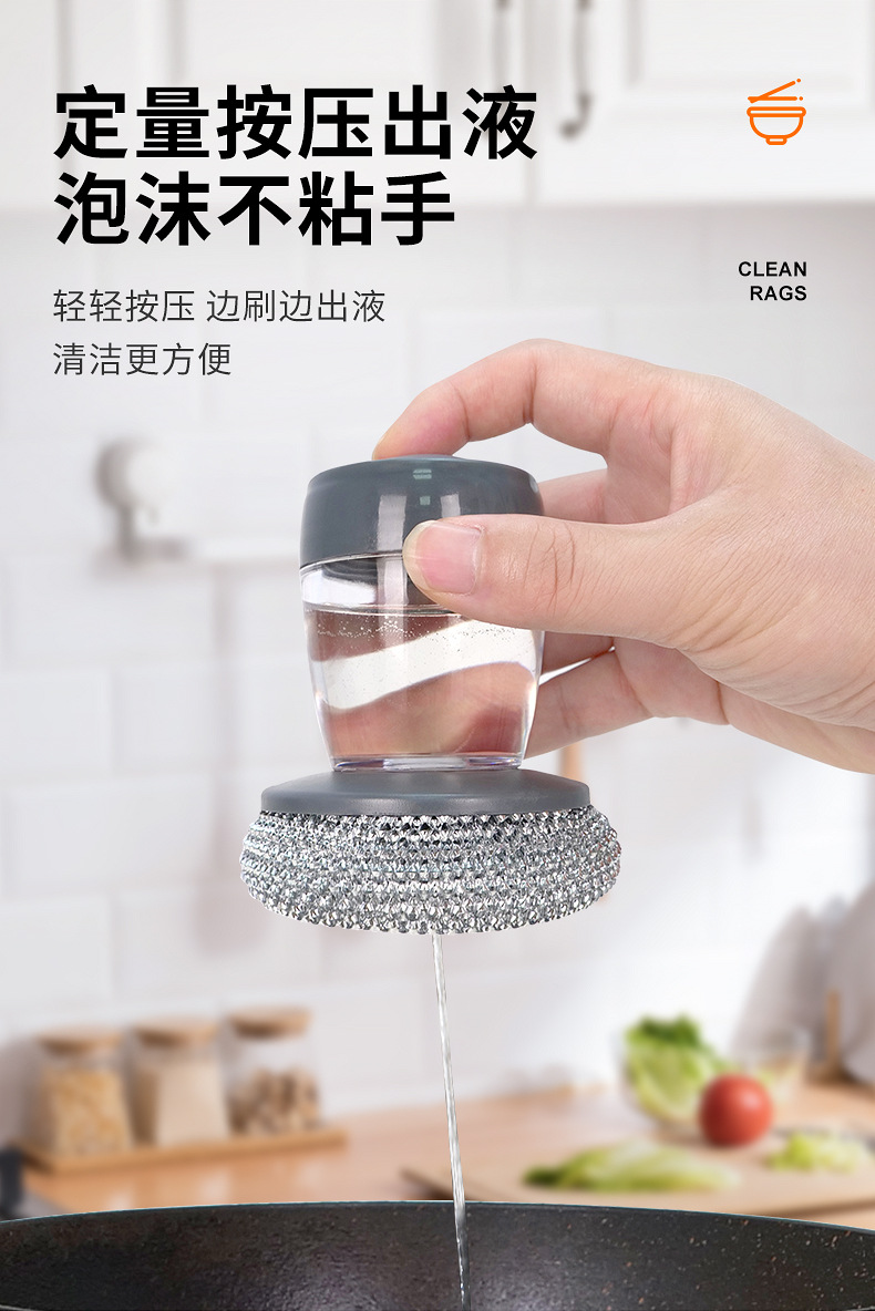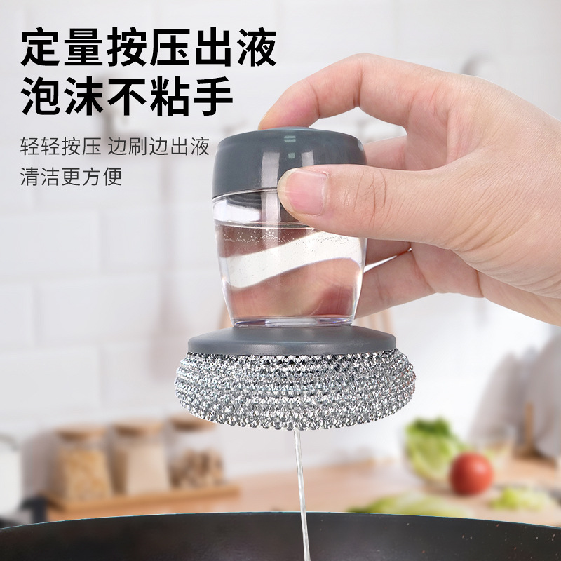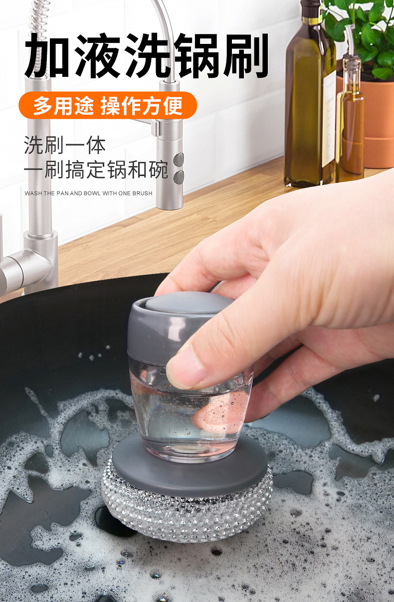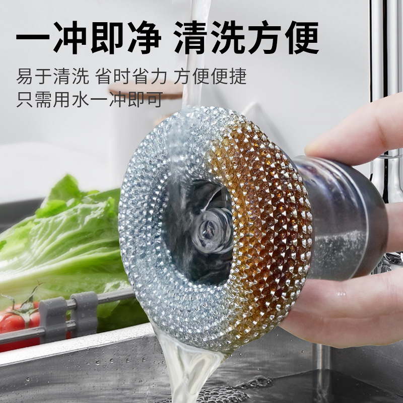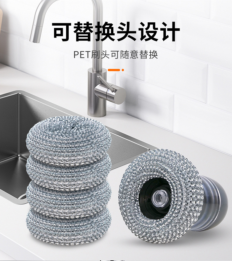 세척 냄비 유물 자동 액체 세척 브러시 주방 가정용 냄비 브러시 스폰지 브러시 스틸 볼 긴 핸들 청소 브러시