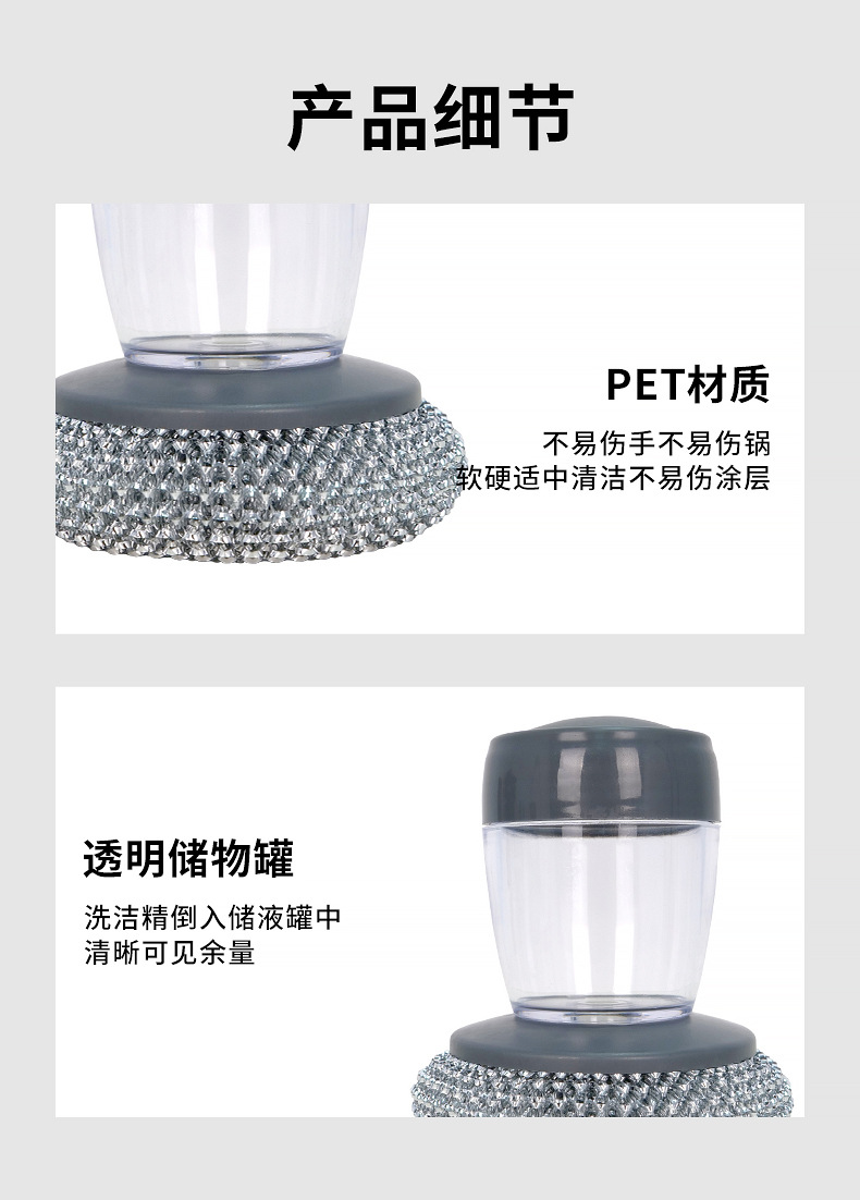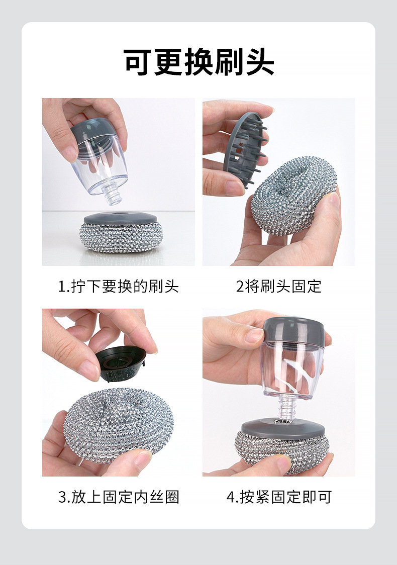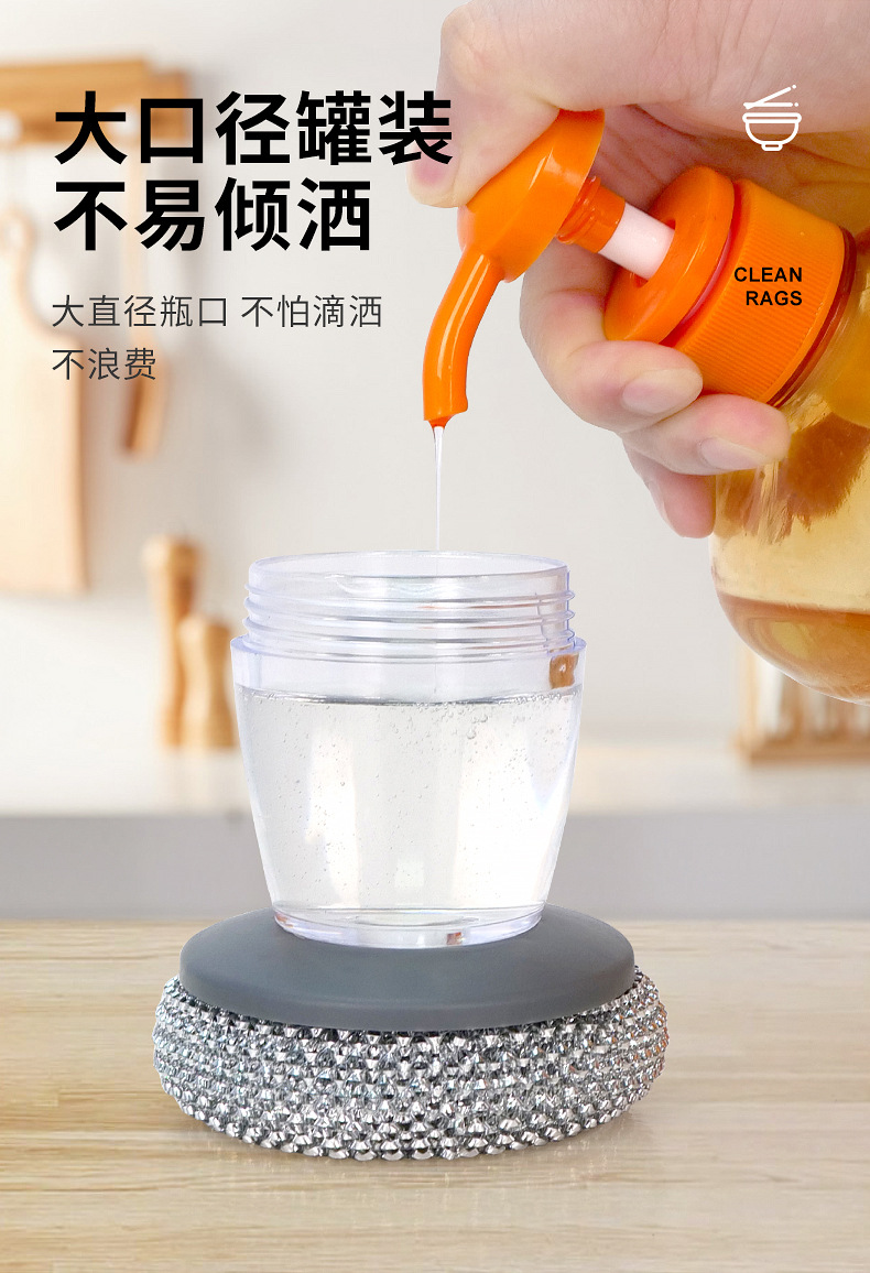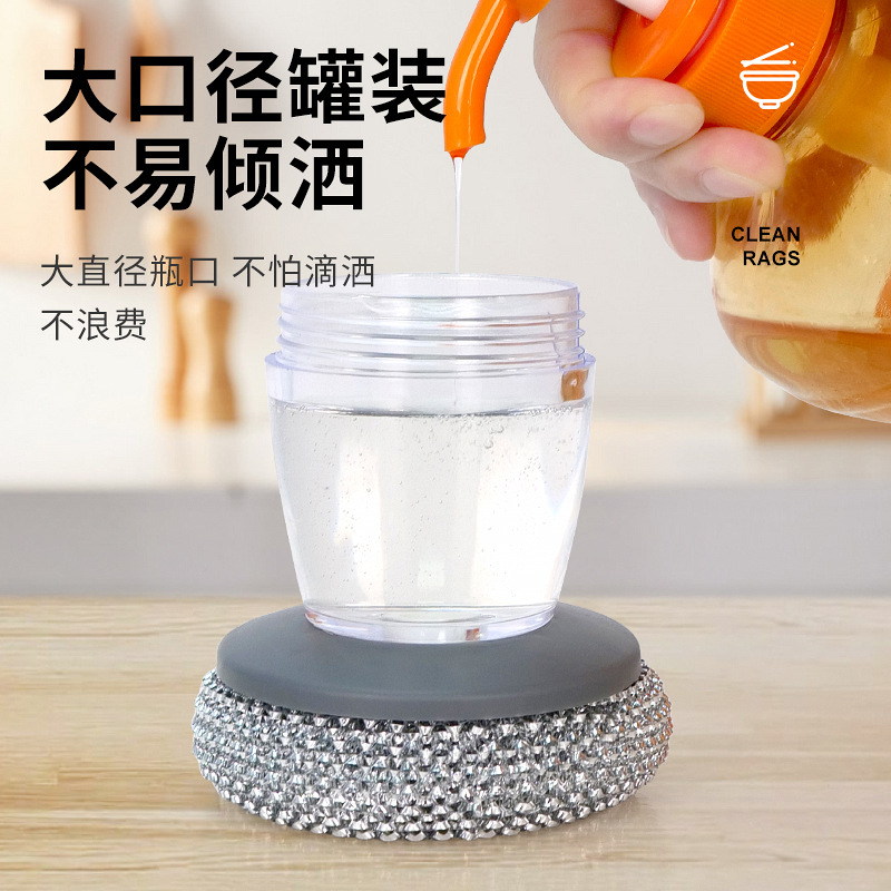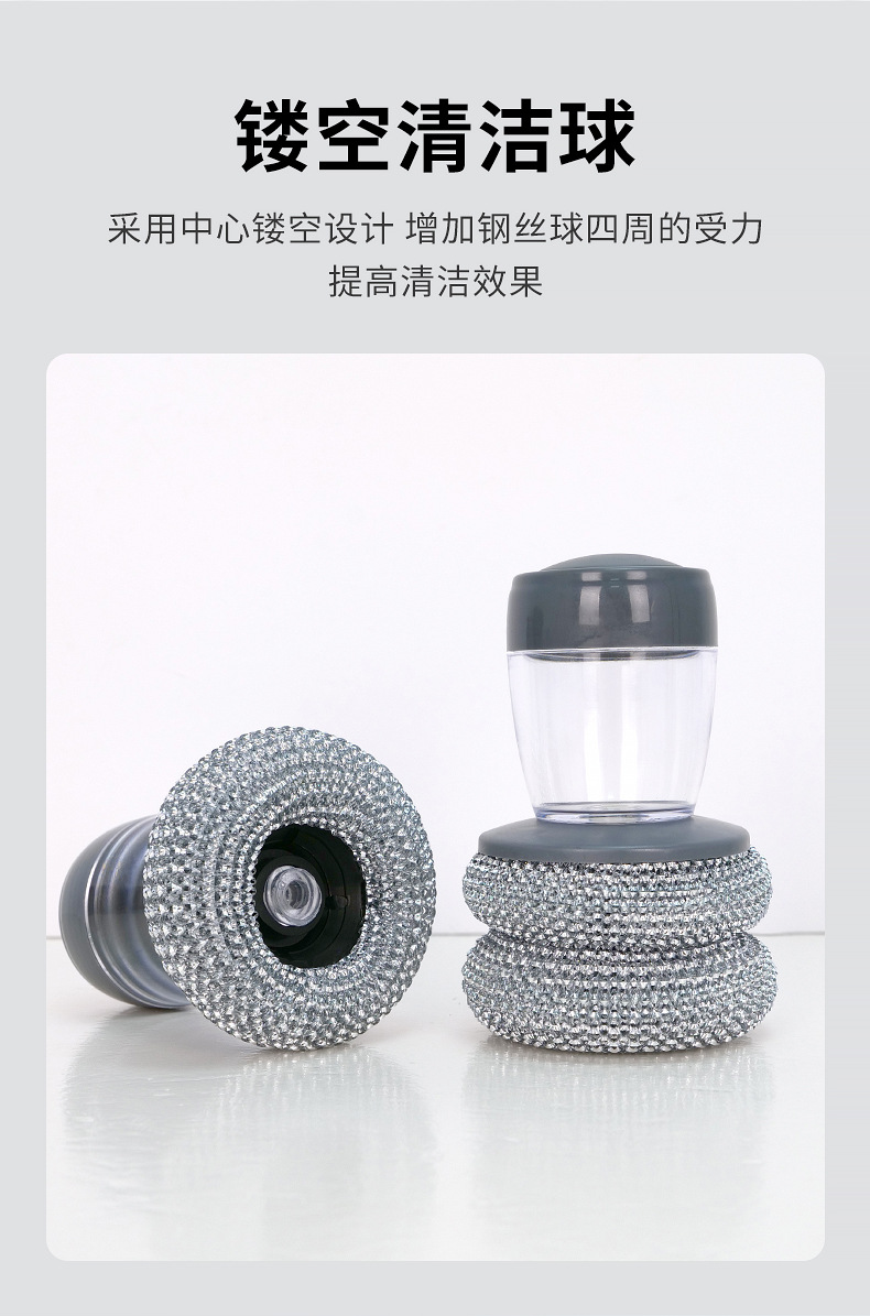 세척 냄비 유물 자동 액체 세척 브러시 주방 가정용 냄비 브러시 스폰지 브러시 스틸 볼 긴 핸들 청소 브러시