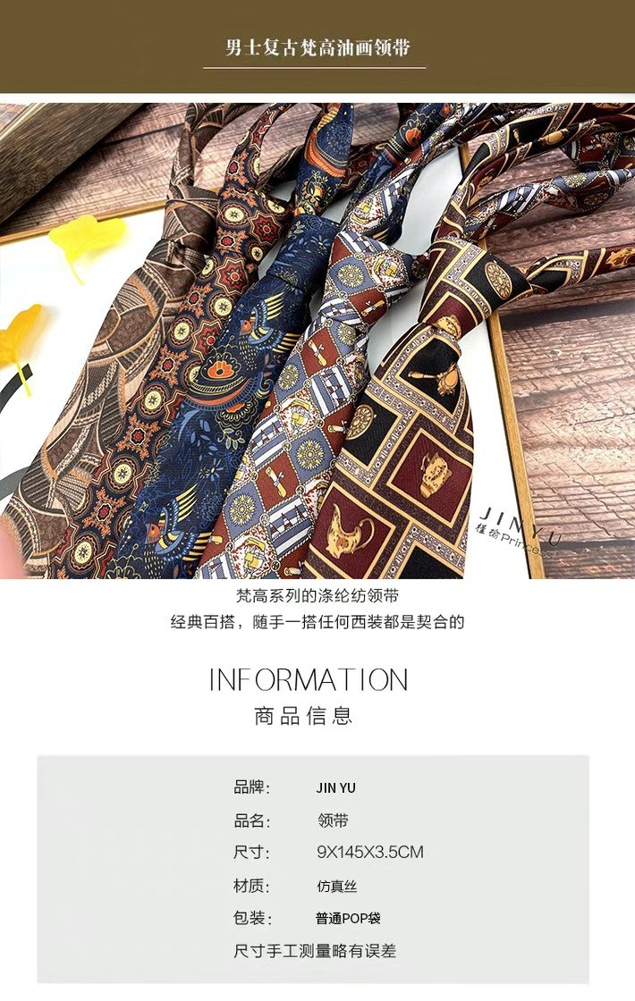 반 고흐의 그림 복고풍 캐주얼 유화 넥타이 남자의 고대 9CM 넓은 미국 인쇄 유피 스타일 공식 착용 액세서리