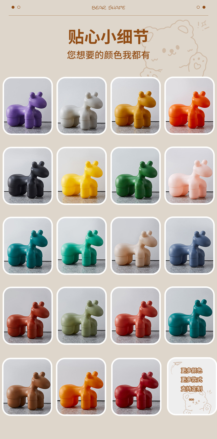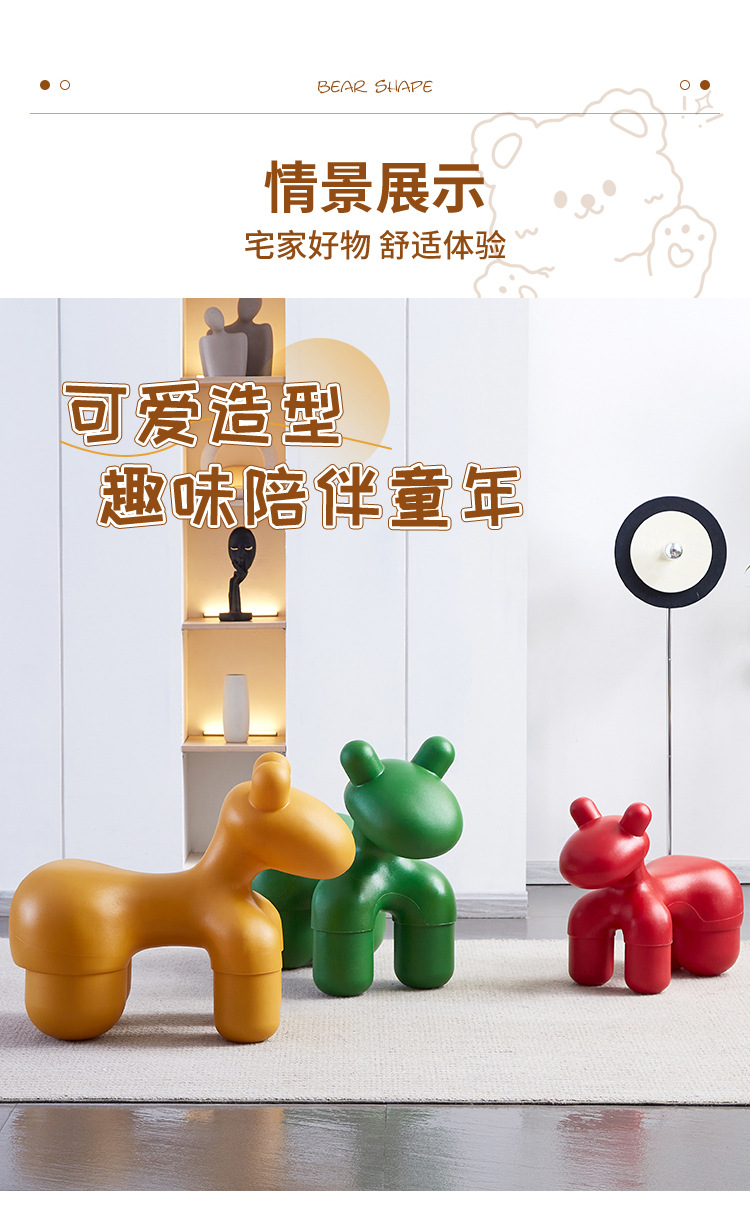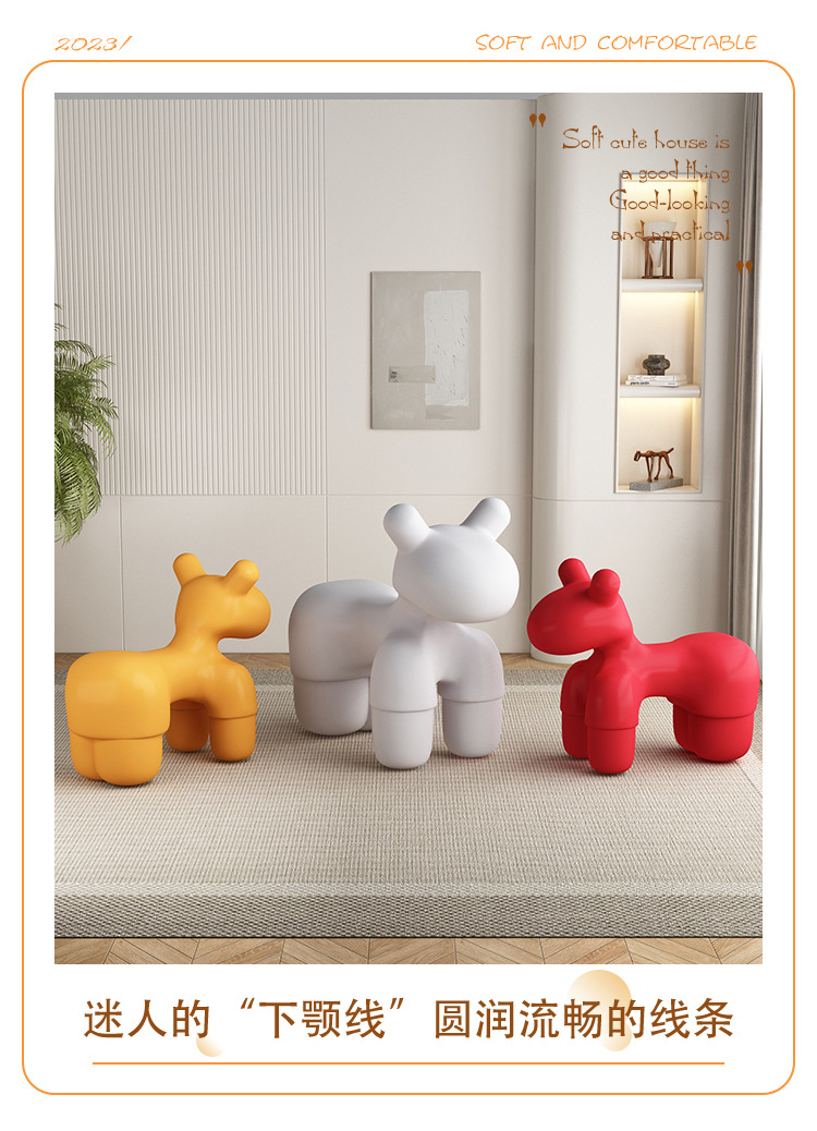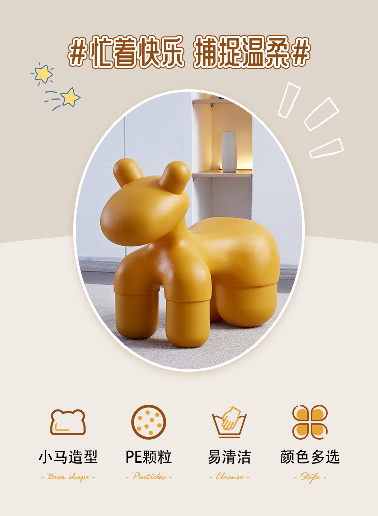 북유럽 인터넷 인기상품 작은 말 모양 의자, 동물 만화 스타일의 세련된 어린이용 창의적인 스툴, 아기용 심플 의자/좌석