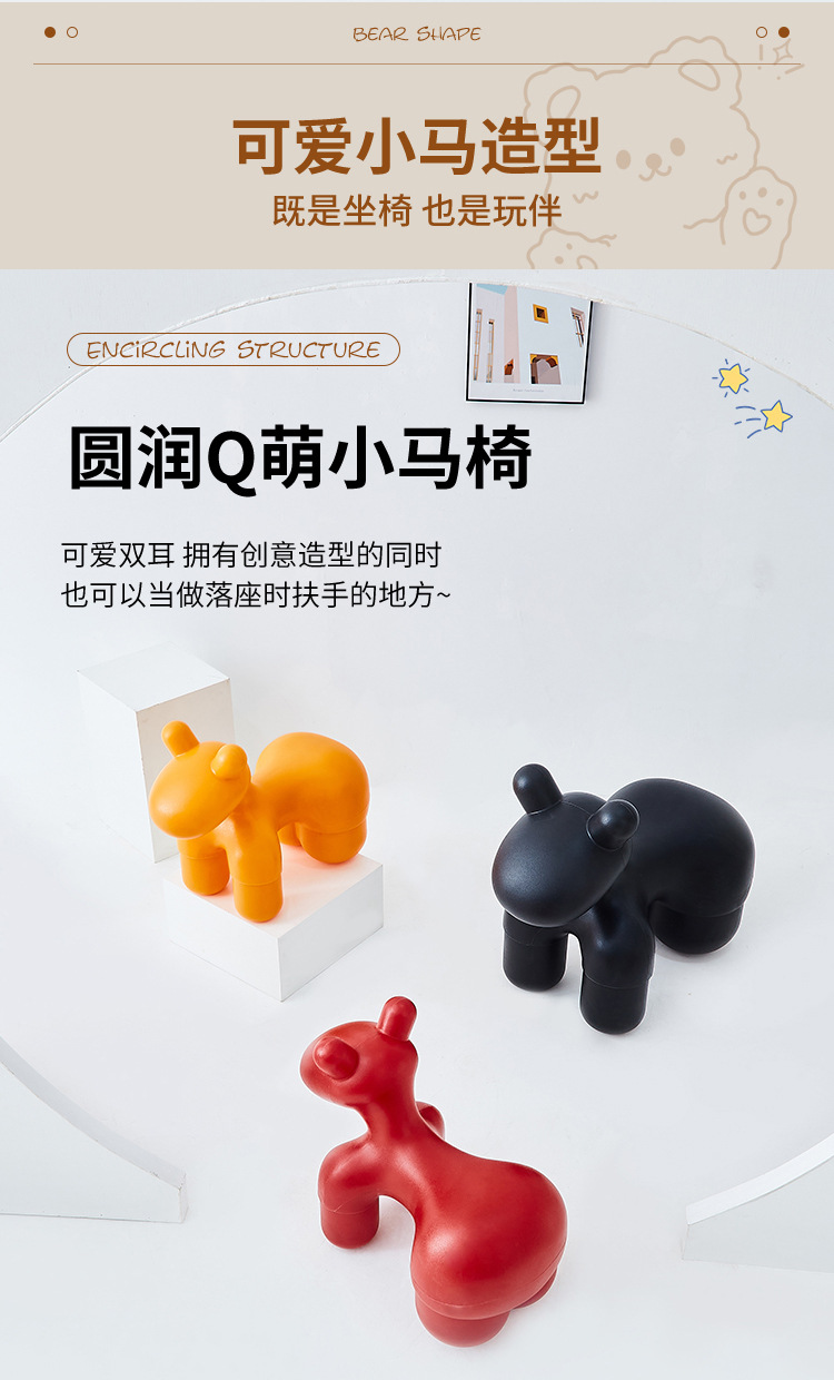 北欧网红小马椅子动物卡通造型时尚儿童创意凳子宝宝简约椅子座椅