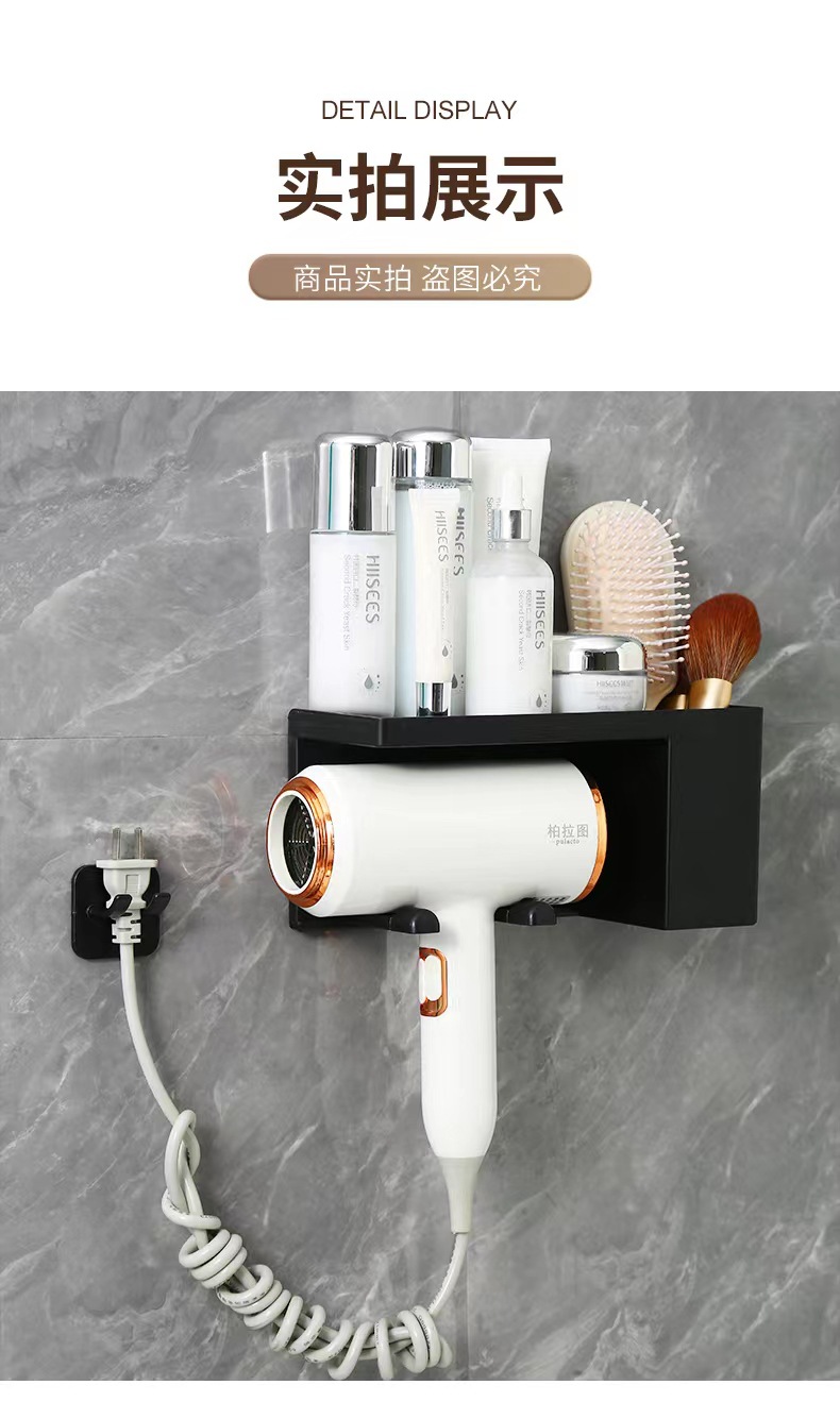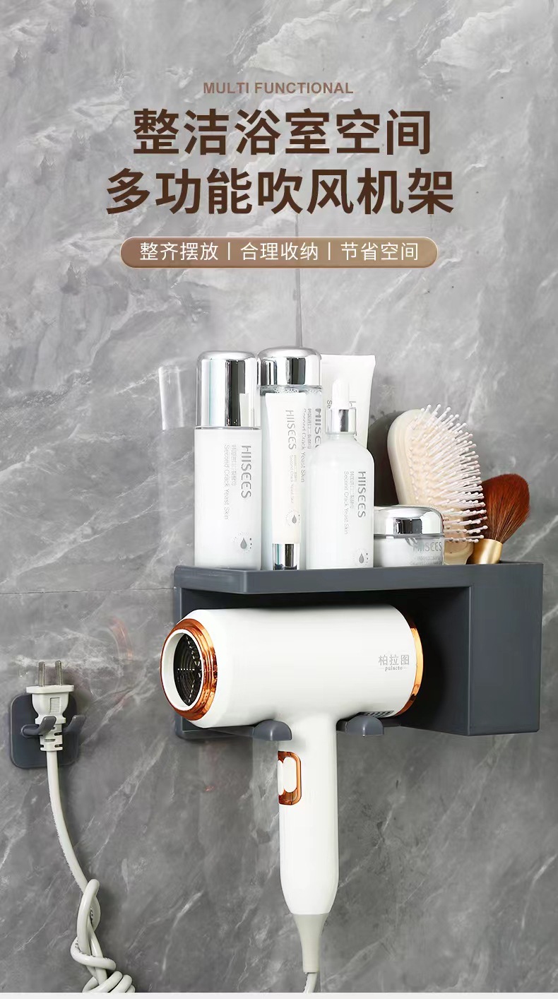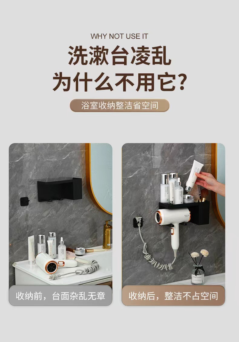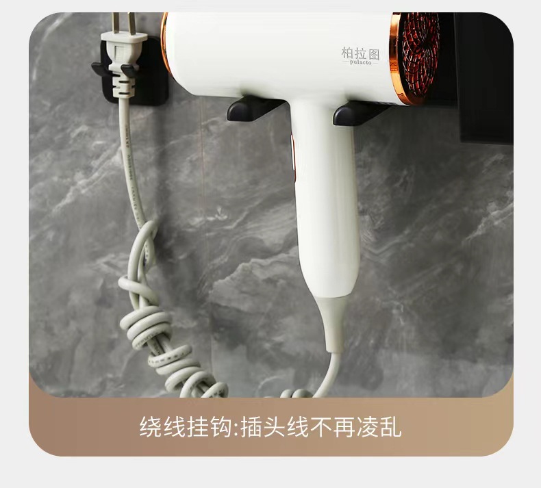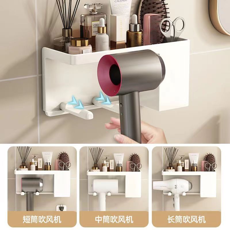 새로운 헤어드라이어 거치대, 플러그와 후크가 있는 이중 레이어, 무타공 욕실 헤어드라이어 보관대