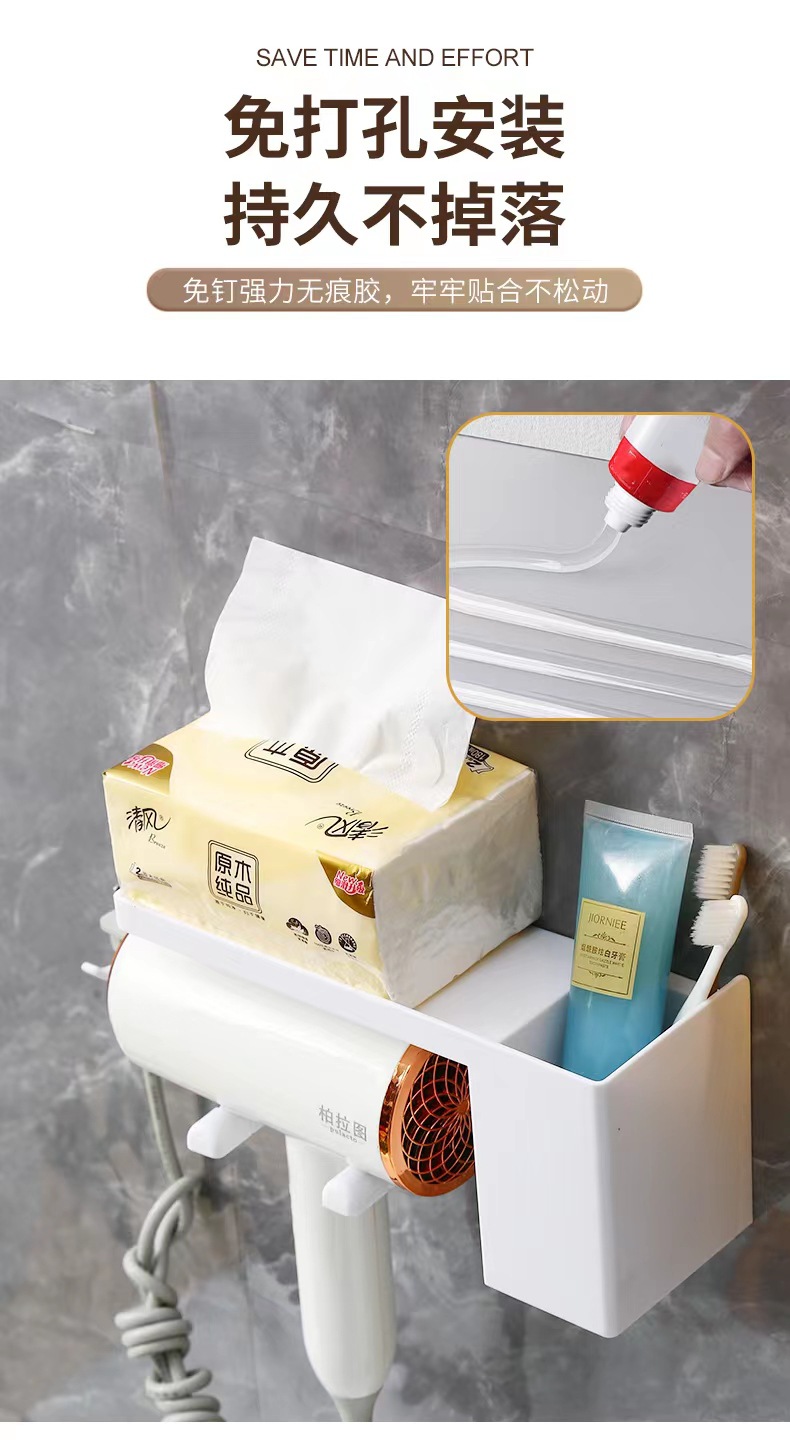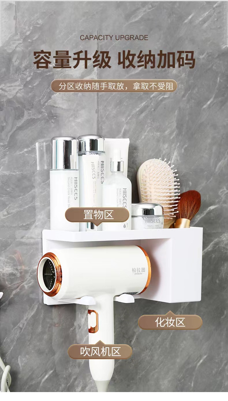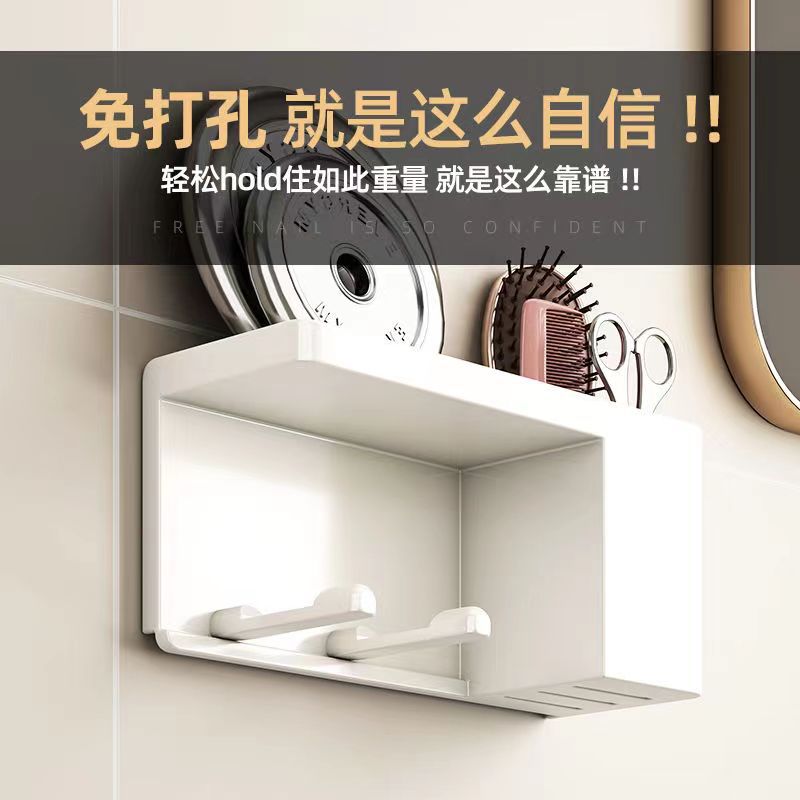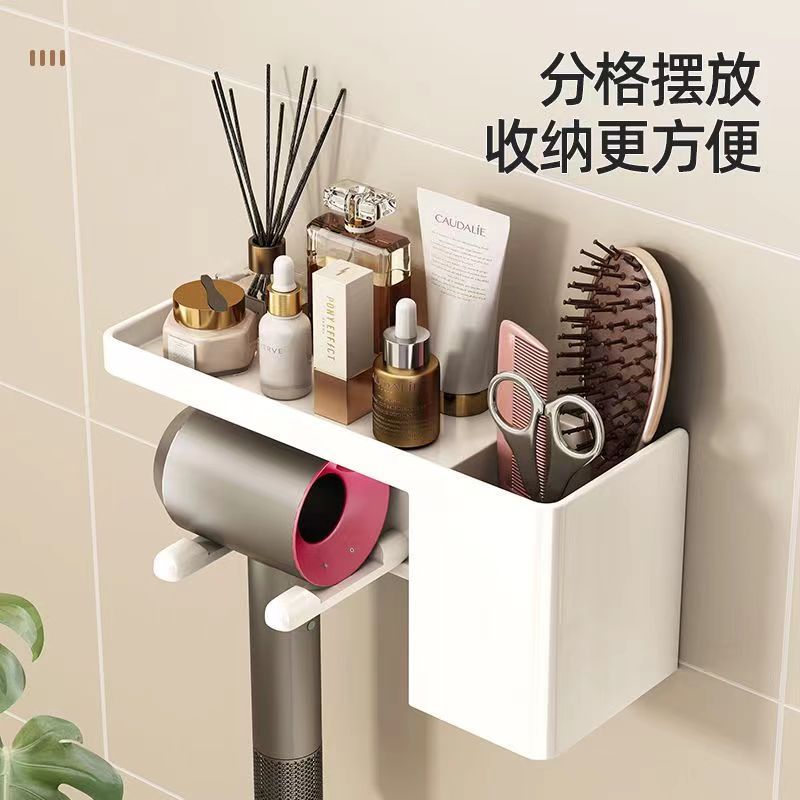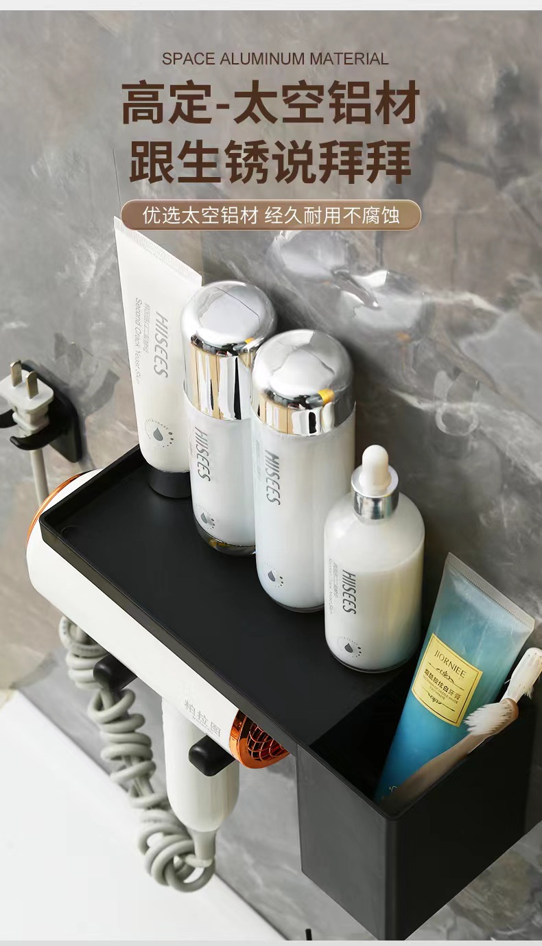새로운 헤어드라이어 거치대, 플러그와 후크가 있는 이중 레이어, 무타공 욕실 헤어드라이어 보관대