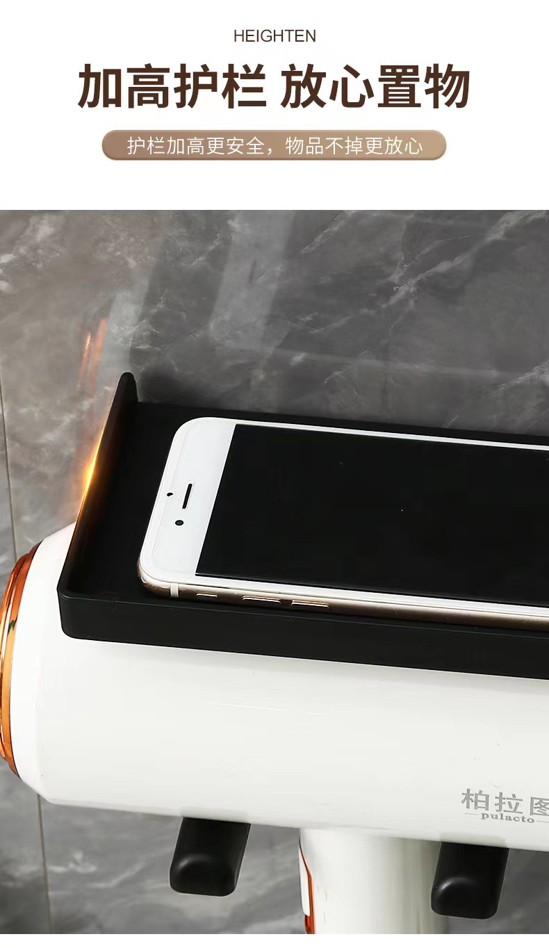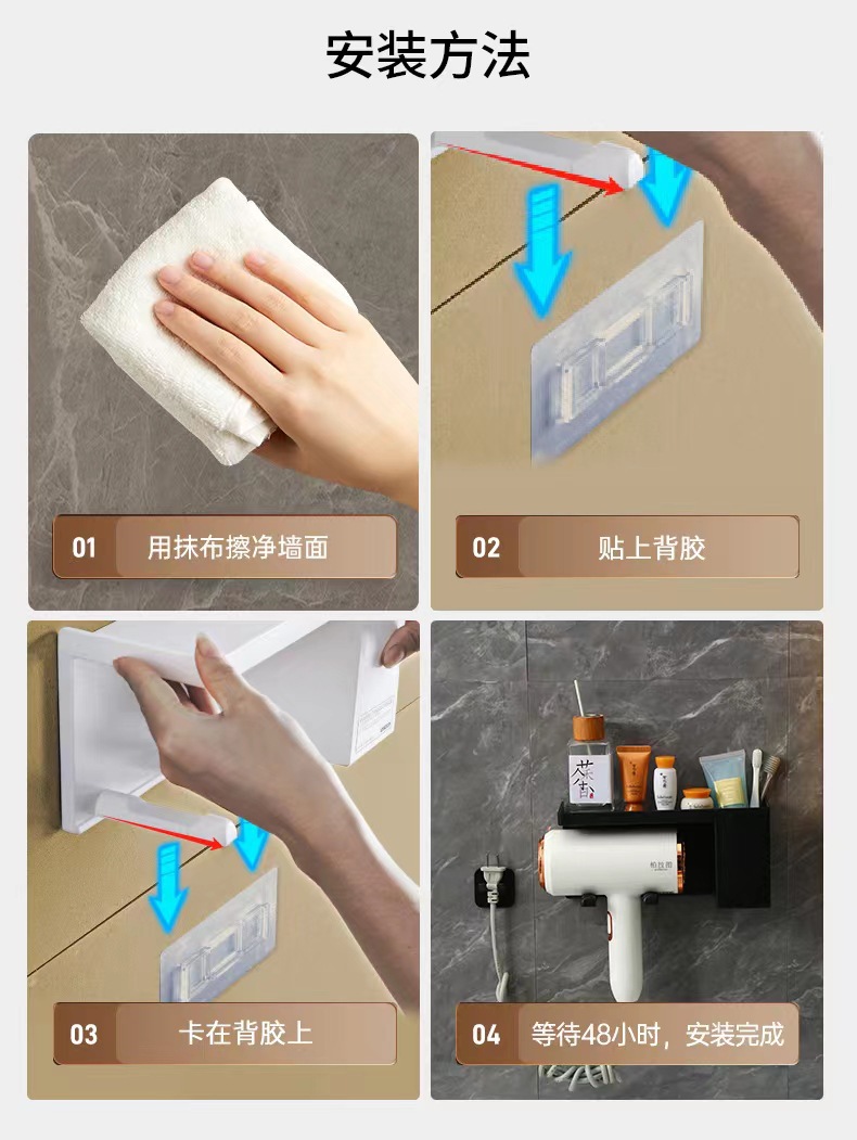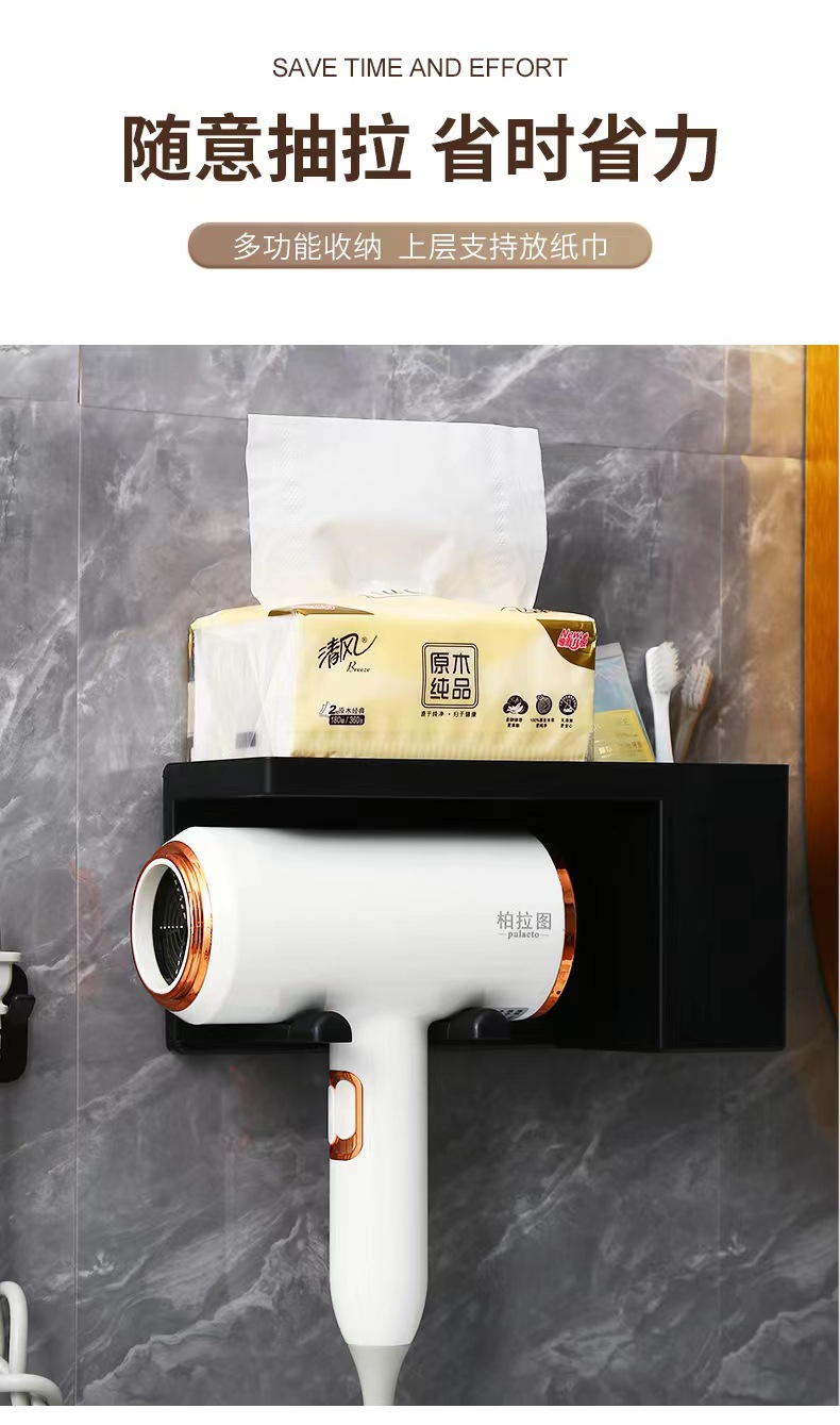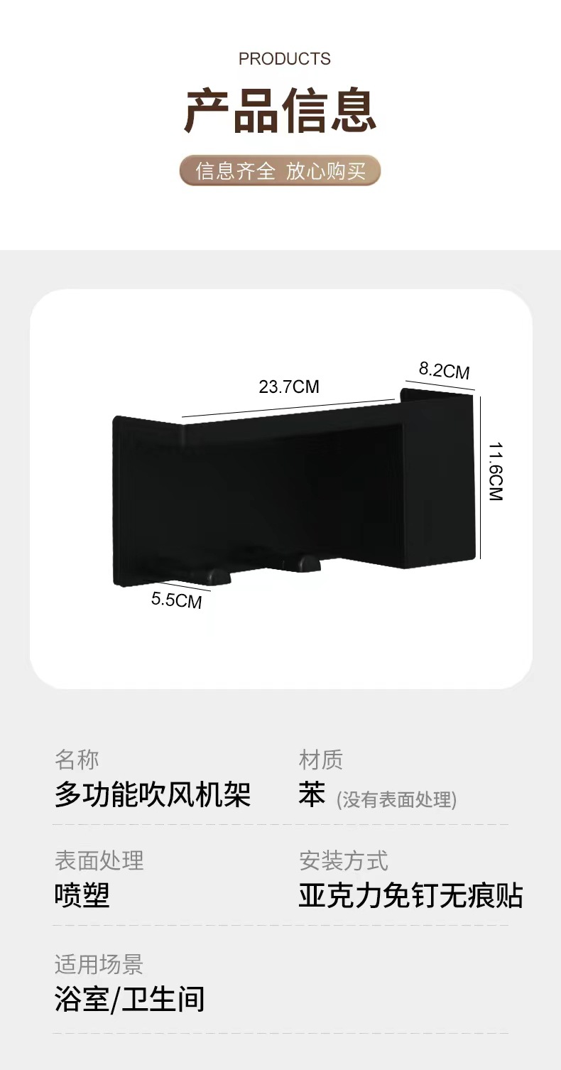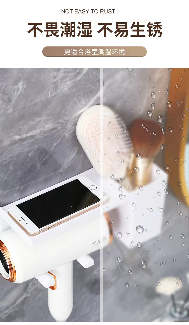 새로운 헤어드라이어 거치대, 플러그와 후크가 있는 이중 레이어, 무타공 욕실 헤어드라이어 보관대