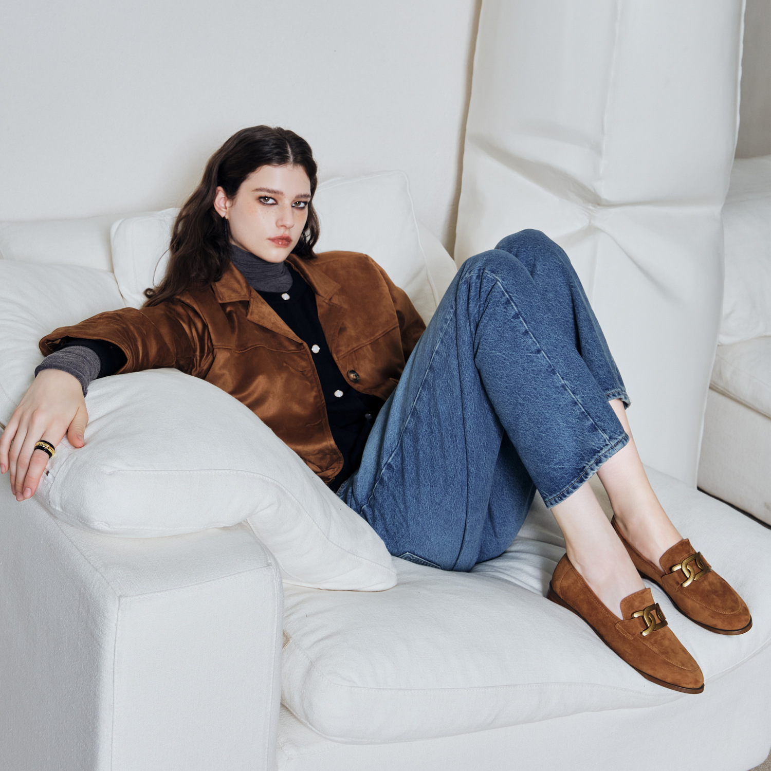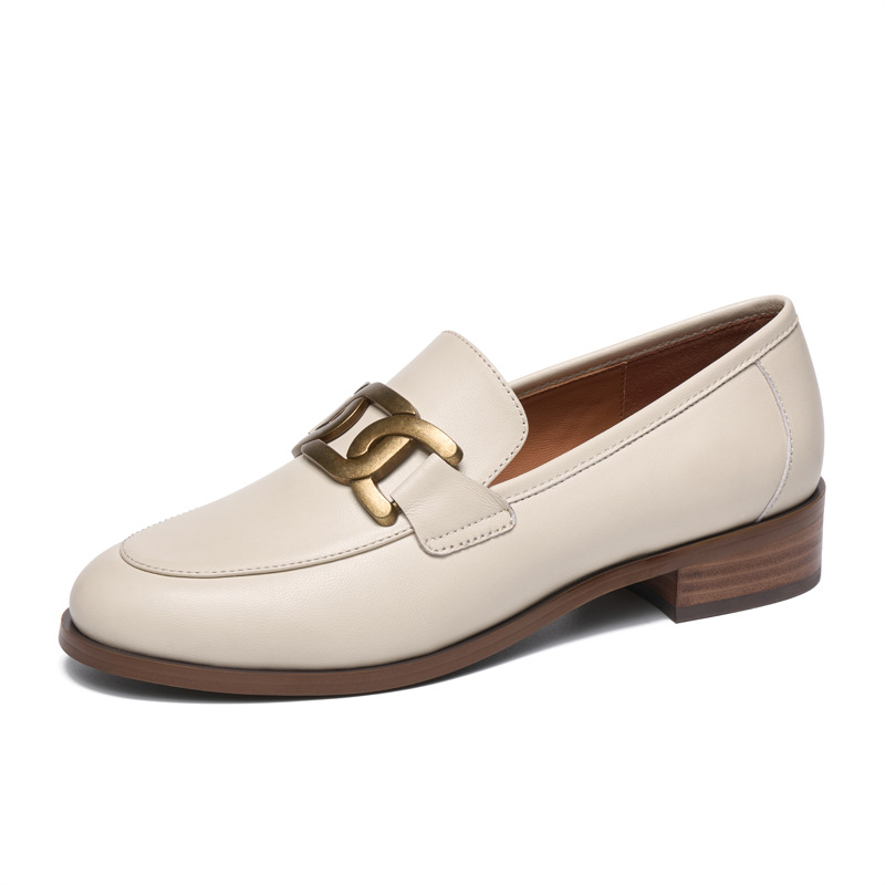 2024 봄 새로운 여성 트위스트 버클 로퍼 두꺼운 하이힐 가죽 통근 얕은 입 싱글 레이어 신발