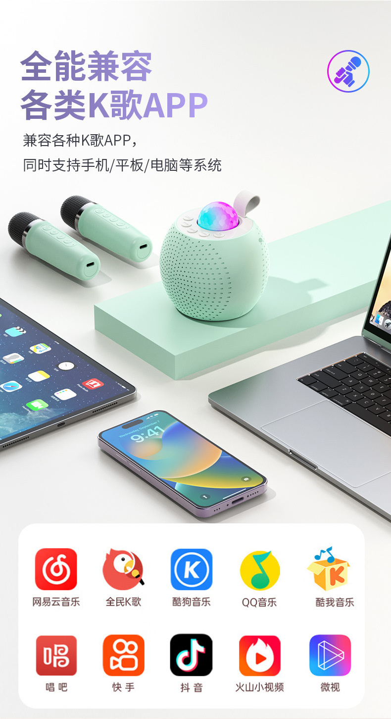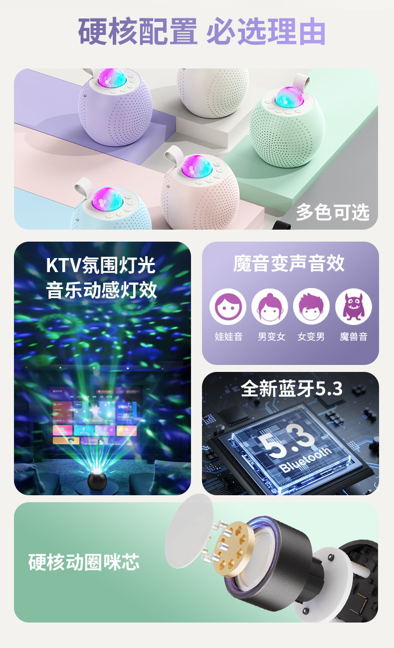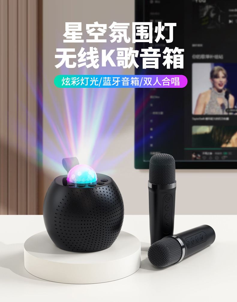 프로젝션 별이 빛나는 빛 블루투스 노래방 스피커 올인원 기계 마이크 분할 가족 KTV 오디오 세트