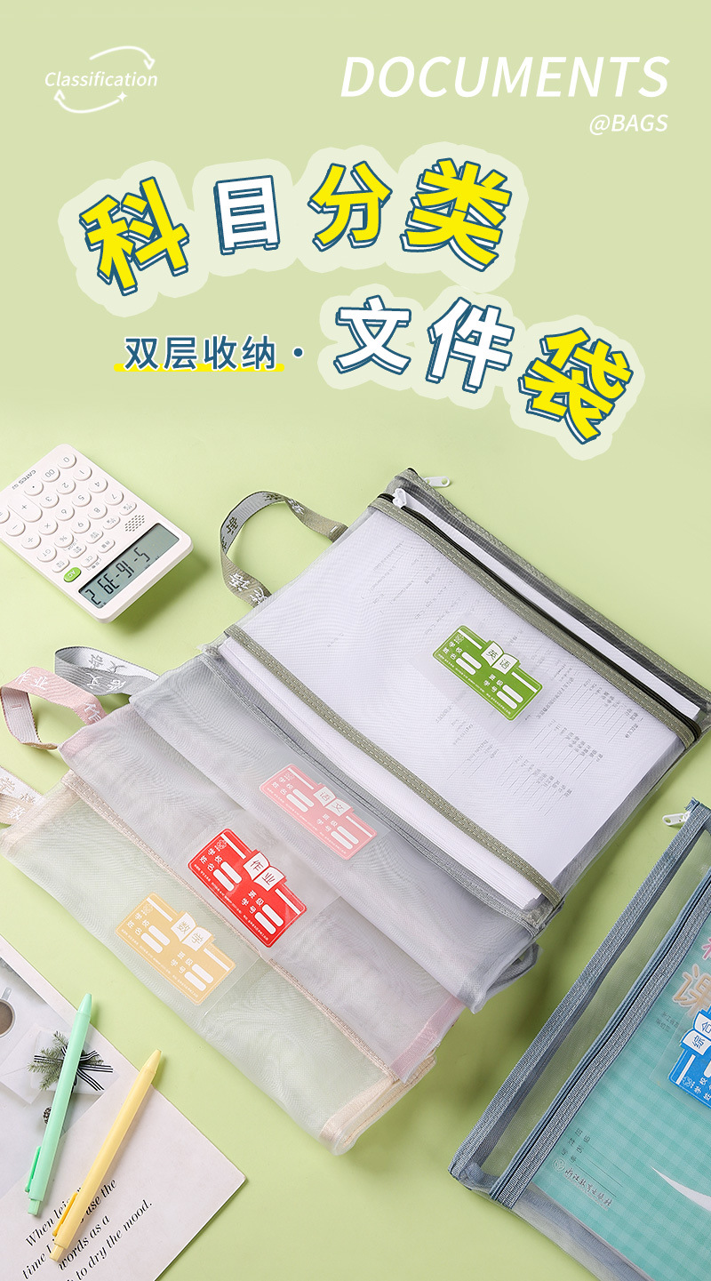 학생 이중층 주제 파일 가방 대용량 이중층 자료 책 두꺼운 교과서 하위 주제 숙제 폴더