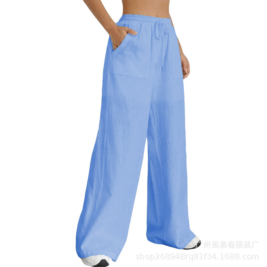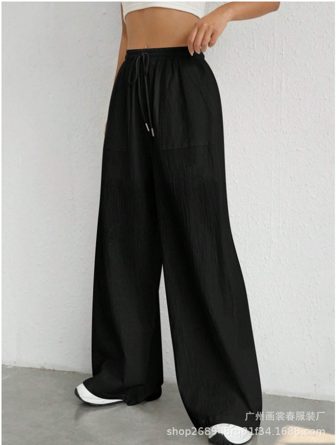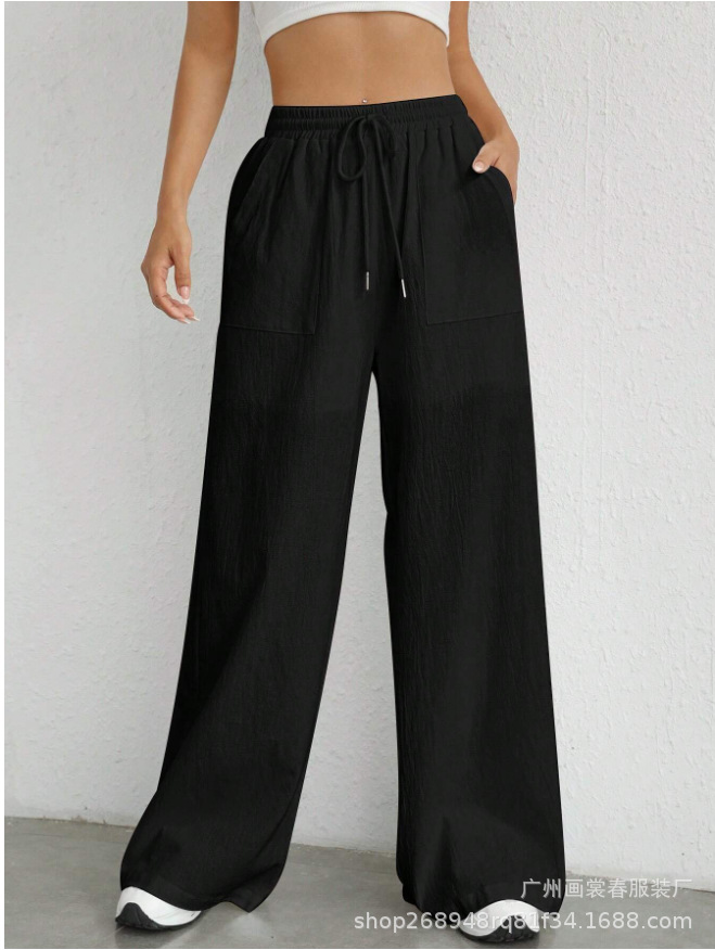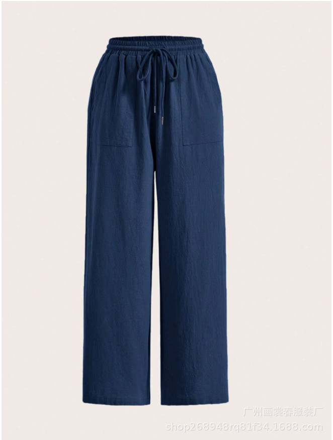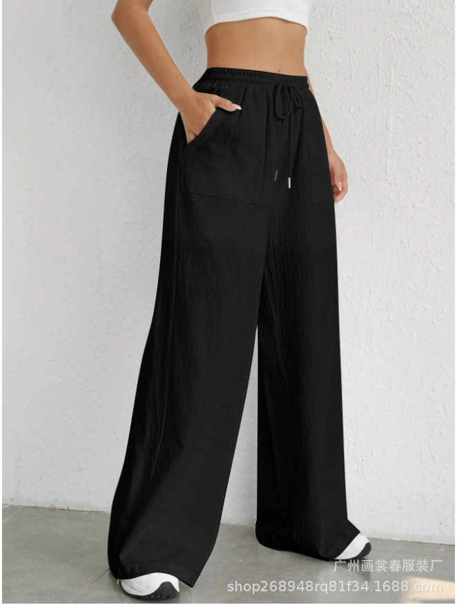 아마존 해외 무역 유럽 및 미국 여성 캐주얼 솔리드 컬러 드로스트링 스트레이트 마이크로 플레어 포켓 캐주얼 팬츠 캐주얼 패션